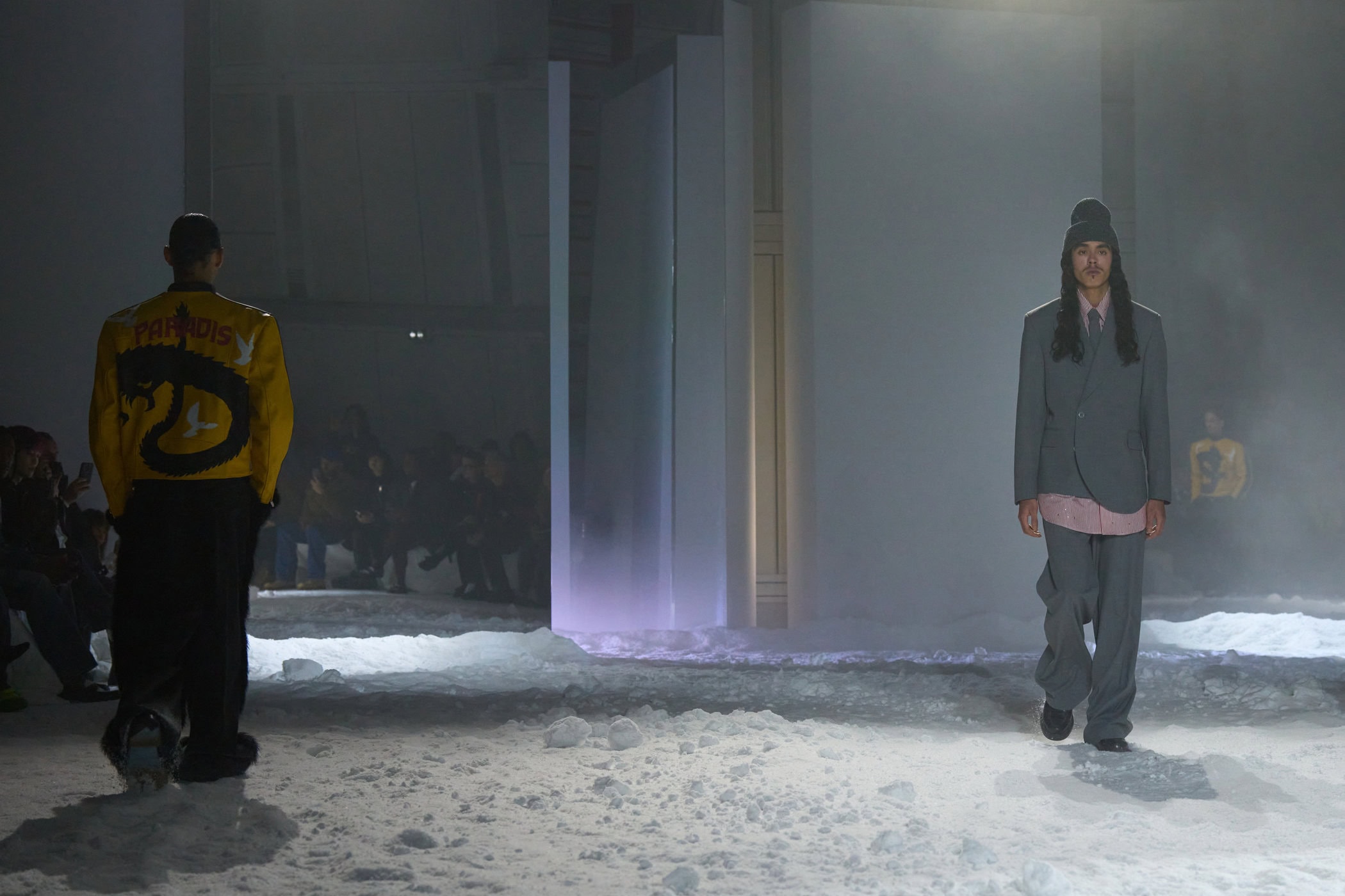 Discover the immersive atmosphere and striking staging of 3.Paradis‘s Fall 2025 mens fashion show at Paris Men’s Fashion Week, creating an unforgettable mood this Jan.