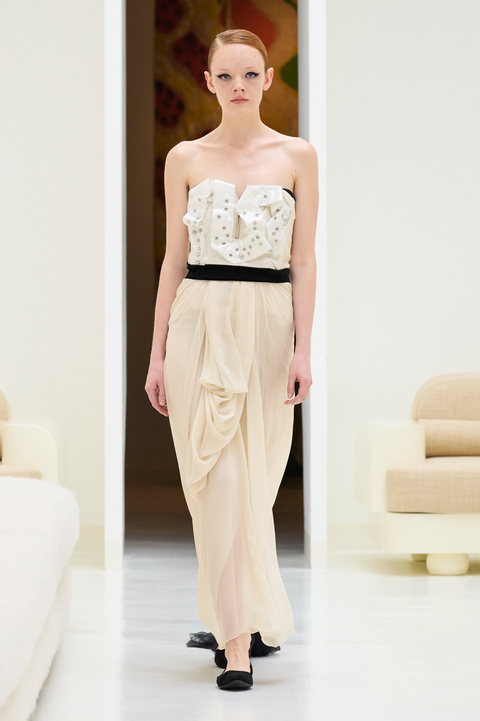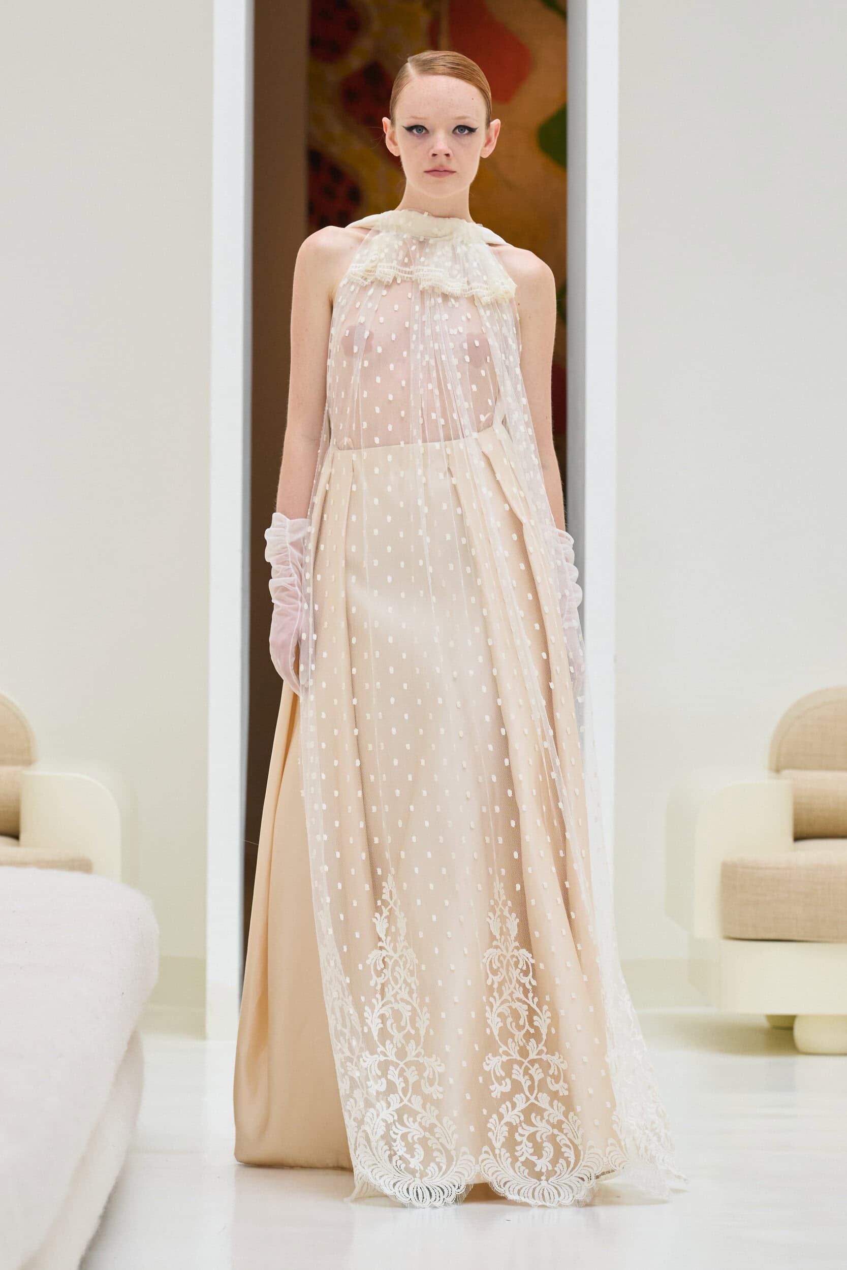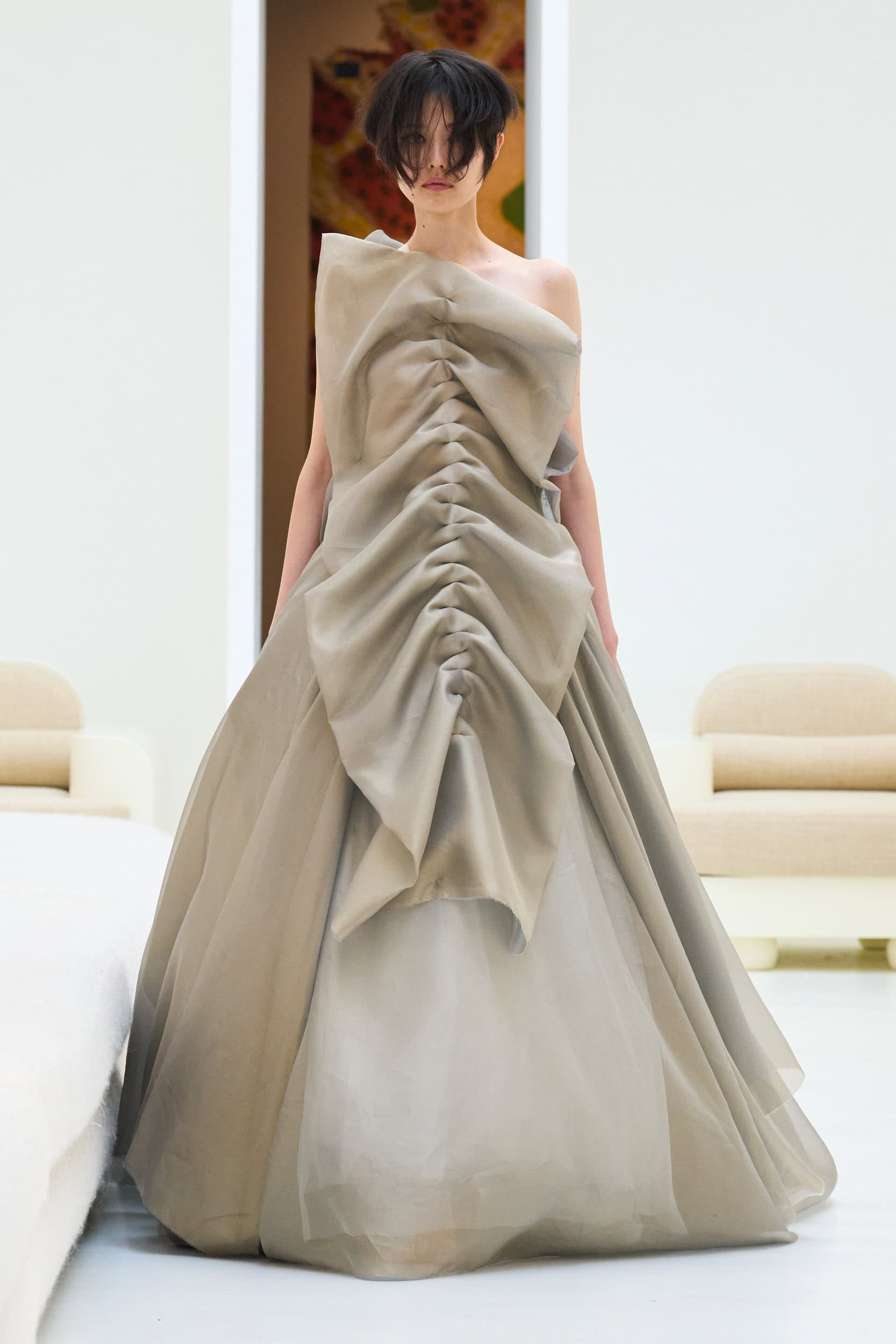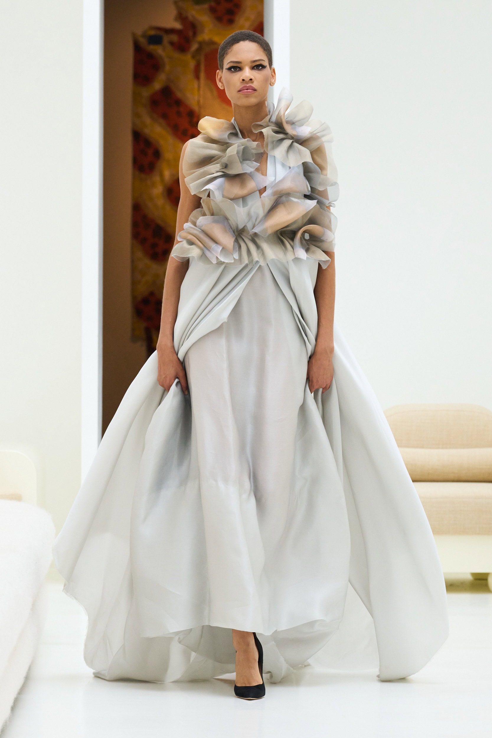 Staying true to house codes, Crociani featured undone gowns with raw hems, visible stitching, and upcycled jewelry, incorporating more layers for added volume this season.