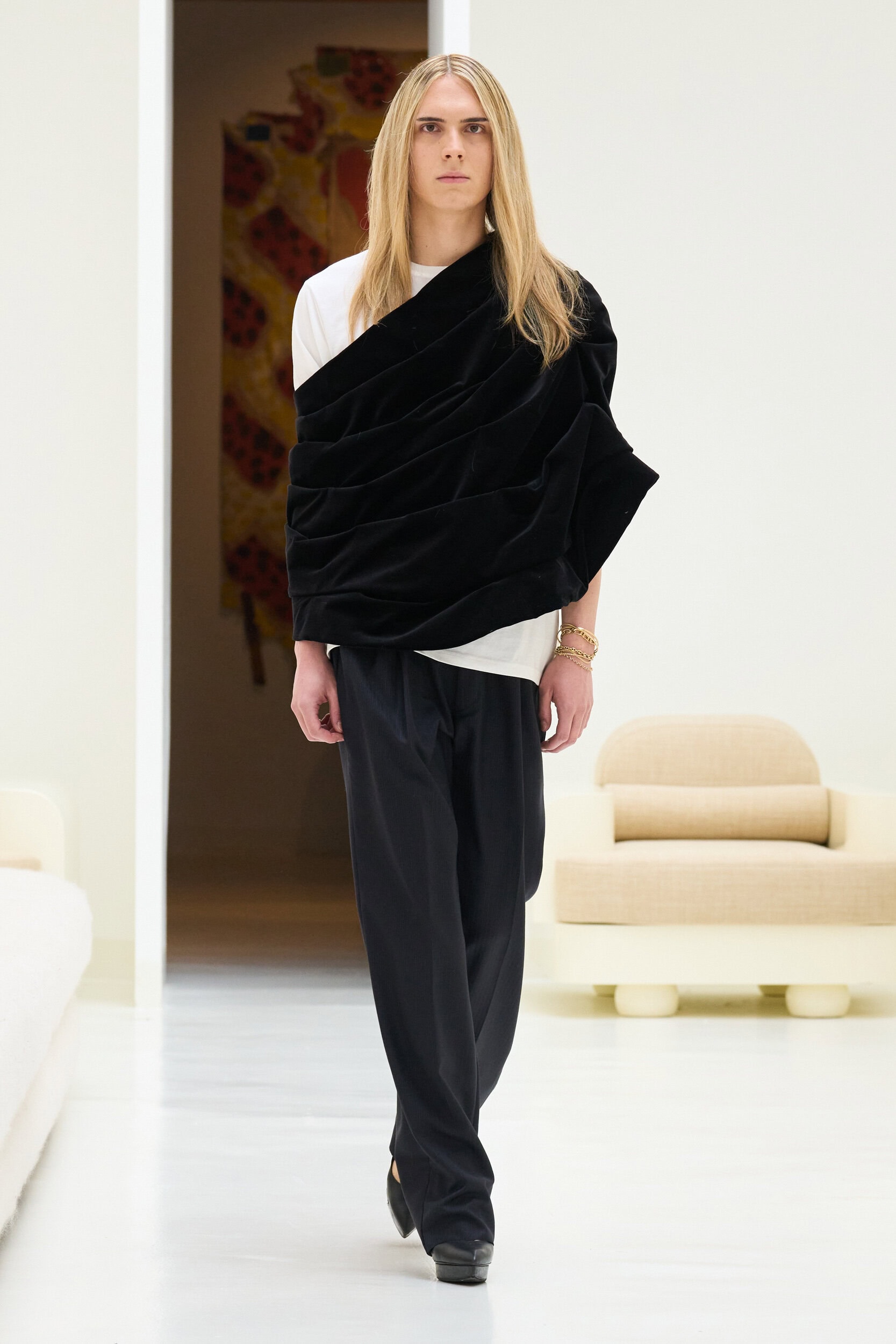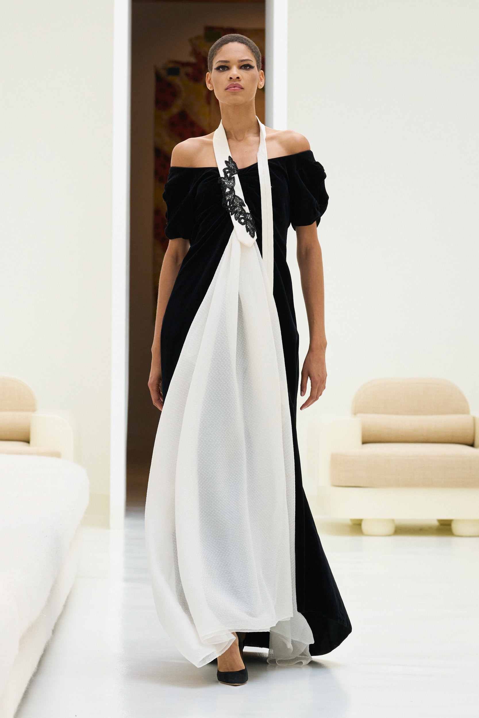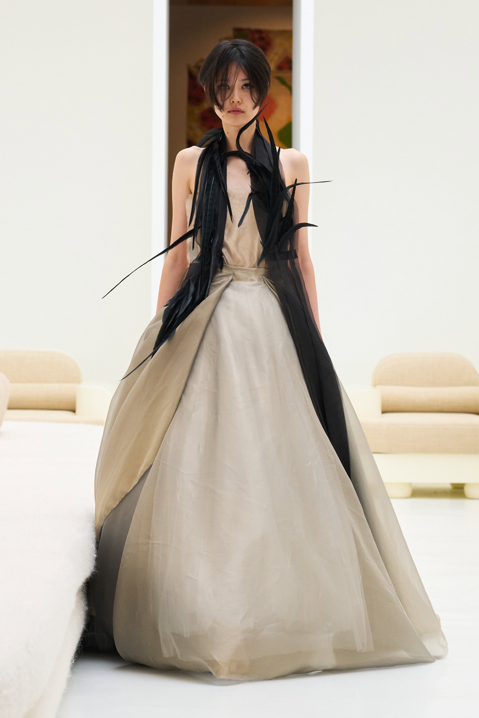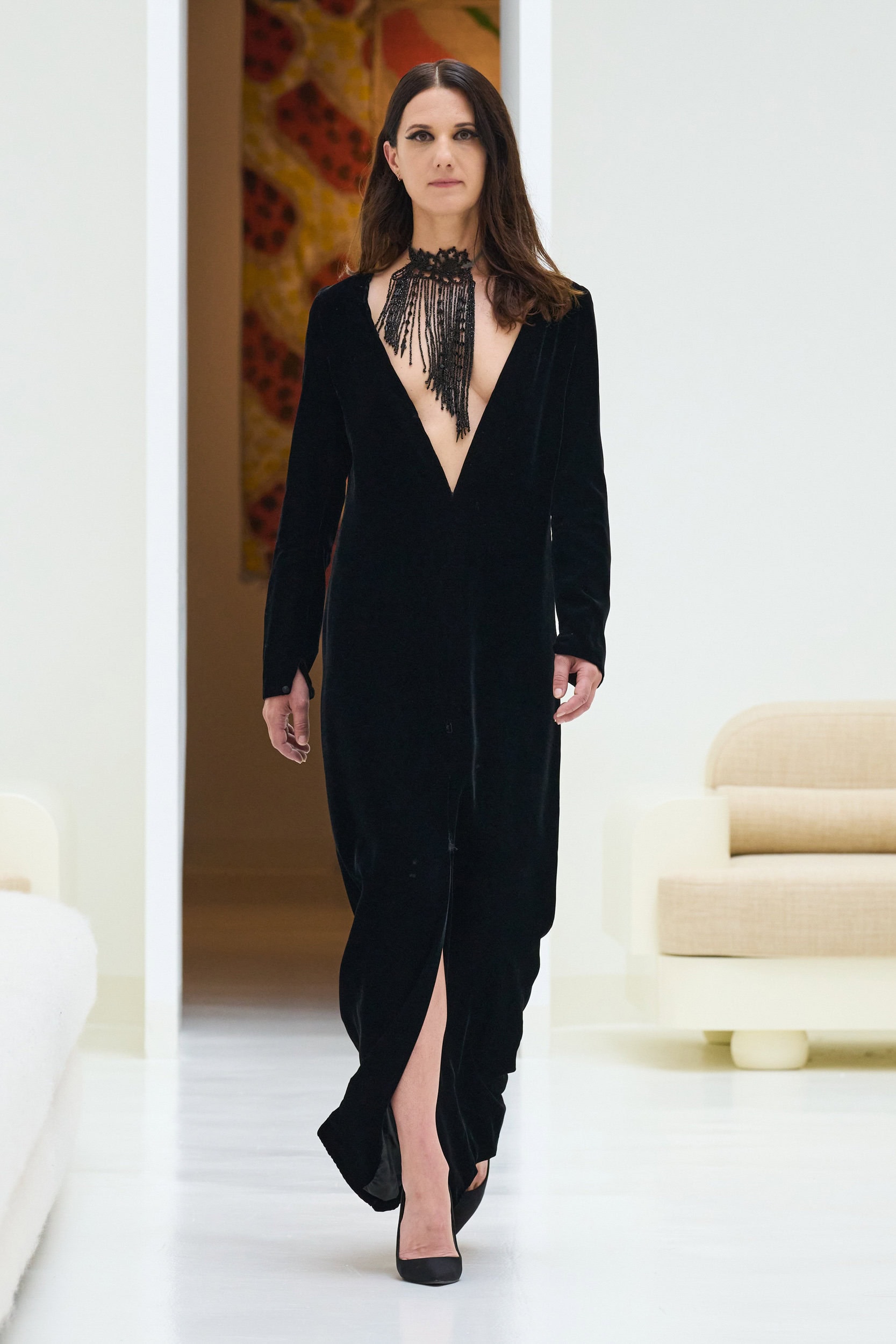 Staying true to house codes, Crociani featured undone gowns with raw hems, visible stitching, and upcycled jewelry, incorporating more layers for added volume this season.