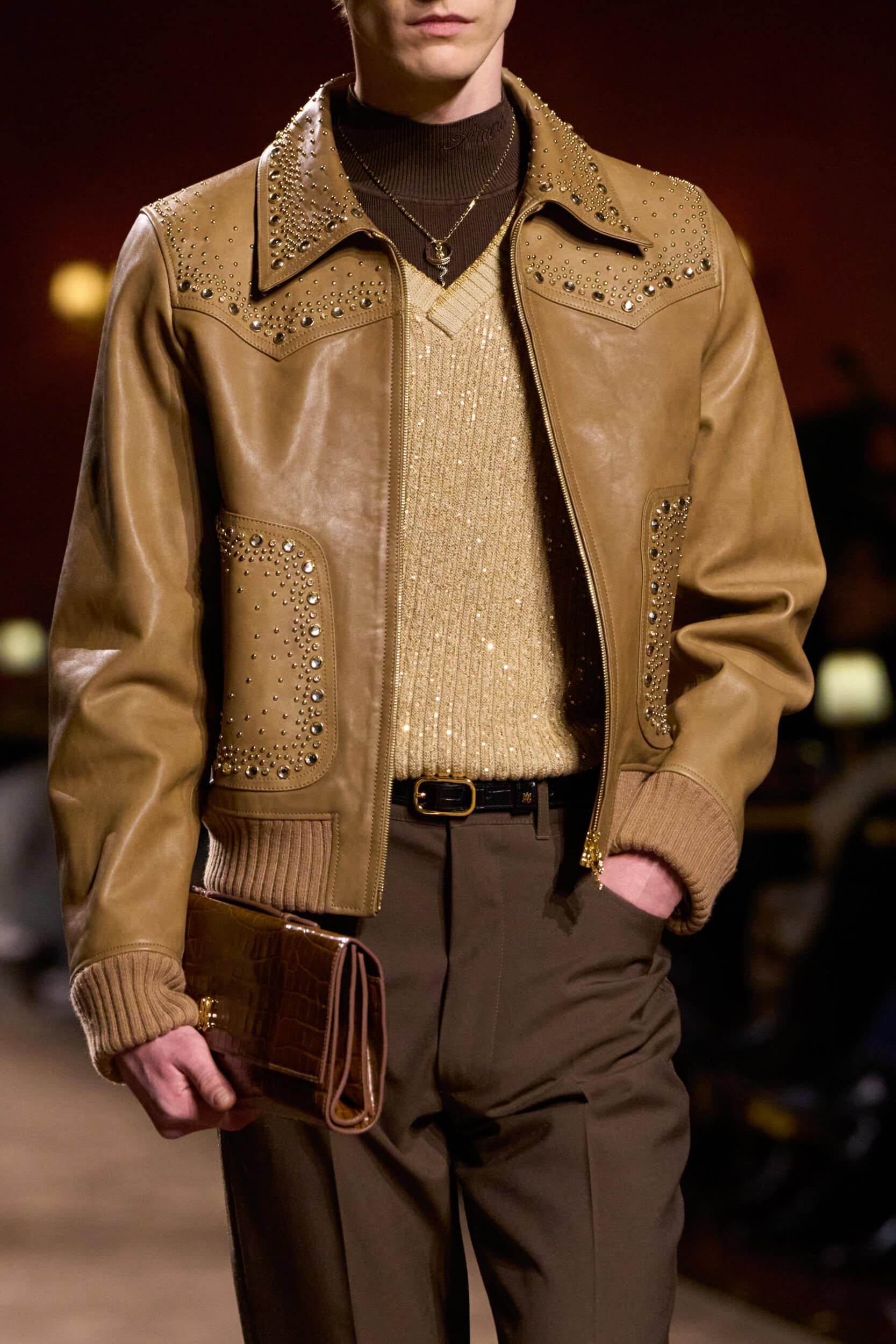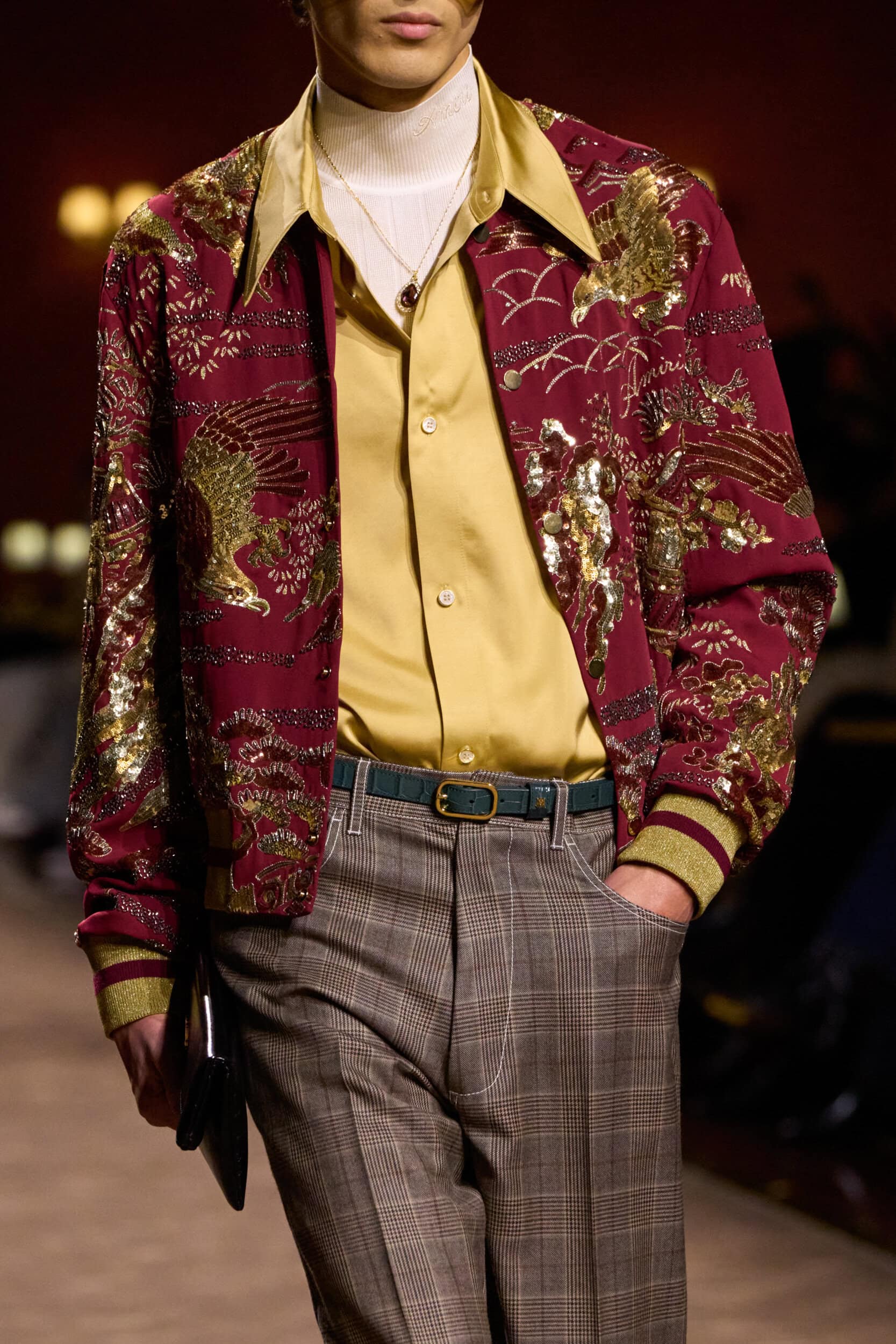 Get an exclusive look at Amiri‘s innovative Fall 2025 mens fashion show accessories featuring footwear, handbags, eyewear, and more from the runways of Paris Men’s Fashion Week, held in Jan 2025.