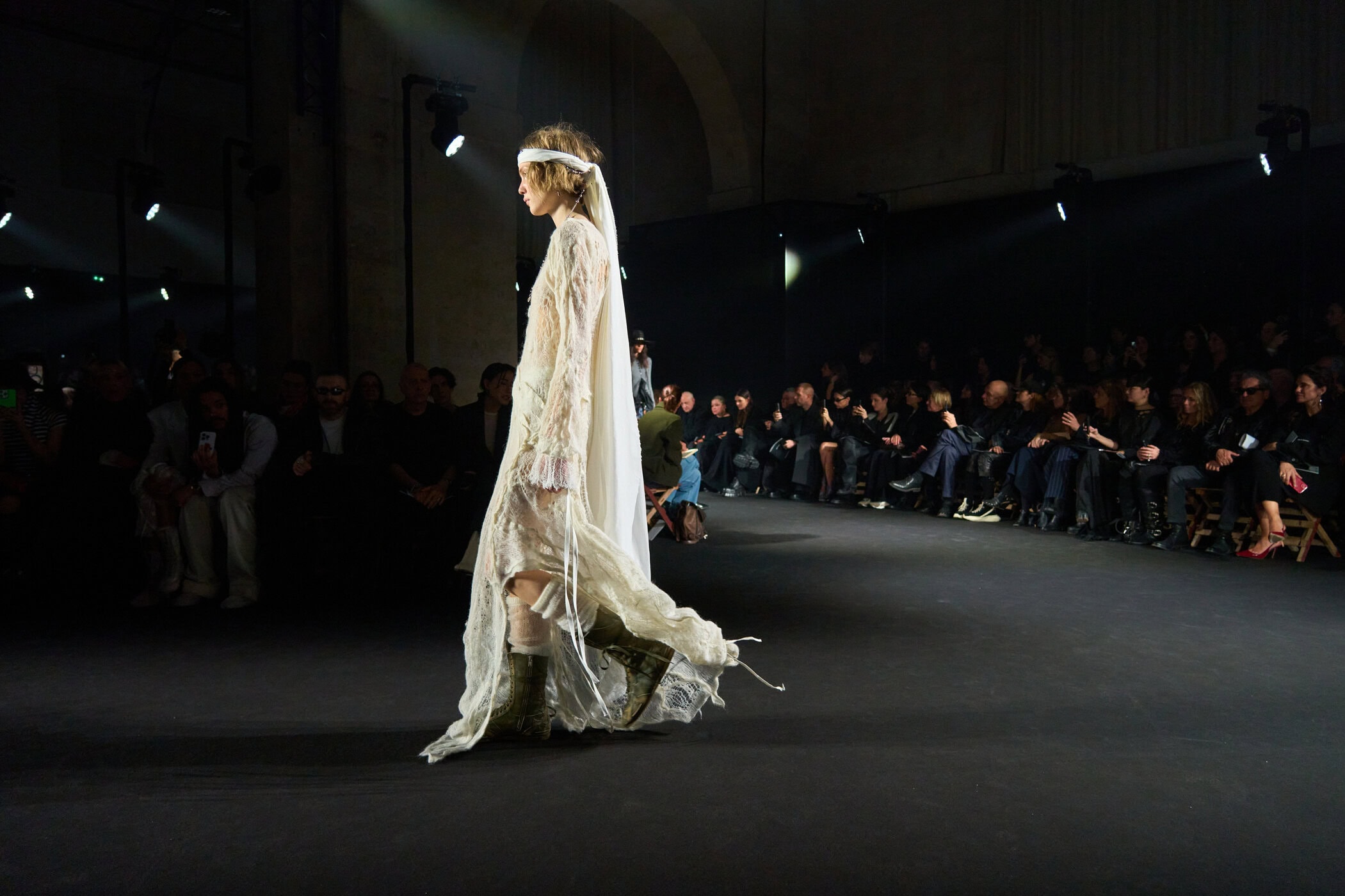Discover the immersive atmosphere and staging of Ann Demeulemeester‘s Fall 2025 fashion show at Paris Fashion Week.