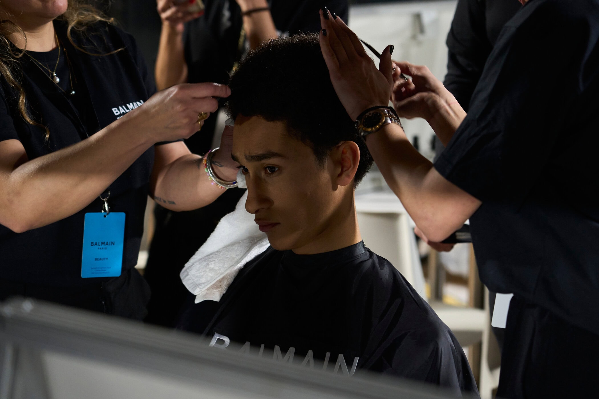 Balmain Fall 2024 Men’s Fashion Show Backstage from Paris Men’s Fashion Week (Jan 2024).