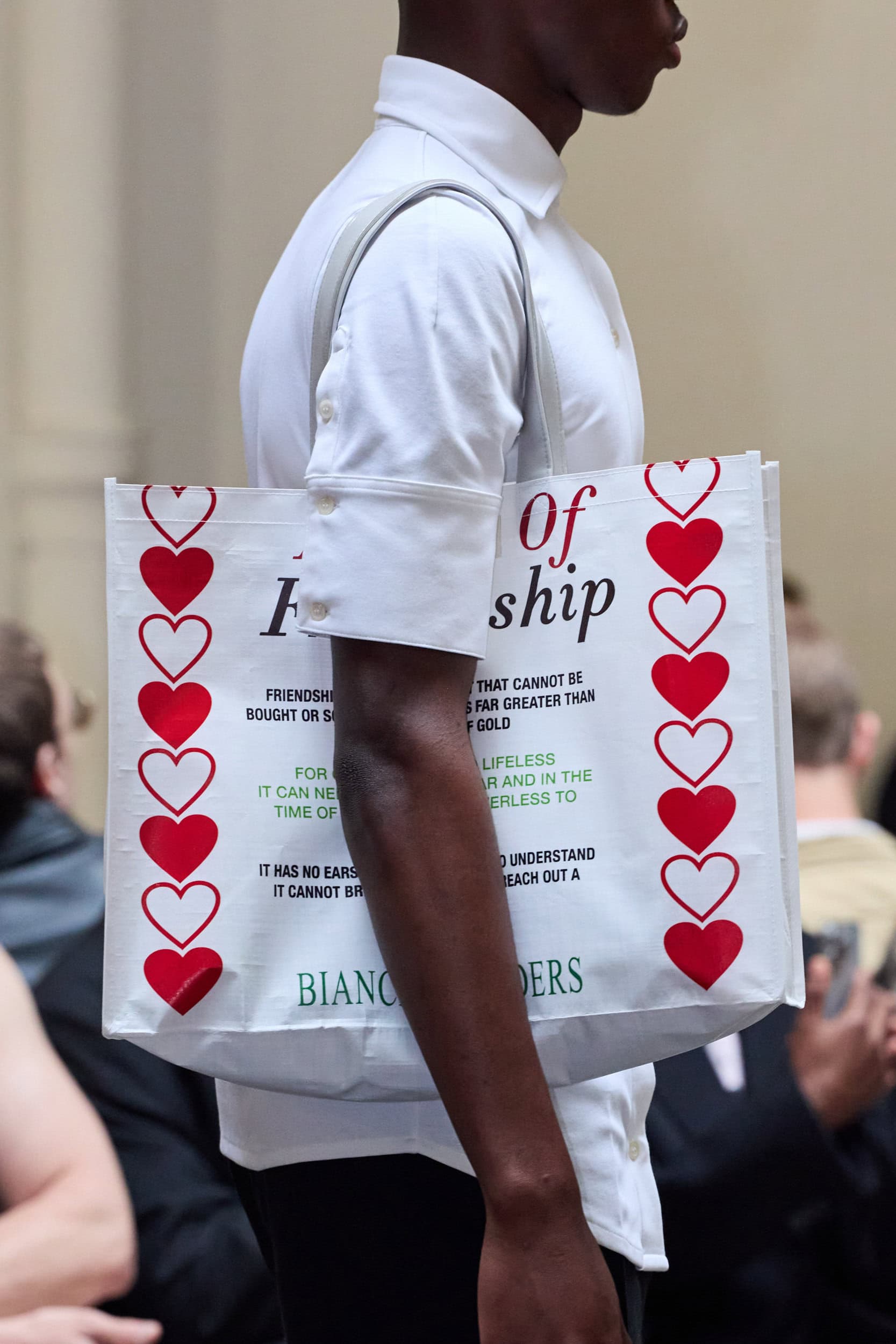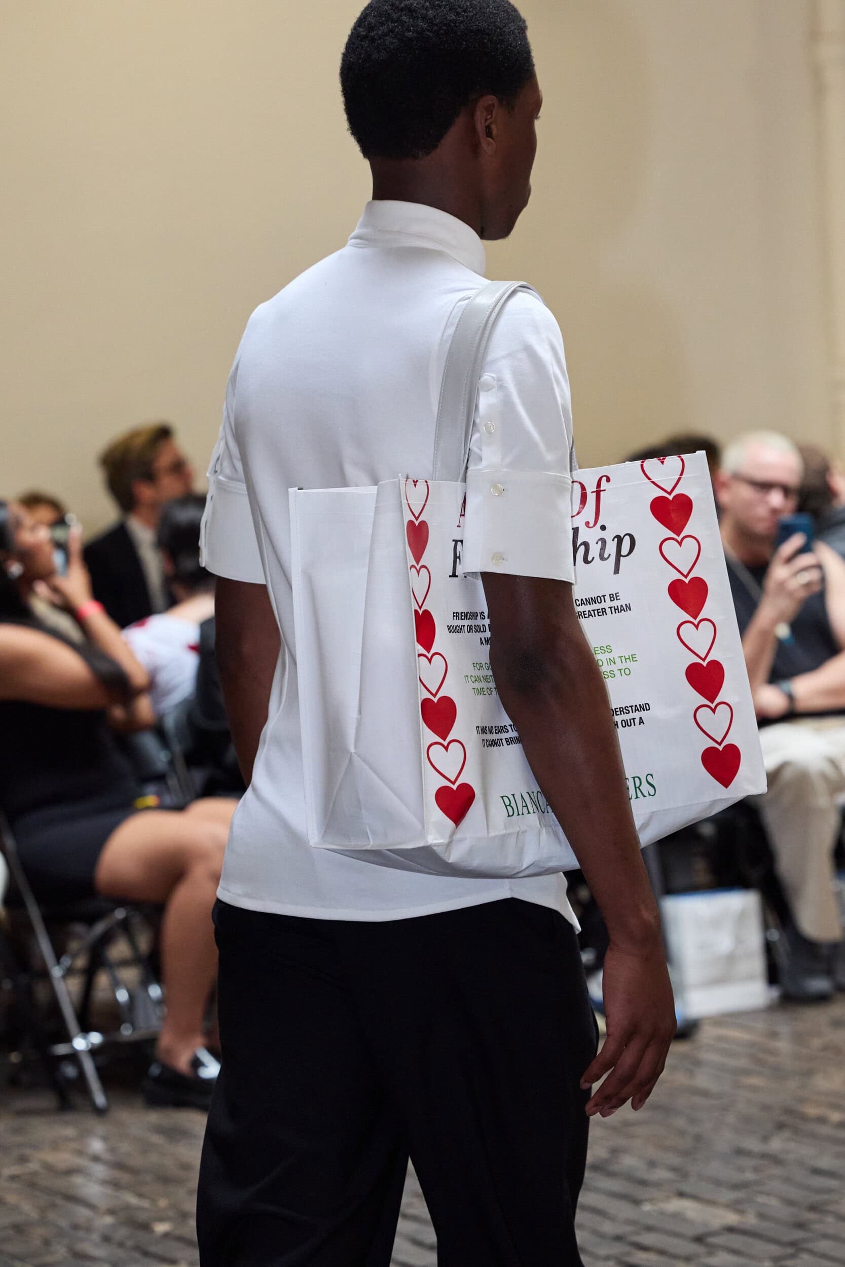 Get an exclusive look at Bianca Saunders‘s innovative Spring 2025 men’s fashion show accessories featuring footwear, handbags, eyewear, and more from the runways of Paris Men’s Fashion Week, held in June 2024.