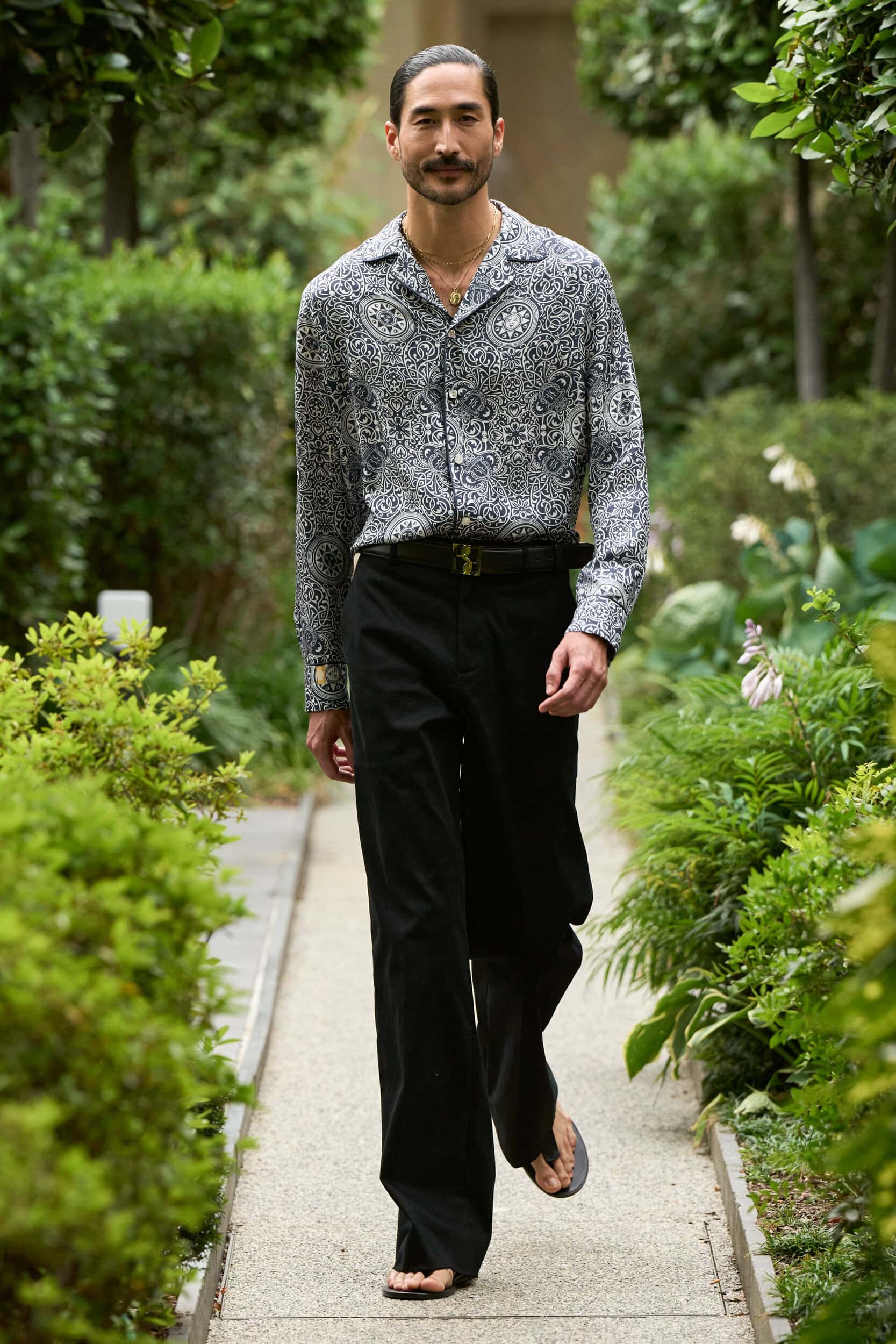To be sure, talking backstage about his spring 2025 effort for the brand, he sounded like a different man than the maximalist he usually is. “We don’t want to be fashion. Fashion is not our passion here,” he stated. “It’s all about the materials, the qualities.”