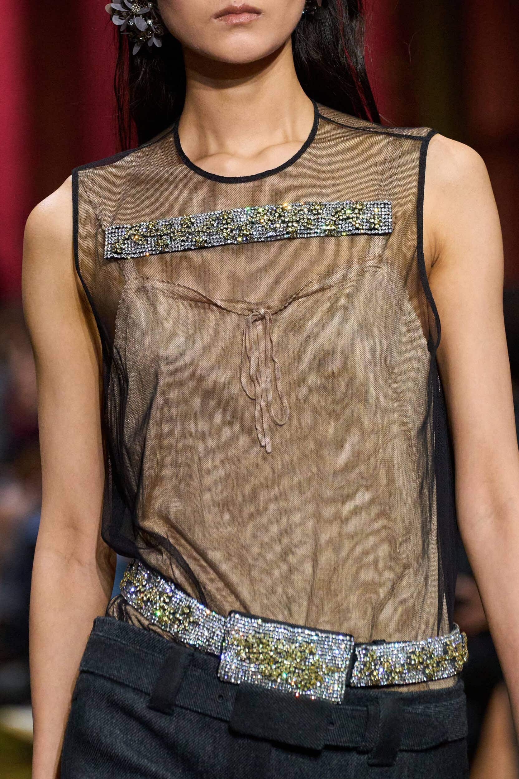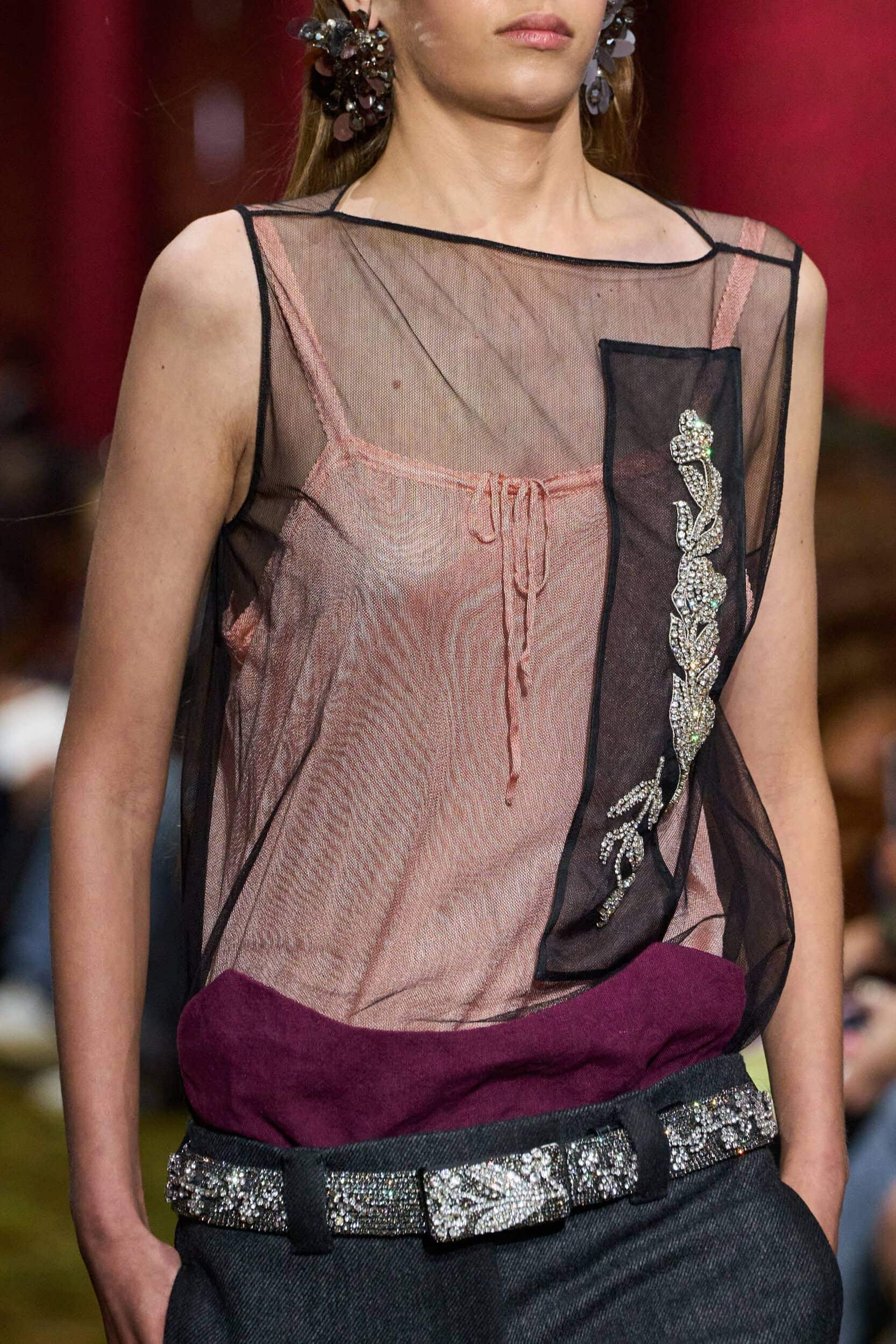 Elsewhere, the language appeared in fragments. Louis Vuitton and Chloé leaned into softer, storybook cues, while Miu Miu introduced floral-embellished belts that brought the motif into a sharper, more styled context. At Diesel, the idea surfaced in subtle gestures, while Conner Ives translated it through embroidered footwear—birds and botanical detailing that felt intimate and hand-touched.