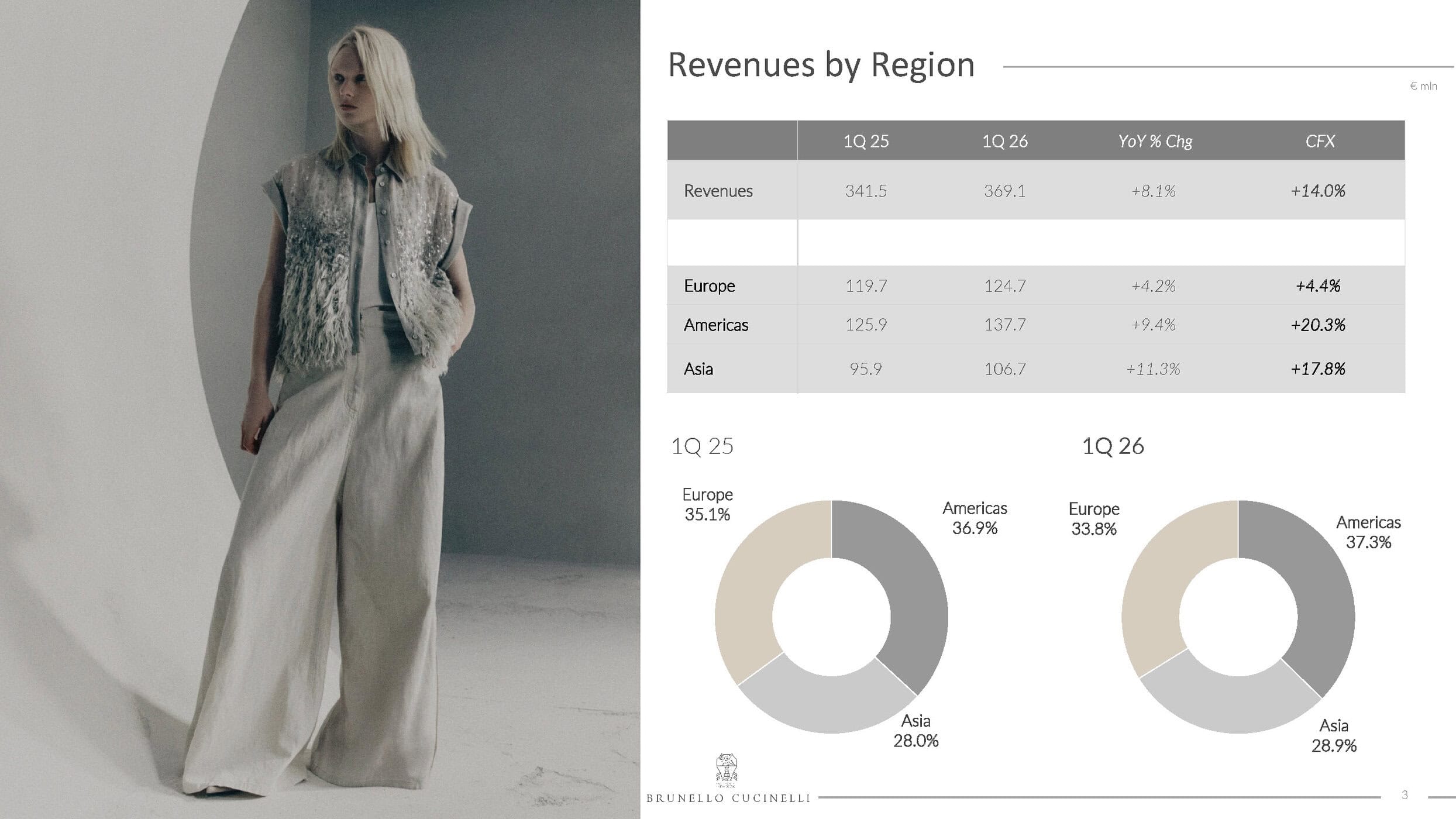 Brunello Cucinelli reported a strong start to 2026, with first-quarter revenue rising 8.1 percent to €369.1 million, supported by robust retail growth across the Americas and Asia. At constant currency, sales increased 14 percent, exceeding internal expectations.