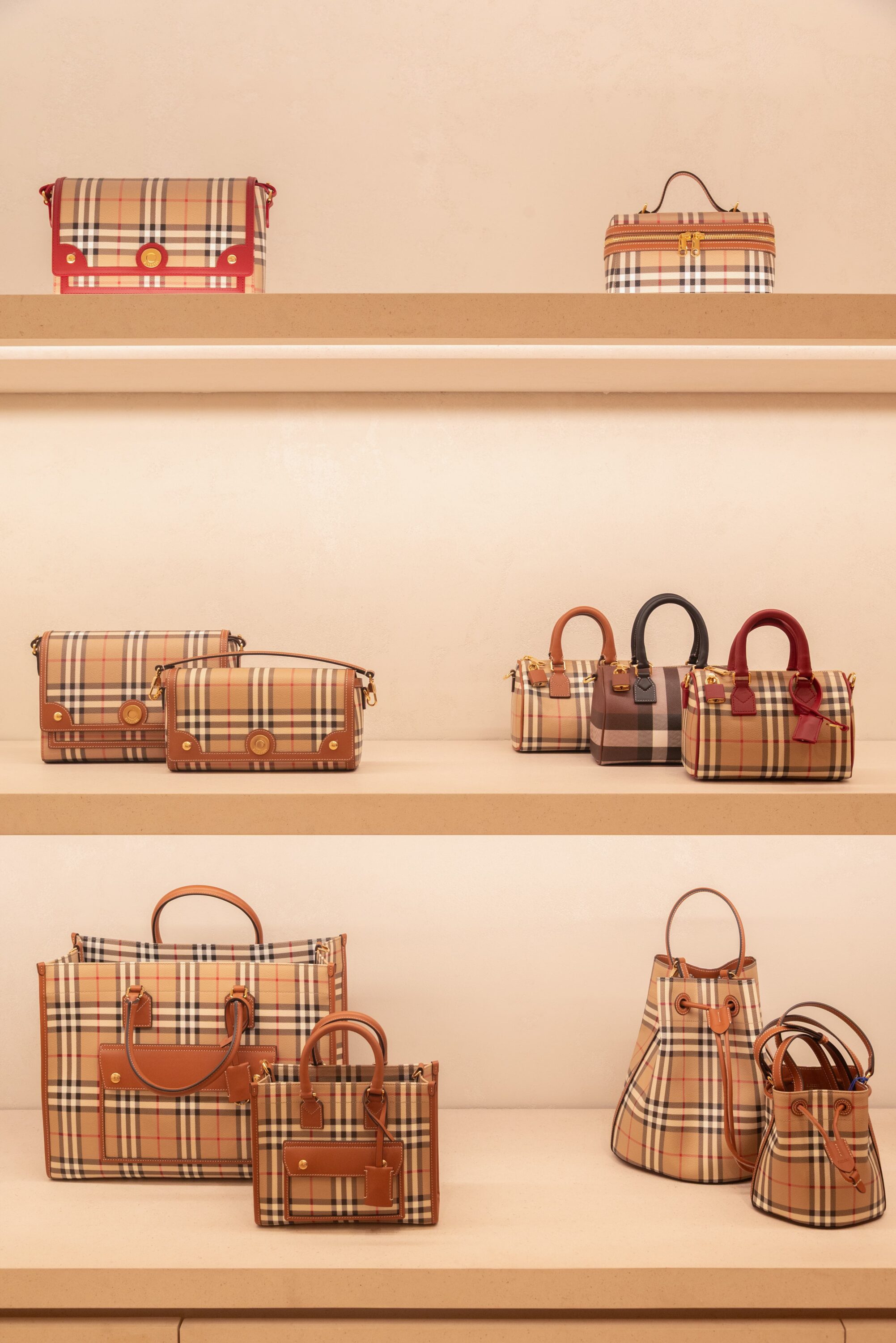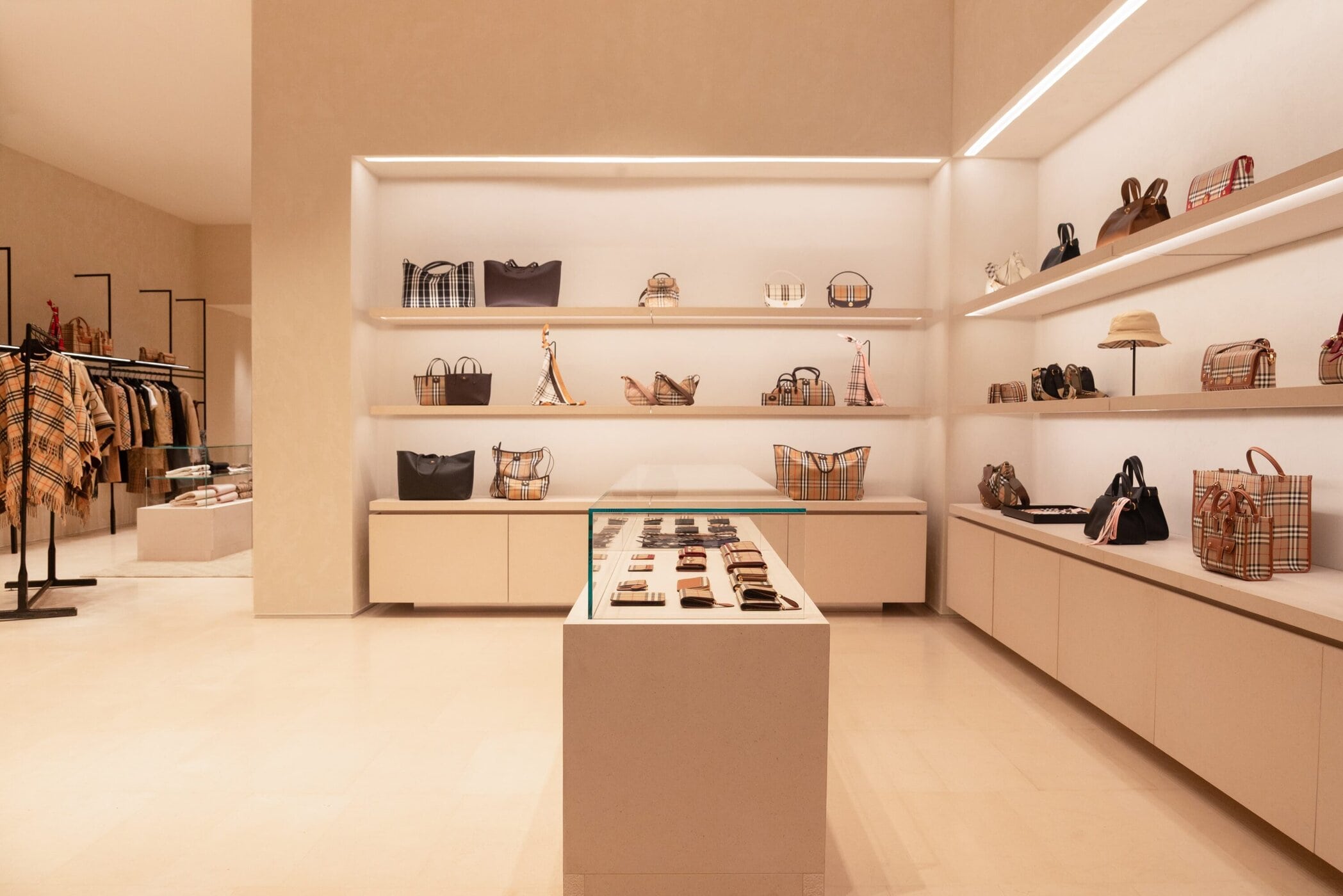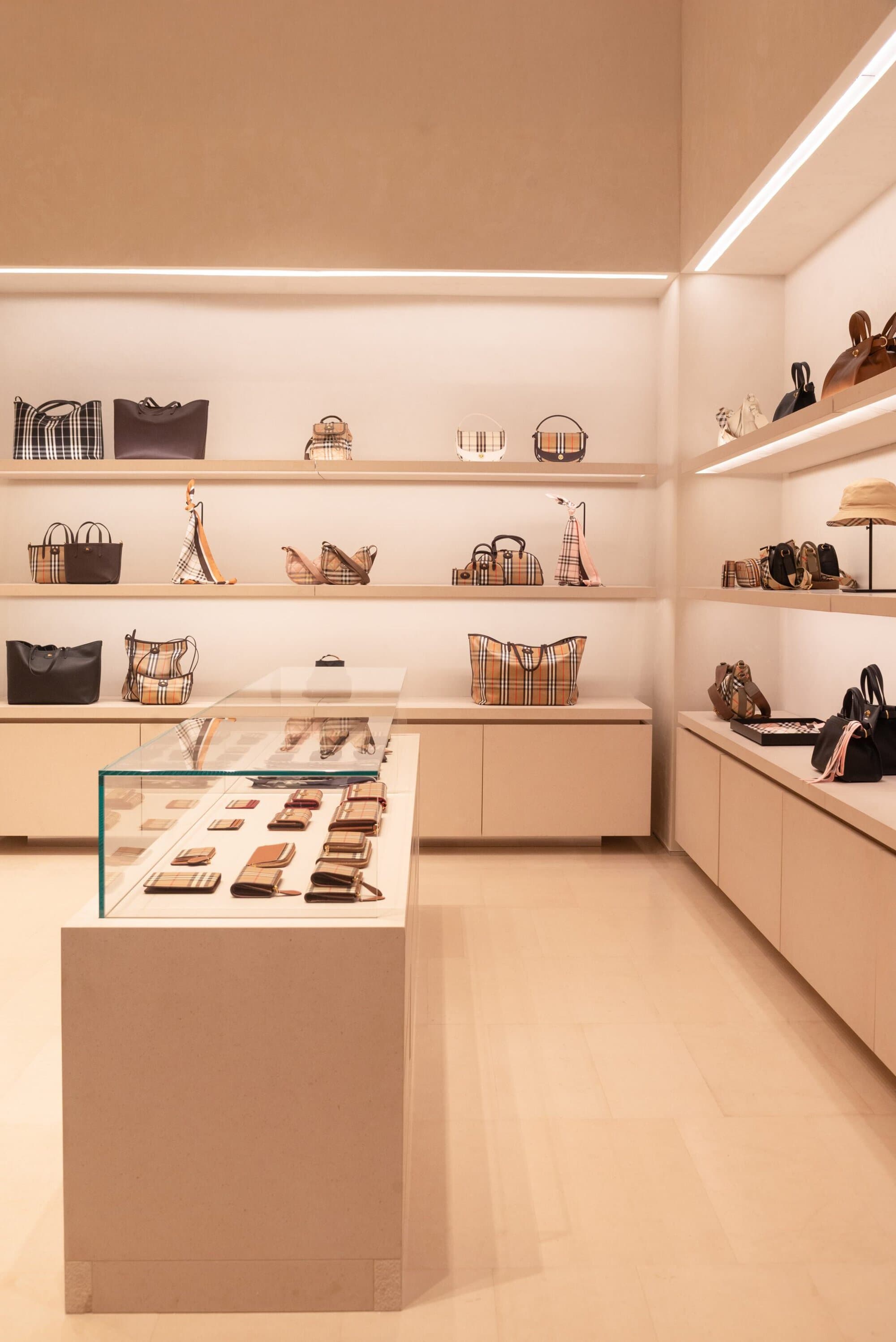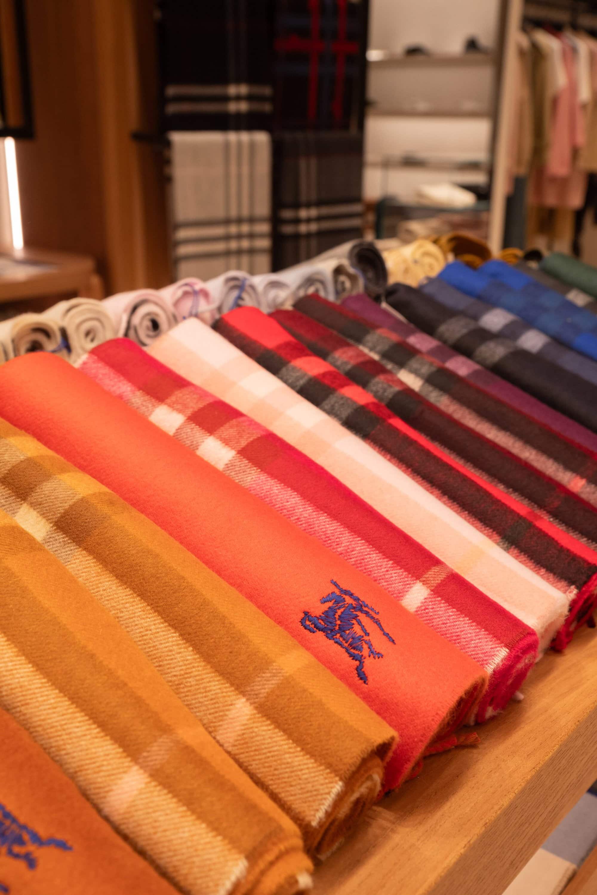 Scarves take center stage through the brand’s newly introduced Scarf Bar, a dedicated area showcasing Burberry’s soft accessories within bespoke furniture. From cashmere to silk twill, the curated selection highlights the depth of the house’s textile expertise across a rich range of colors, patterns, and textures. Completing the offering is a full assortment of womenswear, menswear, bags, and shoes, including summer-ready Check swimwear and accessories inspired by Burberry’s equestrian heritage, such as the Highlands and Horseshoe bags—positioning the Monterrey store as a complete expression of the brand today.