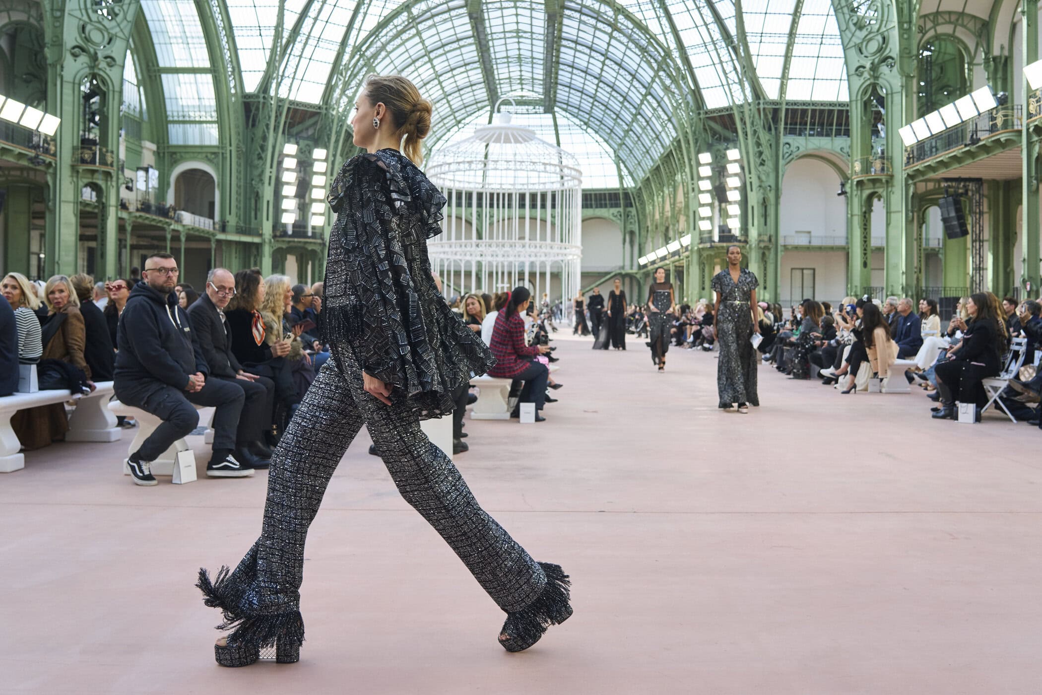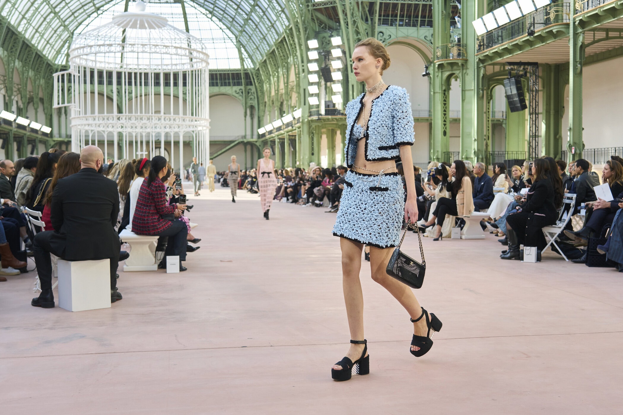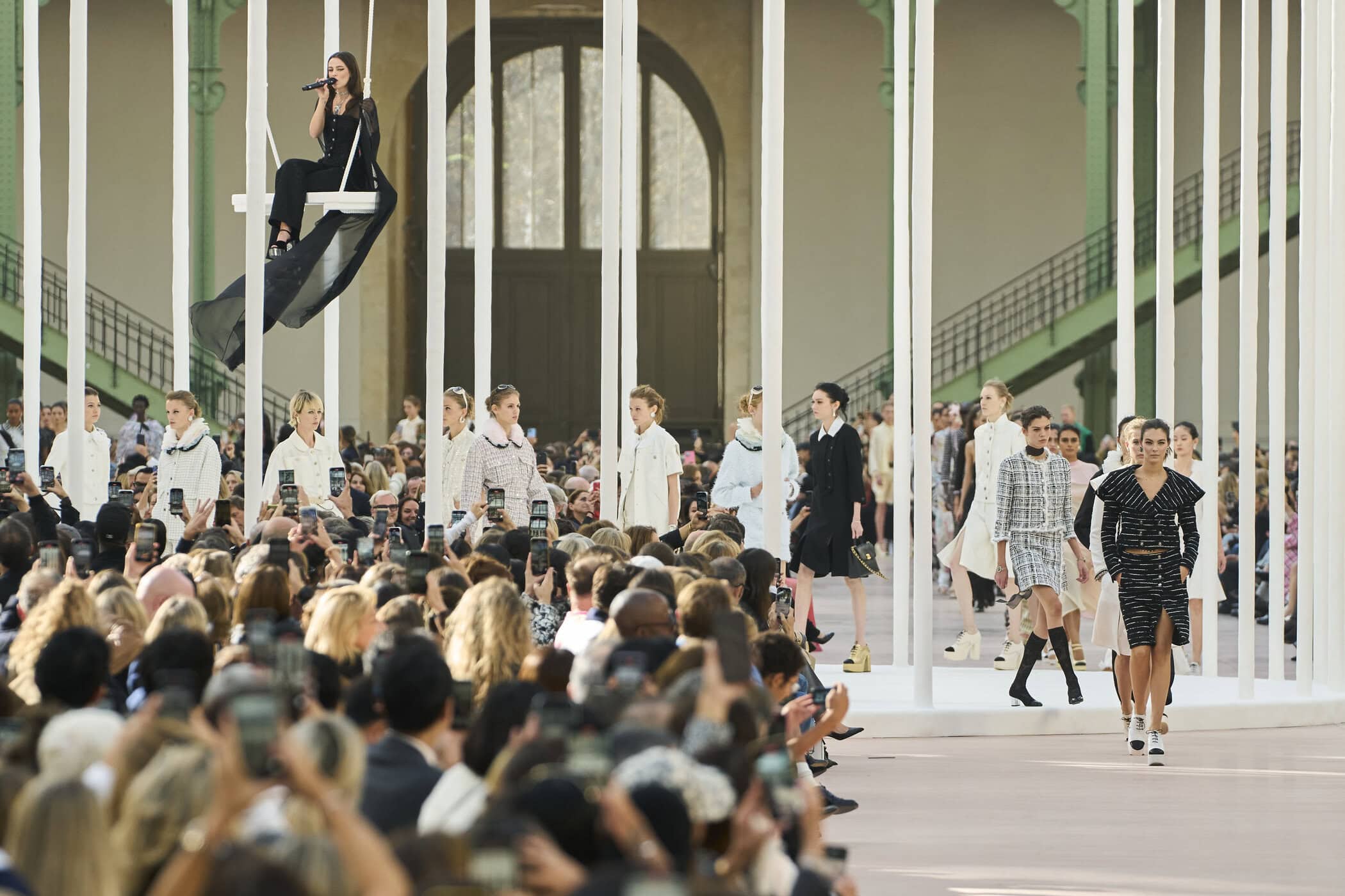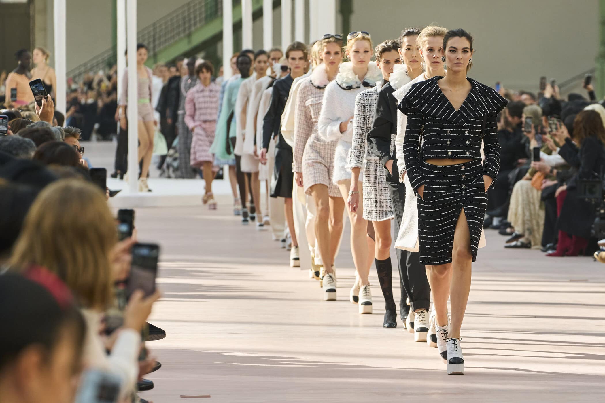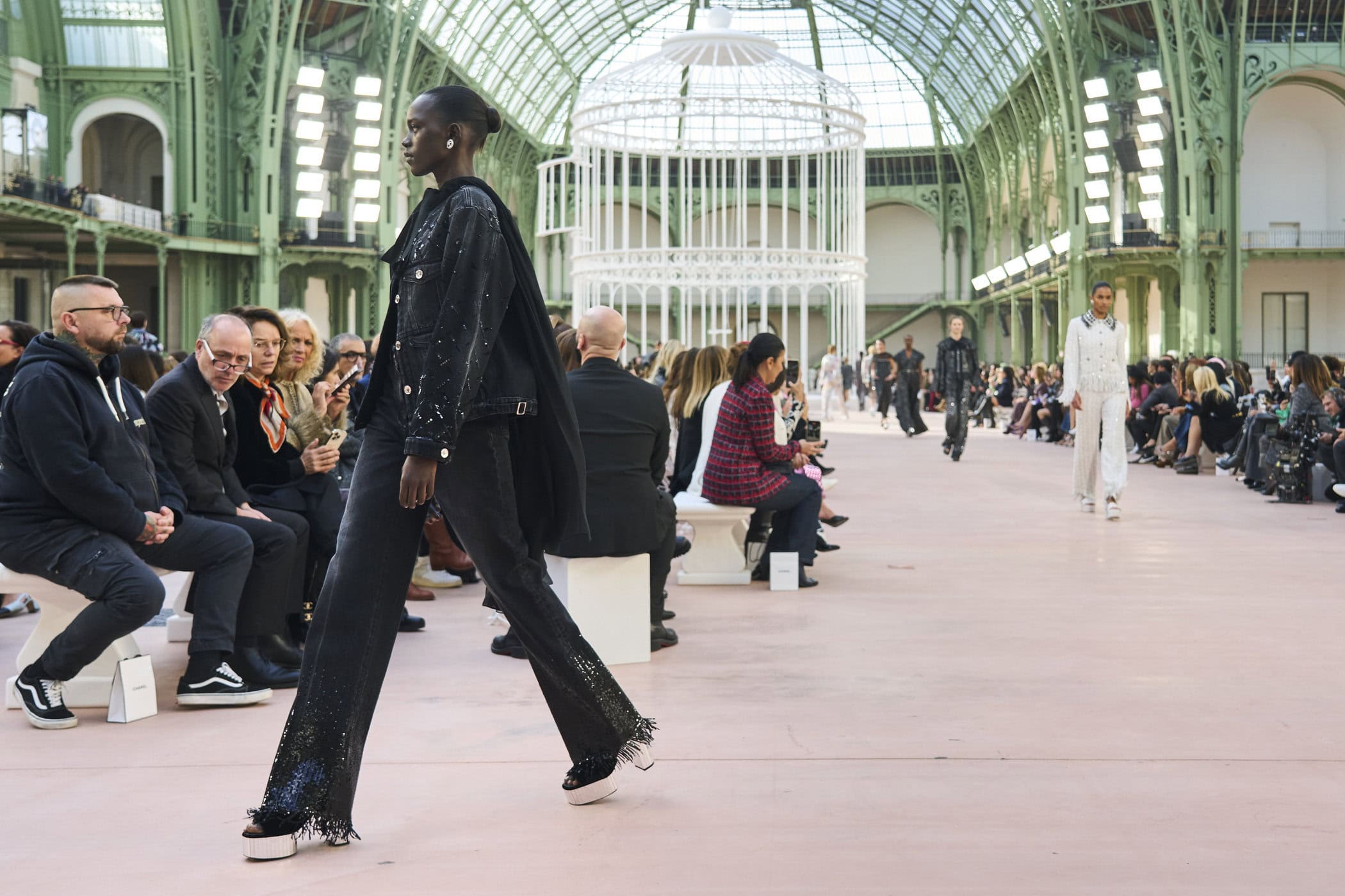 Discover the immersive atmosphere and striking staging of Chanel‘s Spring 2025 fashion show at Paris Fashion Week, creating an unforgettable mood this season.