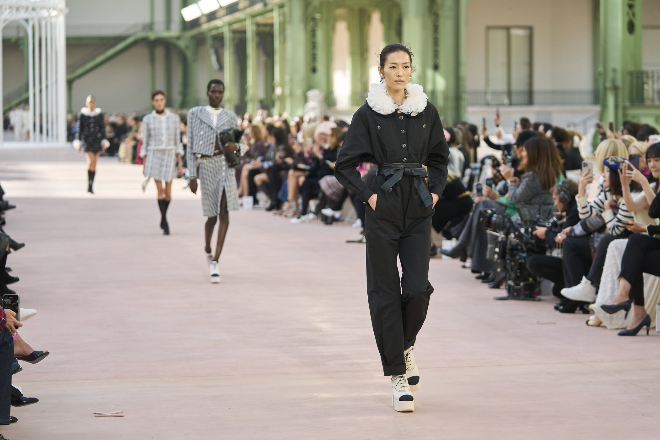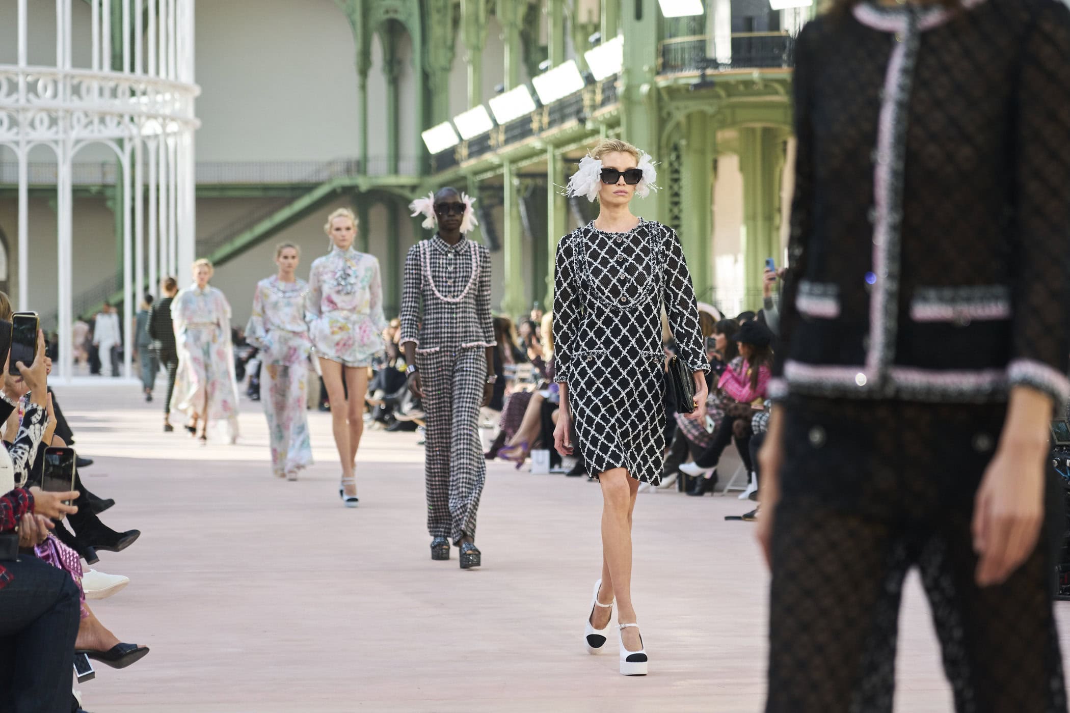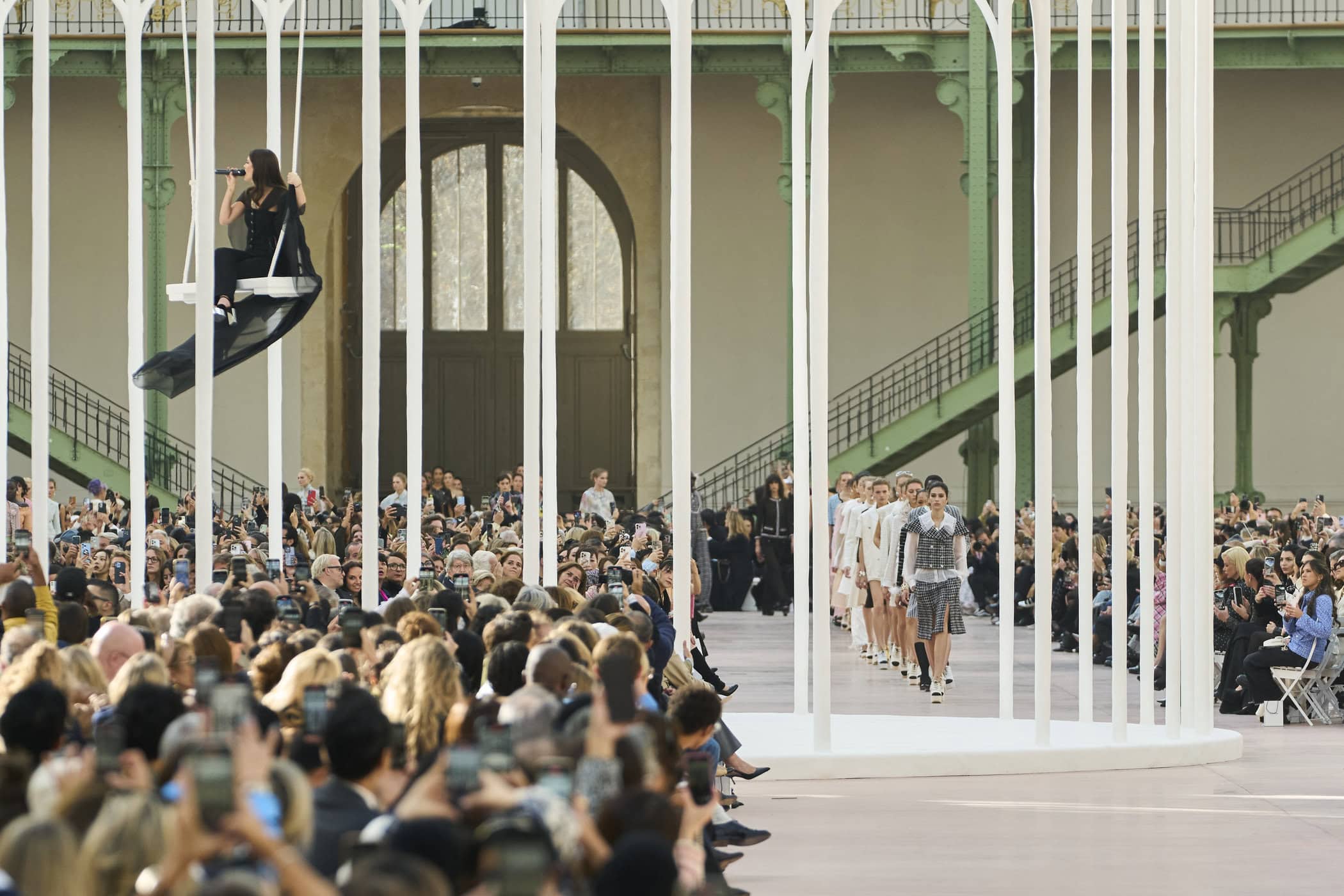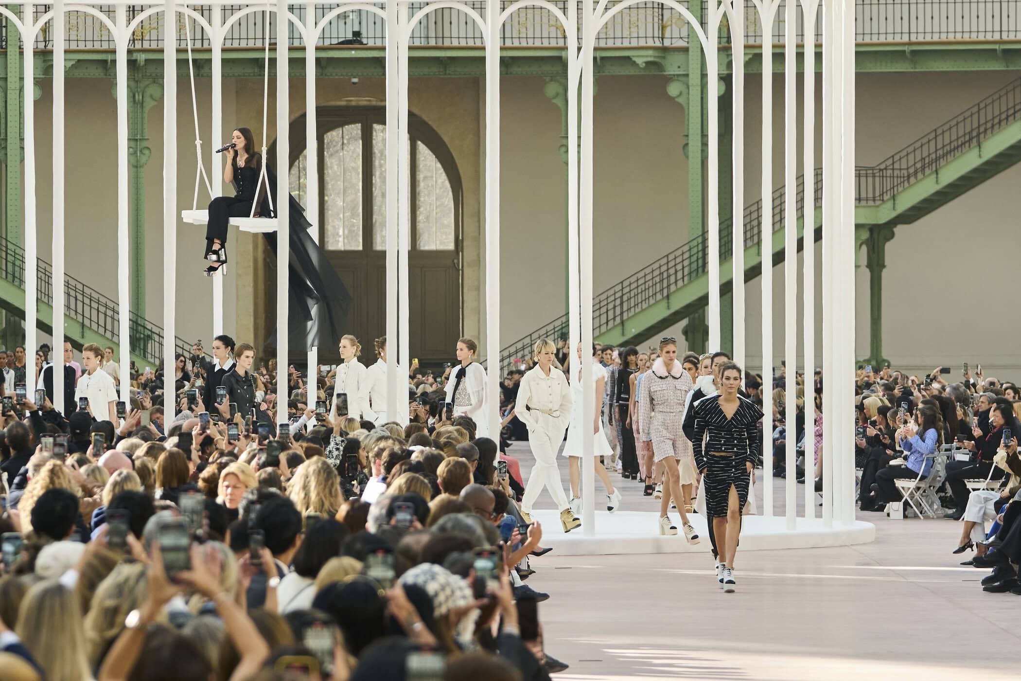 Discover the immersive atmosphere and striking staging of Chanel‘s Spring 2025 fashion show at Paris Fashion Week, creating an unforgettable mood this season.