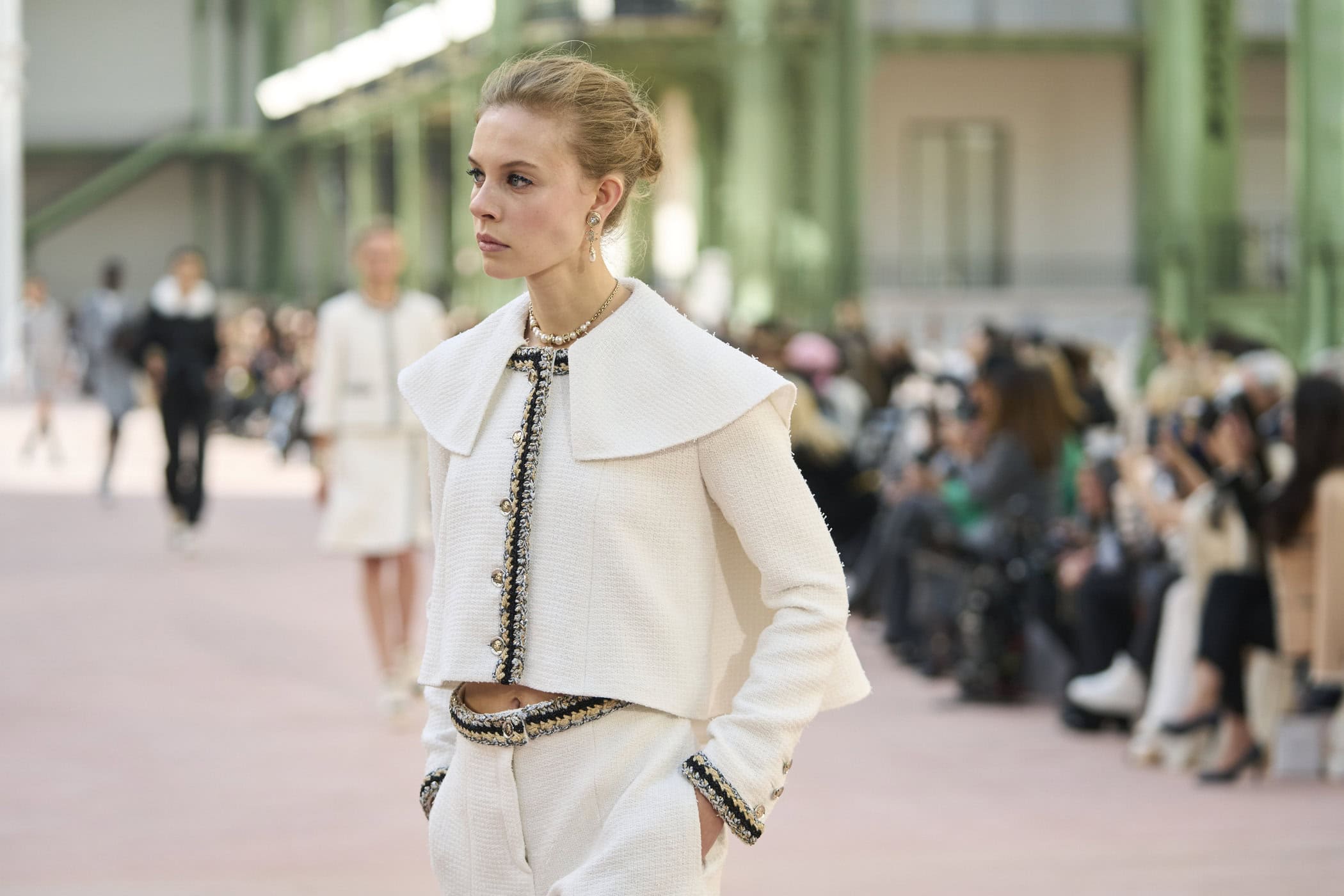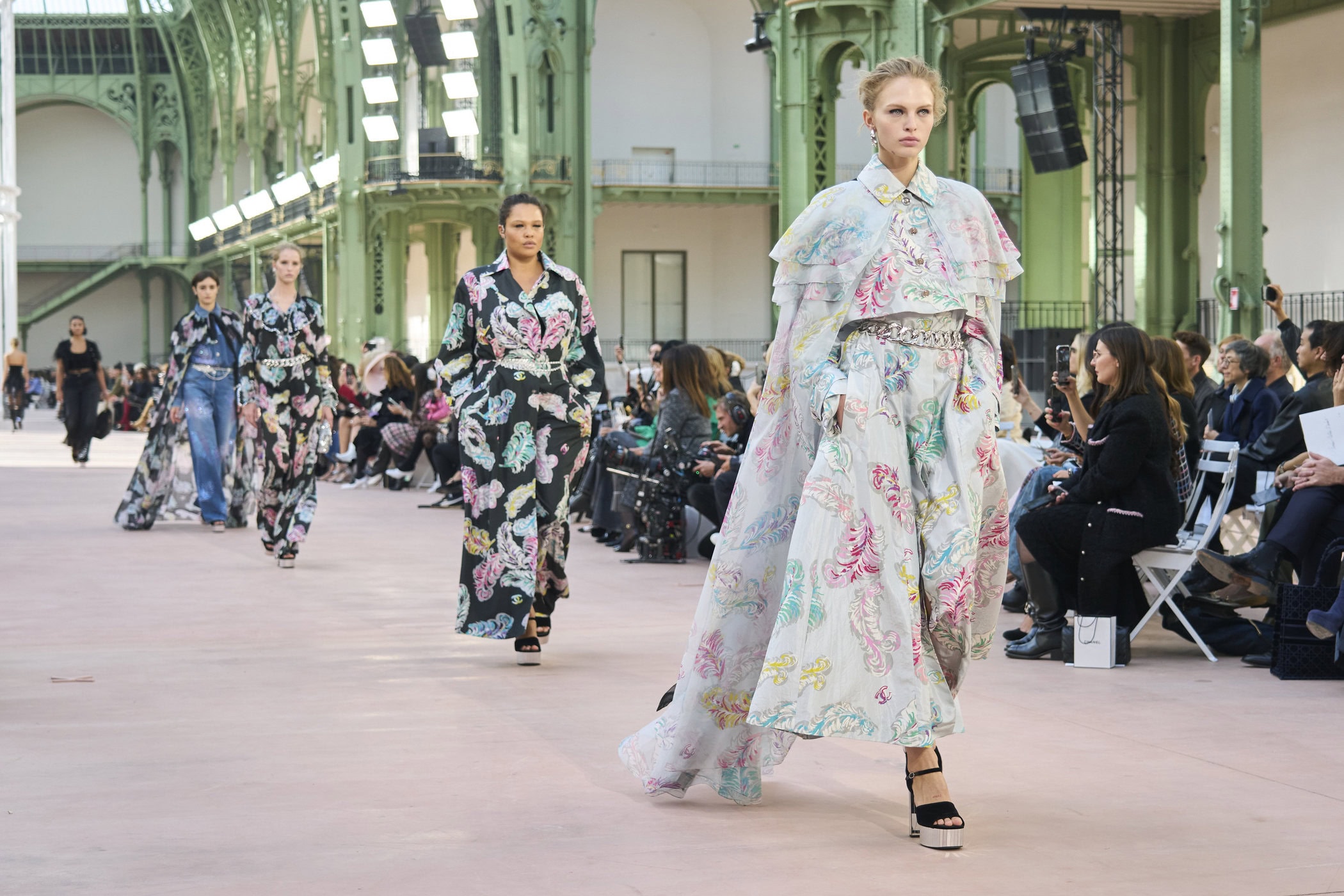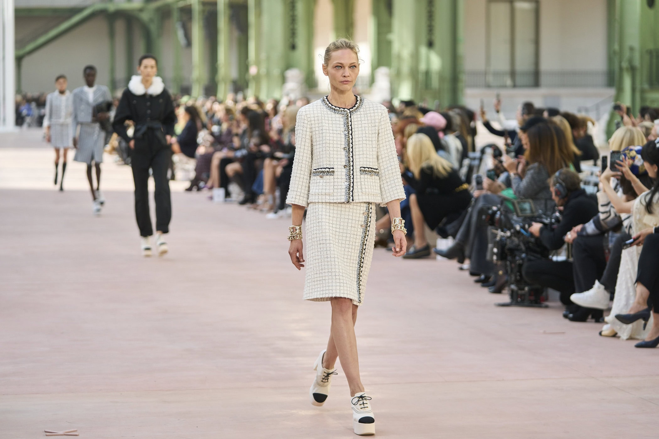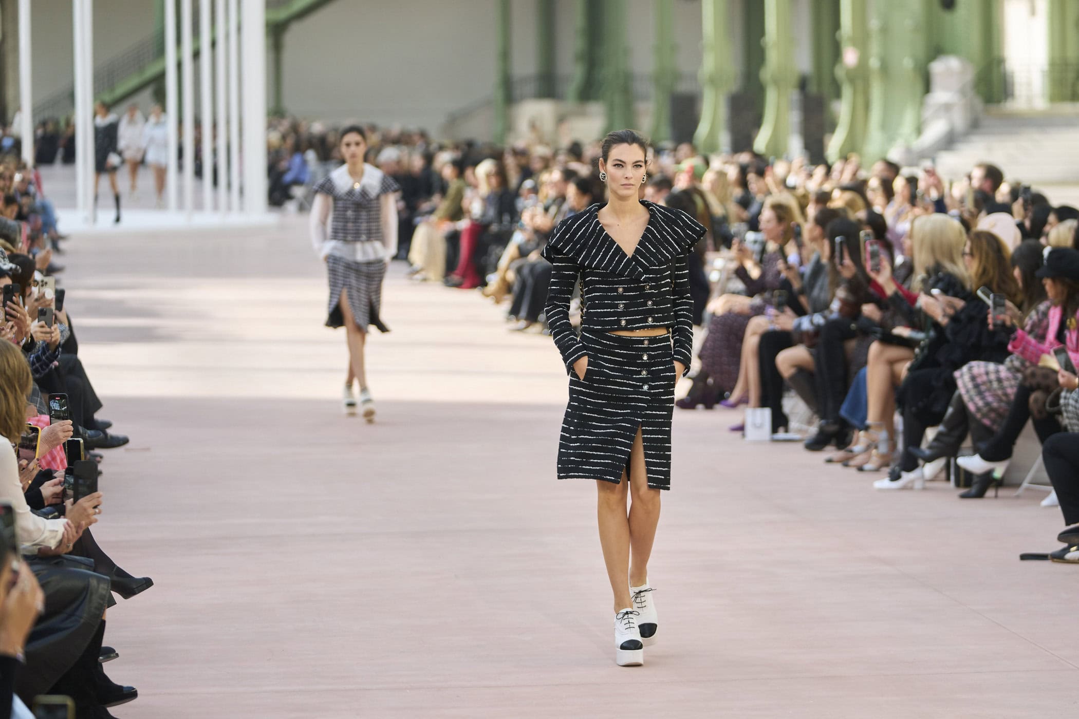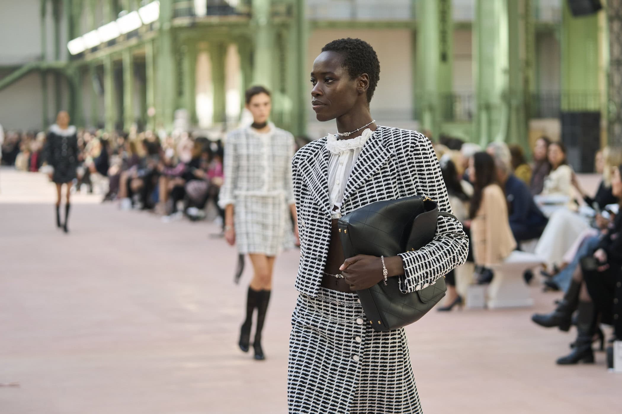 Discover the immersive atmosphere and striking staging of Chanel‘s Spring 2025 fashion show at Paris Fashion Week, creating an unforgettable mood this season.
