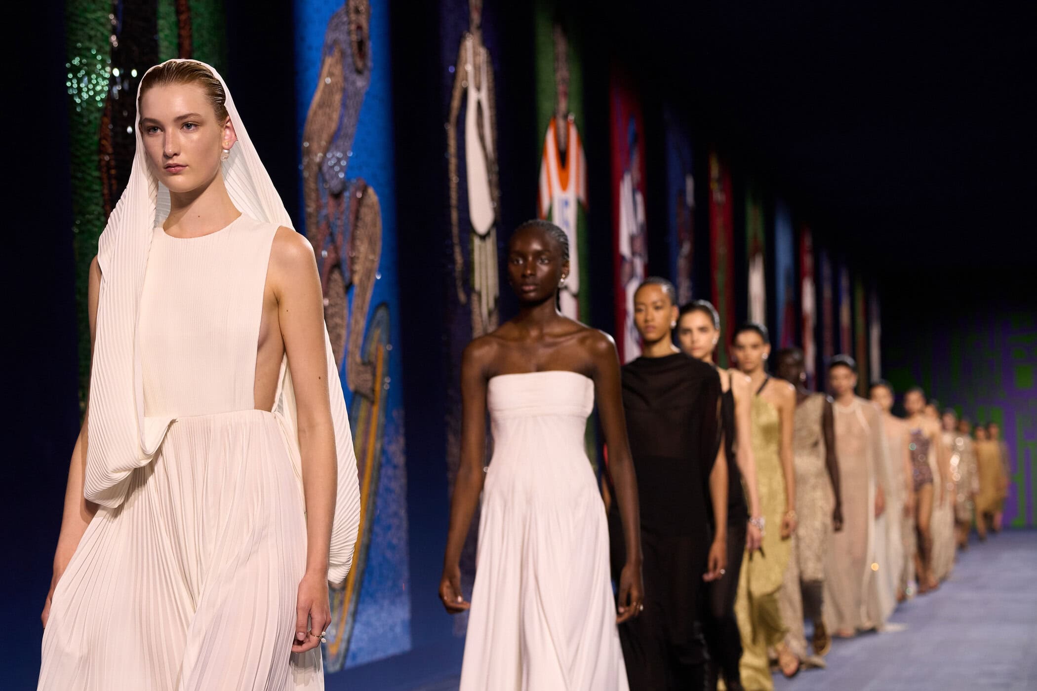 Discover the immersive atmosphere and striking staging of Christian Dior‘s Fall 2024 couture fashion show at Paris Couture Fashion Week, creating an unforgettable mood this June.