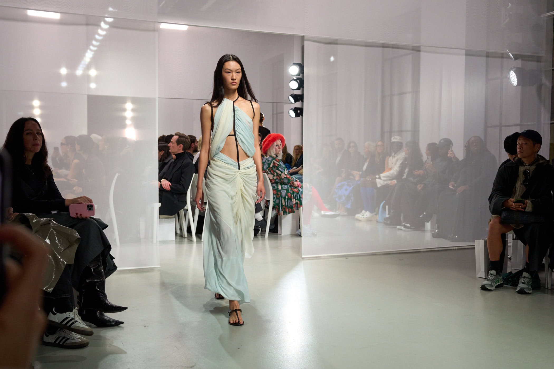 Discover the immersive atmosphere and striking staging of Christopher Esber‘s Spring 2025 fashion show at Paris Fashion Week, creating an unforgettable mood this season.