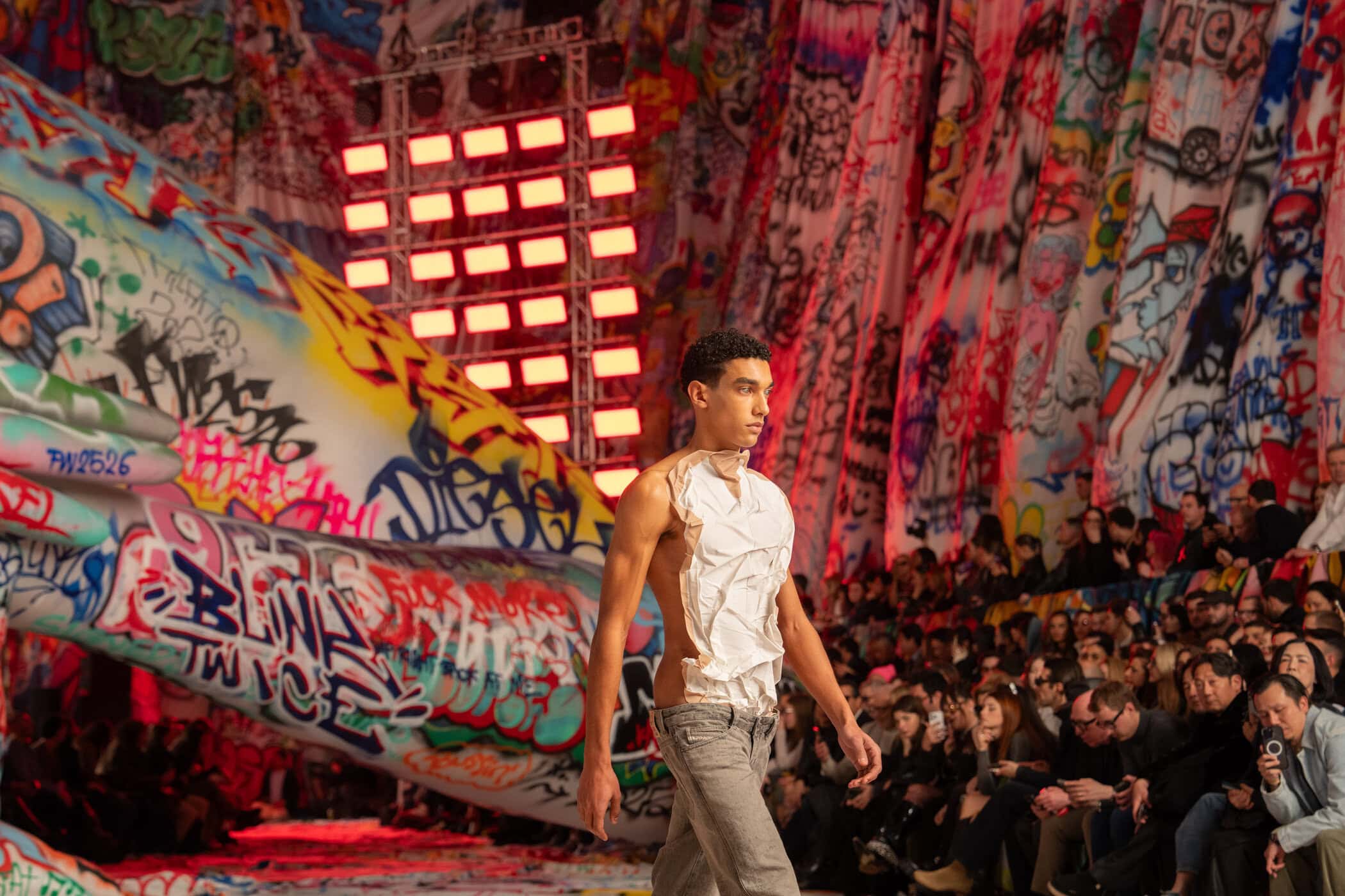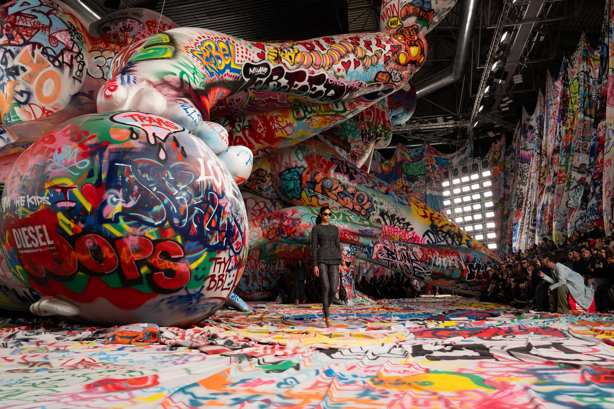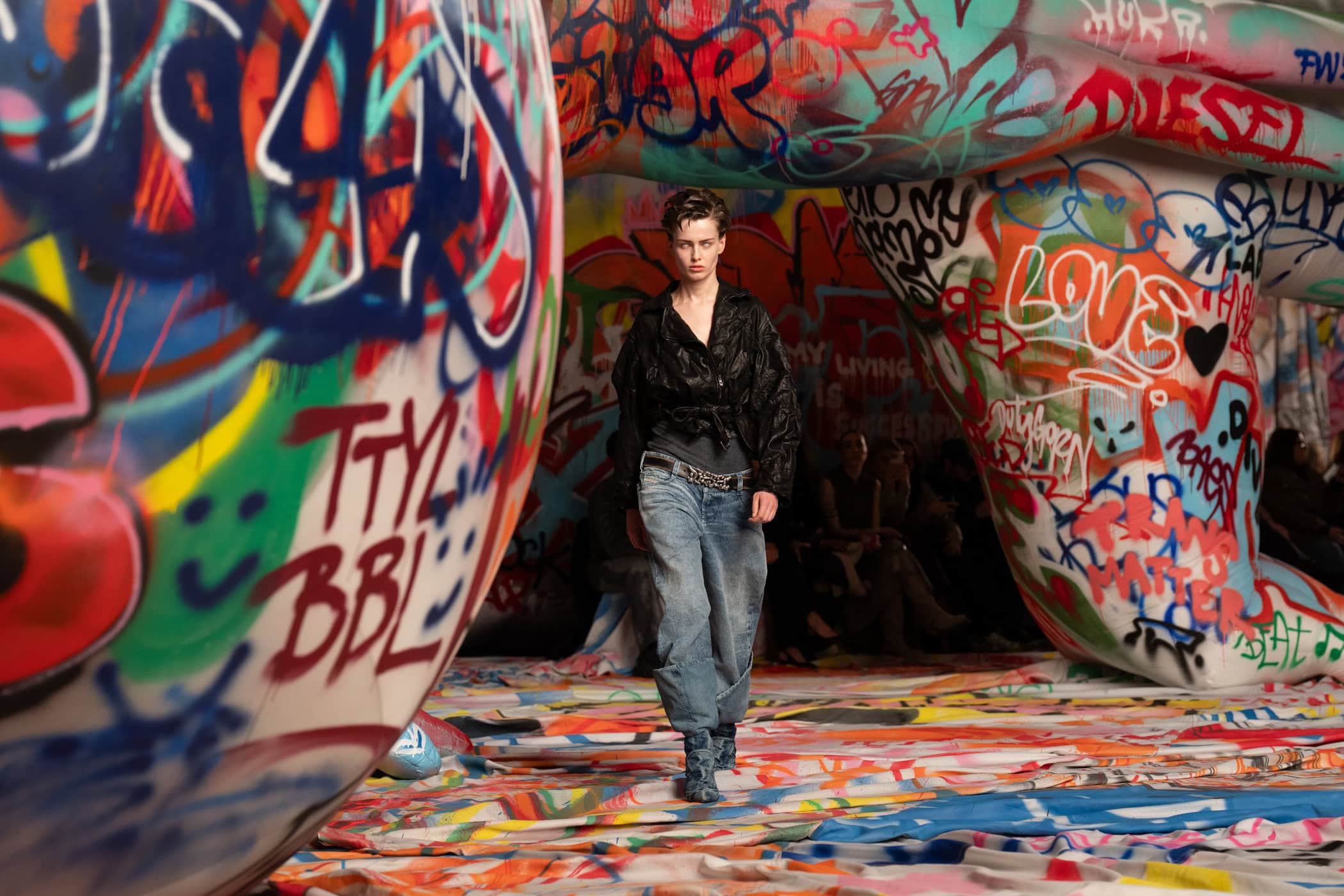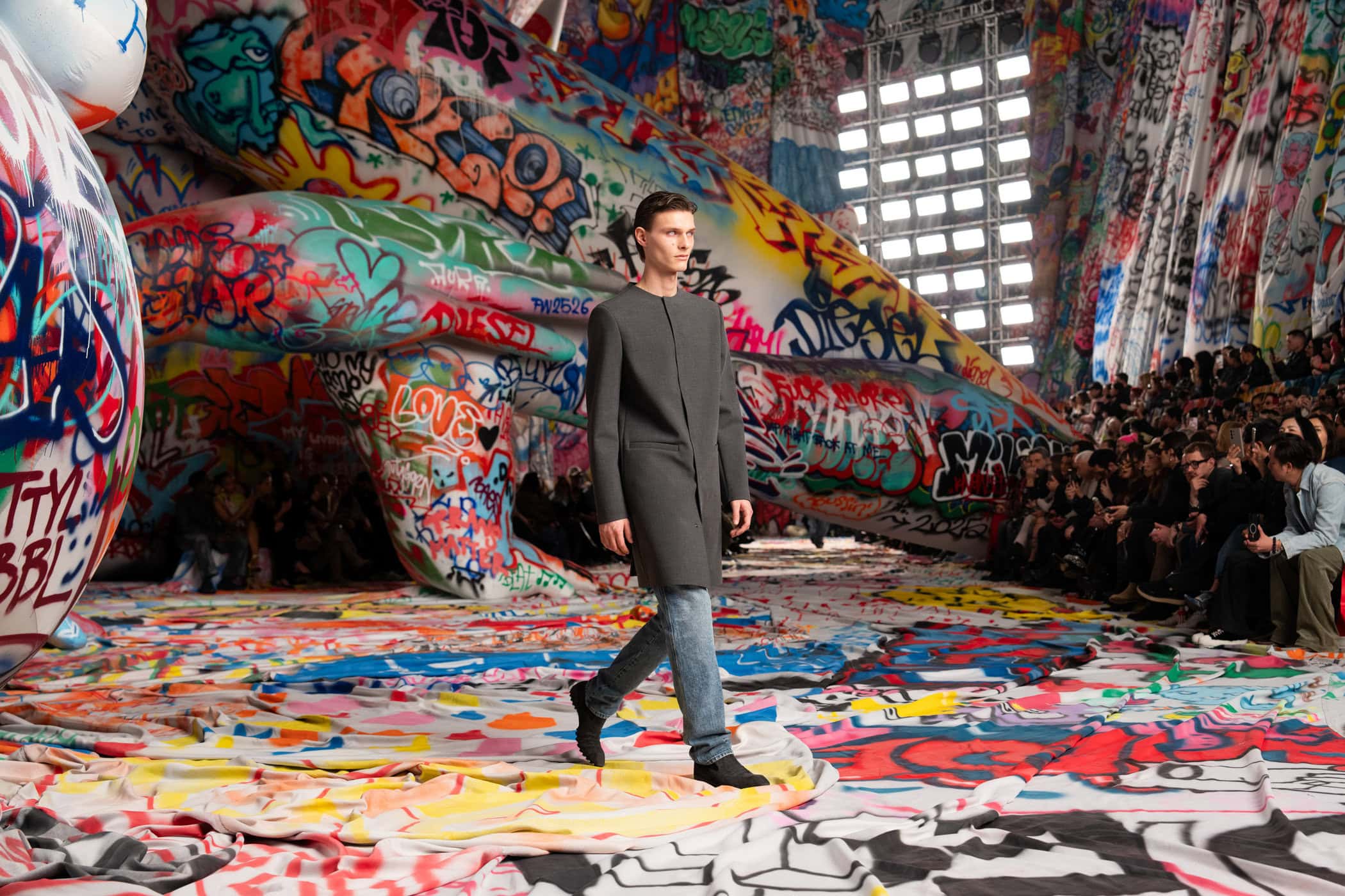 Discover the immersive atmosphere and staging of Diesel‘s Fall 2025 fashion show at Milan Fashion Week.