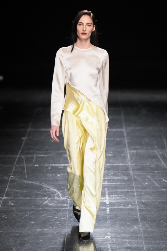 Top-to-toe tailoring and formal skirt suits may still read as a season too soon, but Karamolegkou’s sensual take on partywear was the perfect antithesis to the most recent obsession with noughties-style micro minis and bodycon dresses. The clever cuts of her satin bias dresses reveal just enough skin that played on the right side of sensuality, and again when re-worked as separates, showed how the designers’ clothes are “made to be lived in”, an important consideration for any brand that is looking to resonate with today’s working woman.
