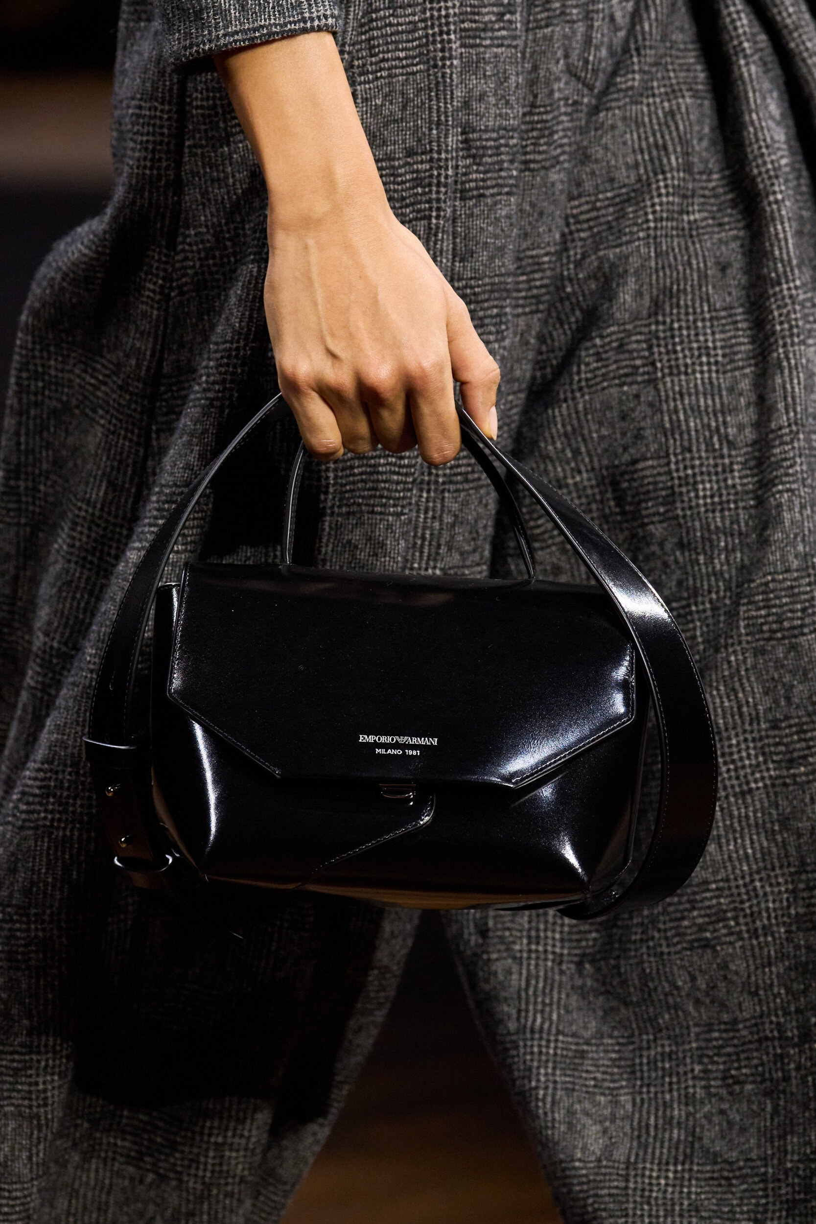 Get an exclusive look at Emporio Armani‘s Fall 2026 fashion show accessories featuring footwear, handbags, eyewear, and more from the runways of Milan Fashion Week, held in Feb 2026.