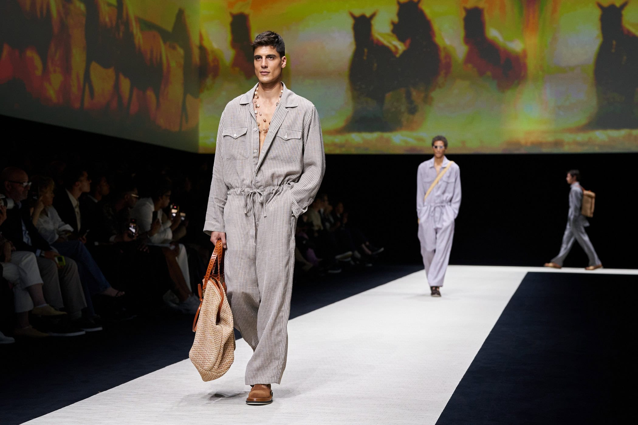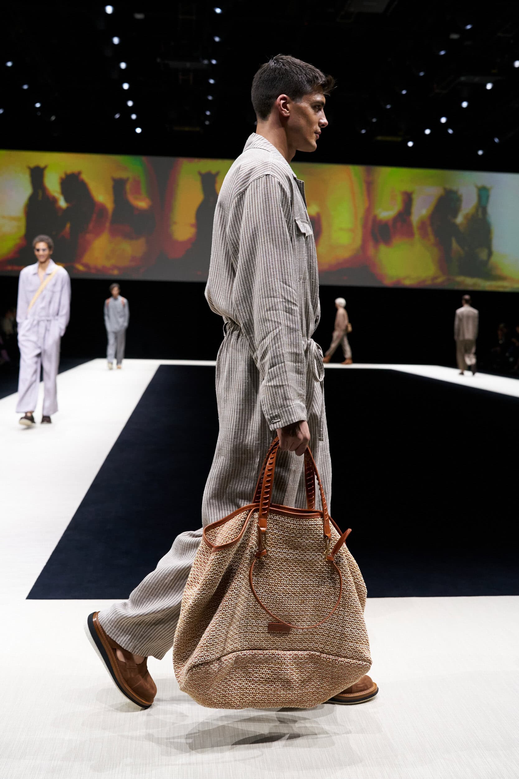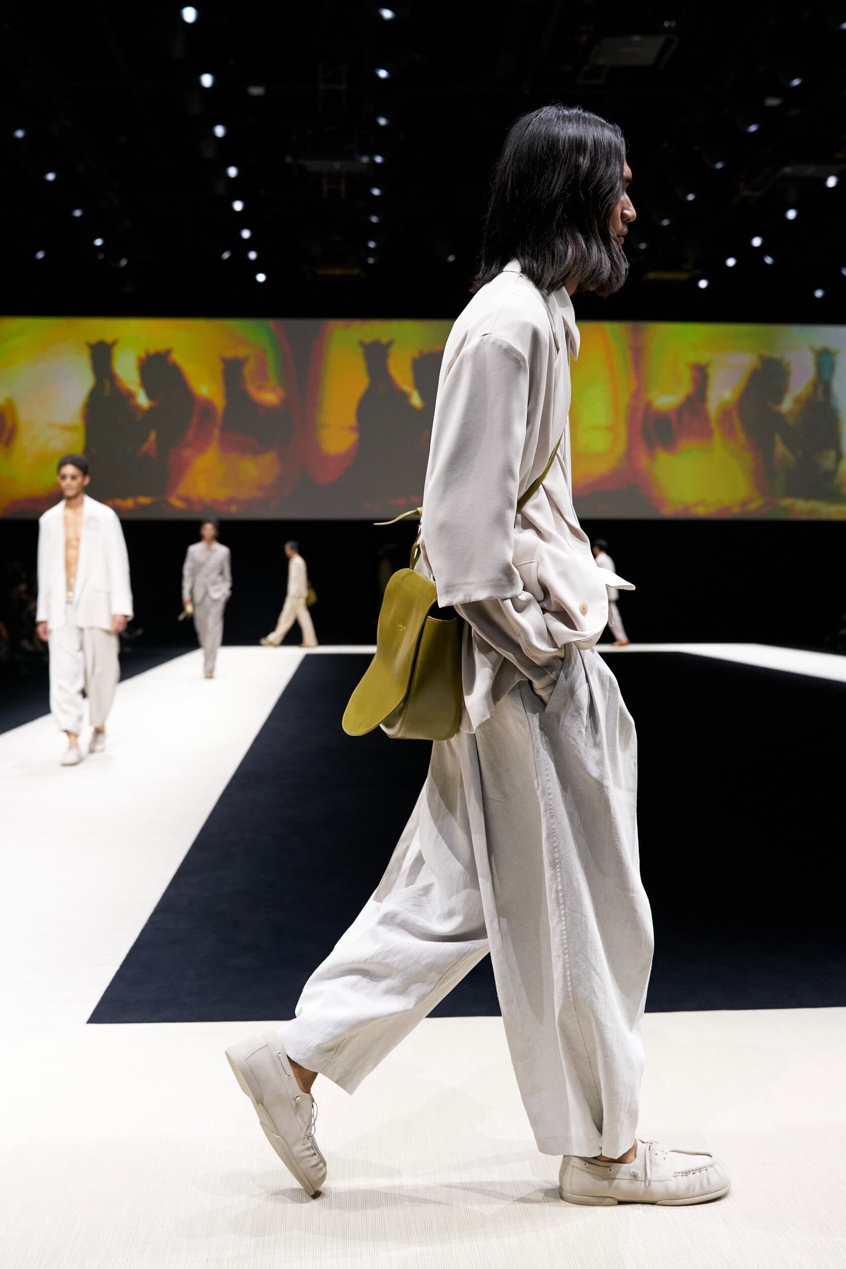Discover the immersive atmosphere and striking staging of Emporio Armani‘s Spring 2025 men’s fashion show at Milan Men’s Fashion Week, creating an unforgettable mood this June.