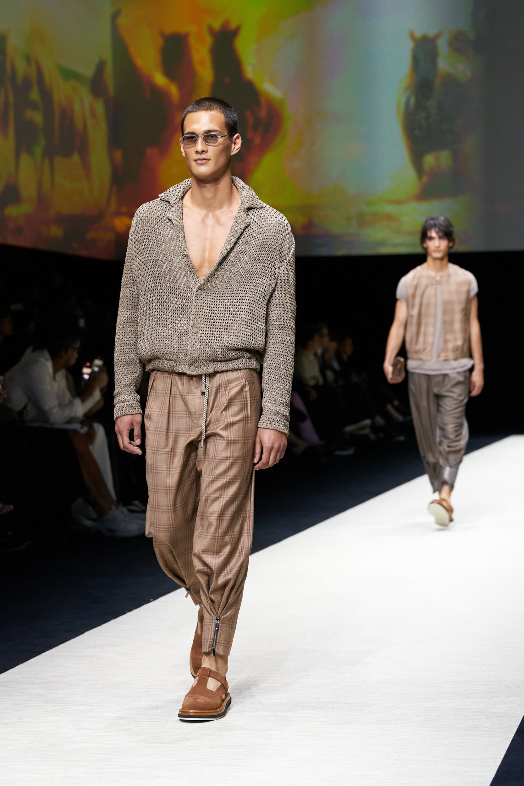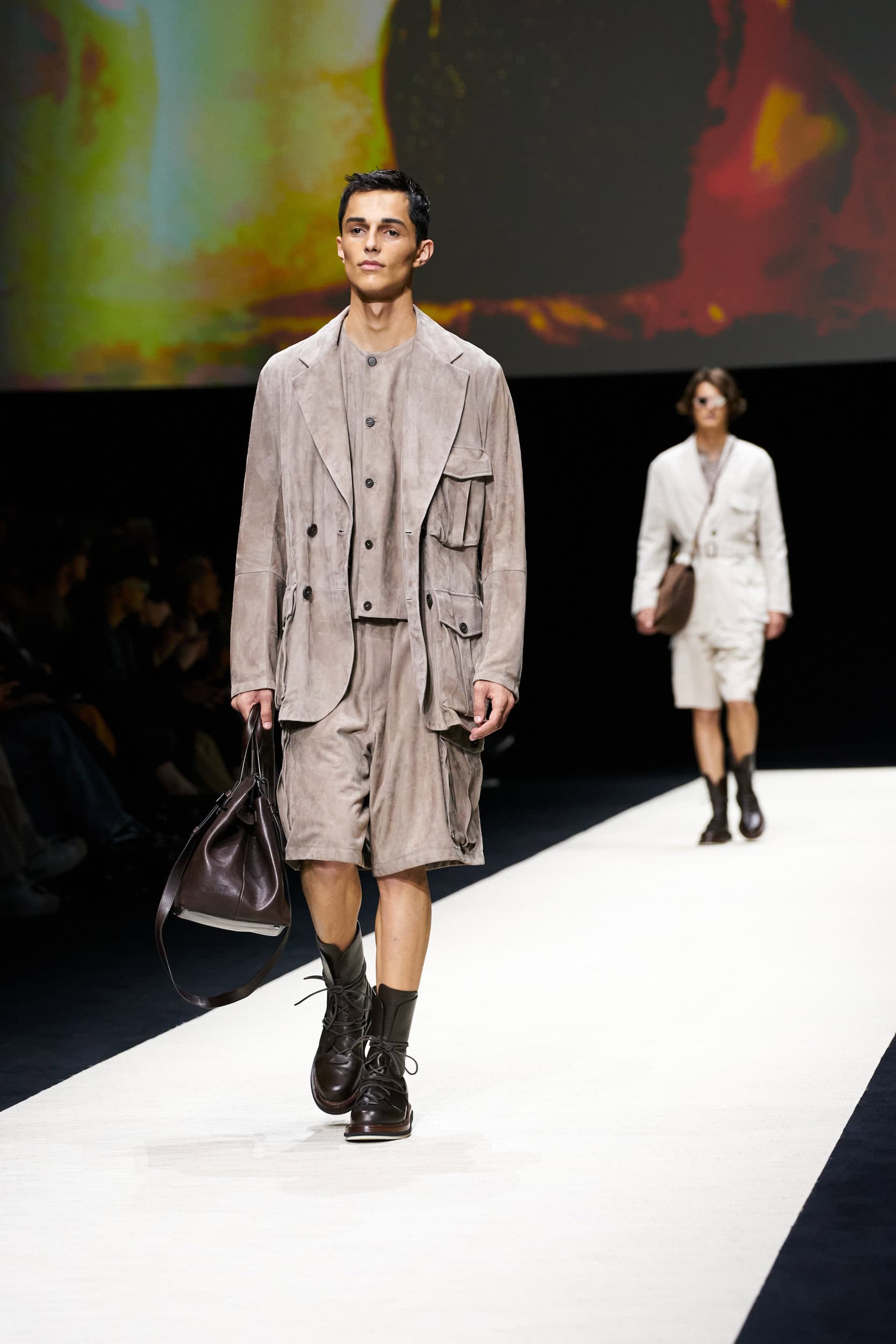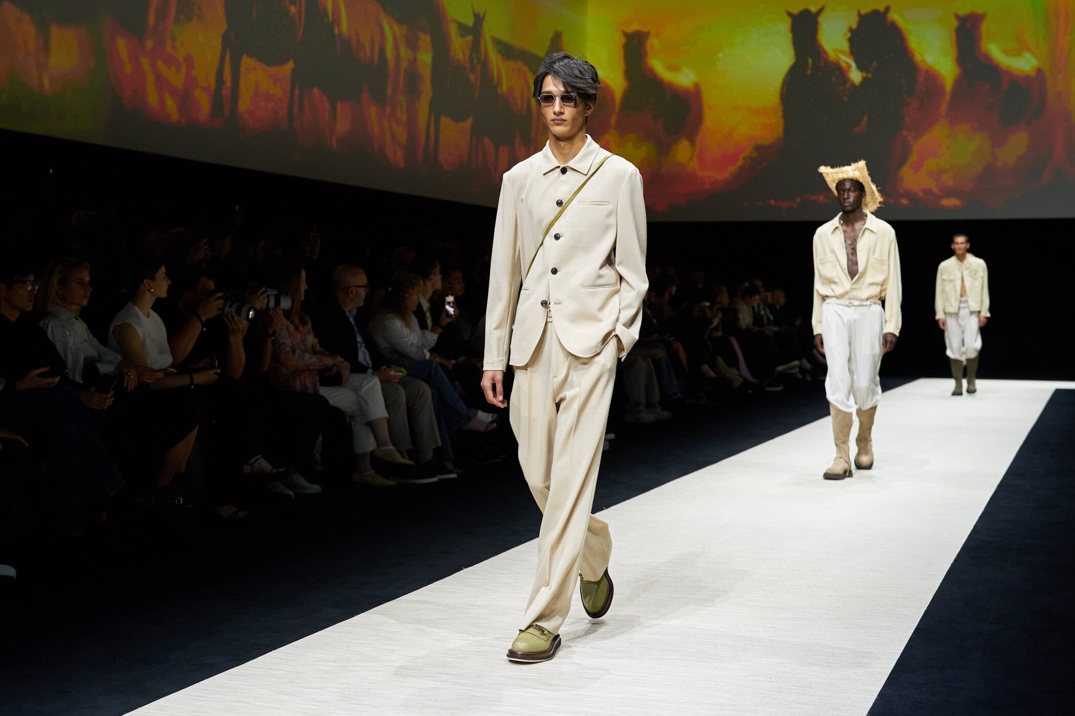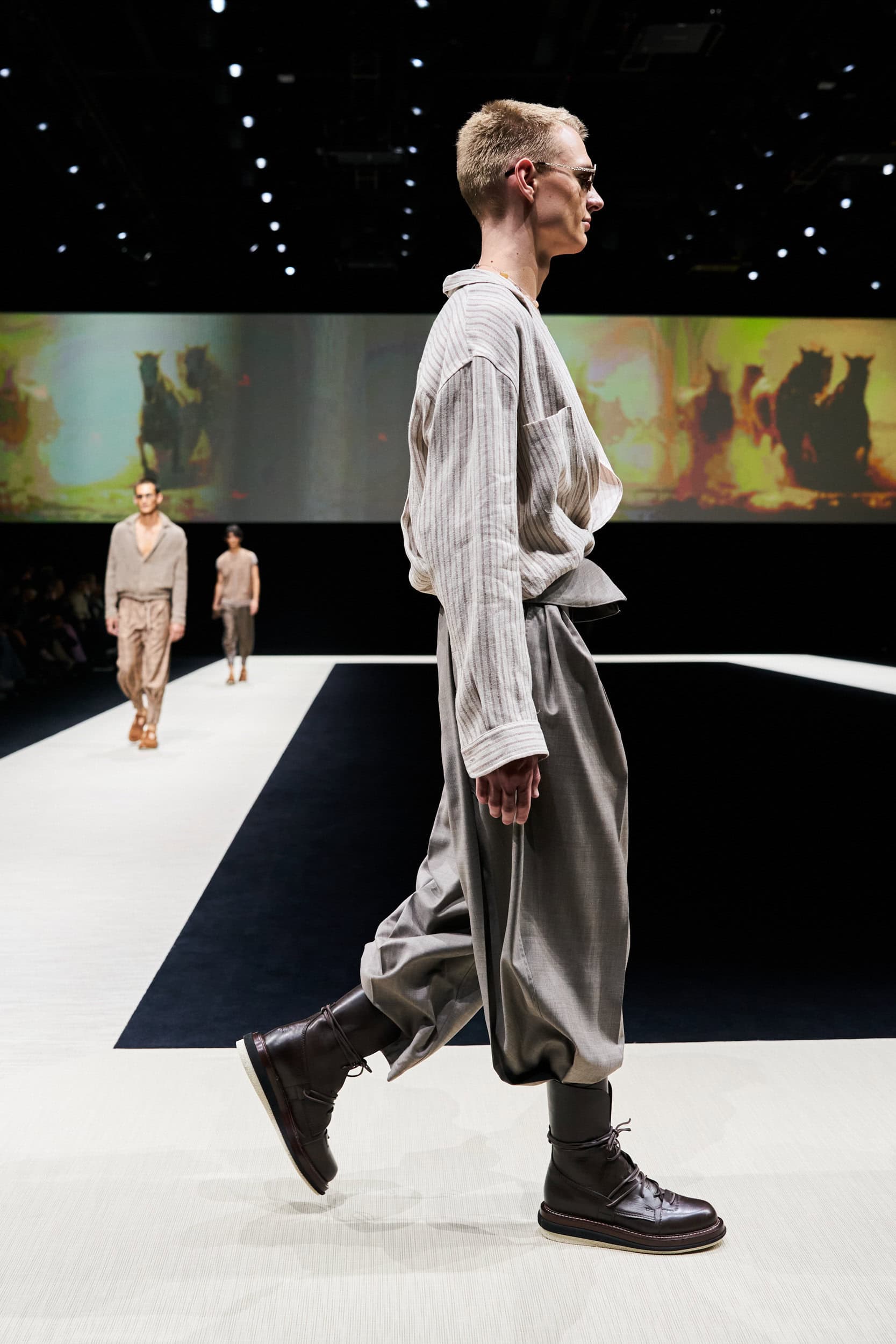 Discover the immersive atmosphere and striking staging of Emporio Armani‘s Spring 2025 men’s fashion show at Milan Men’s Fashion Week, creating an unforgettable mood this June.