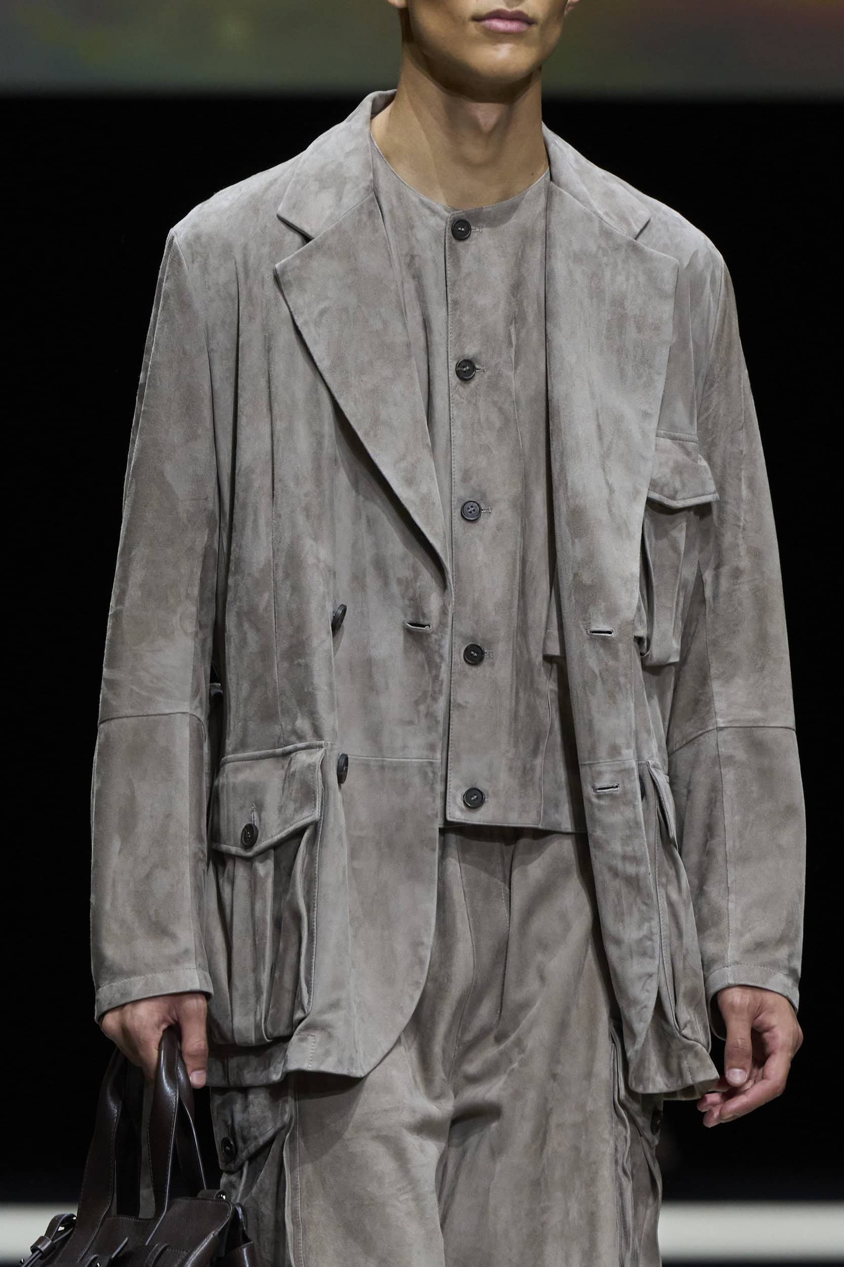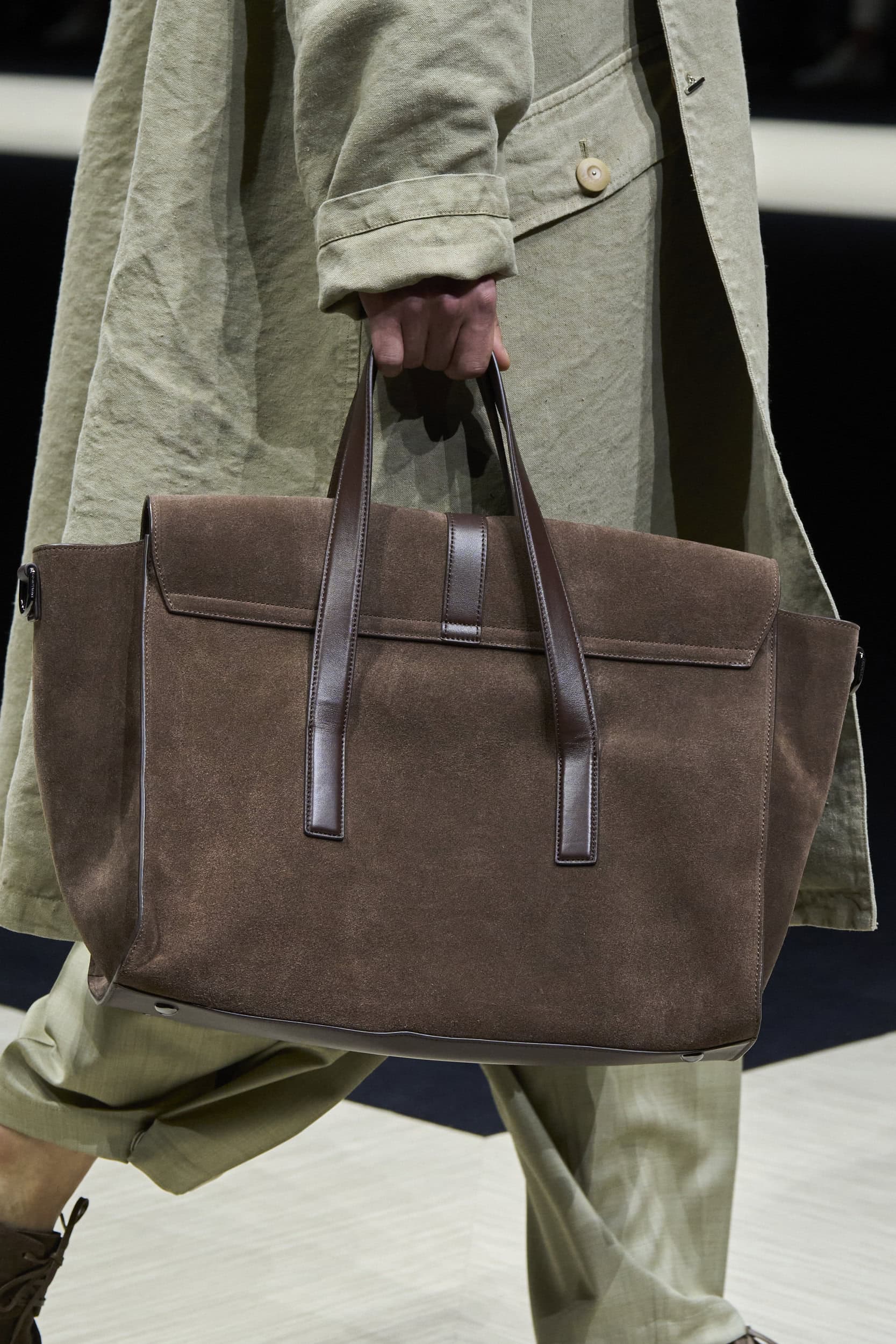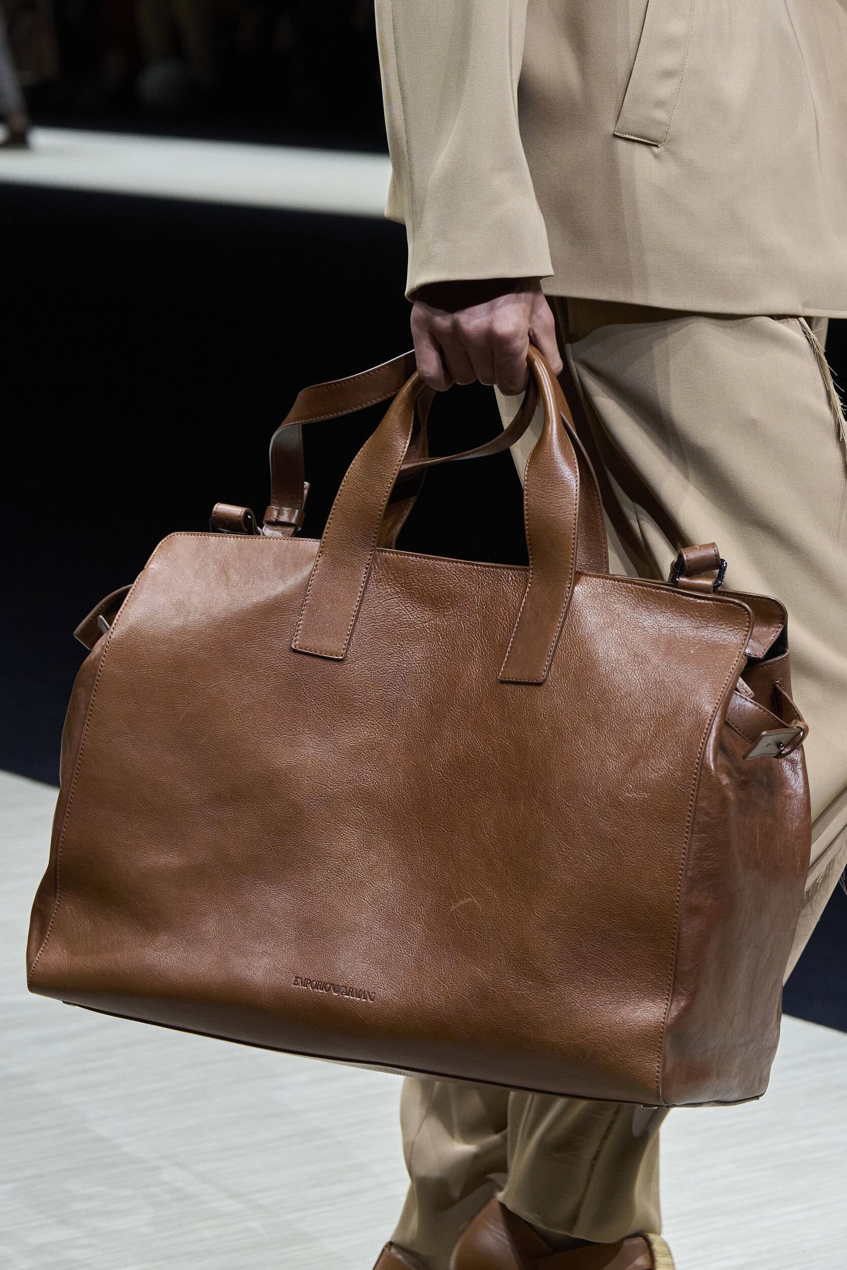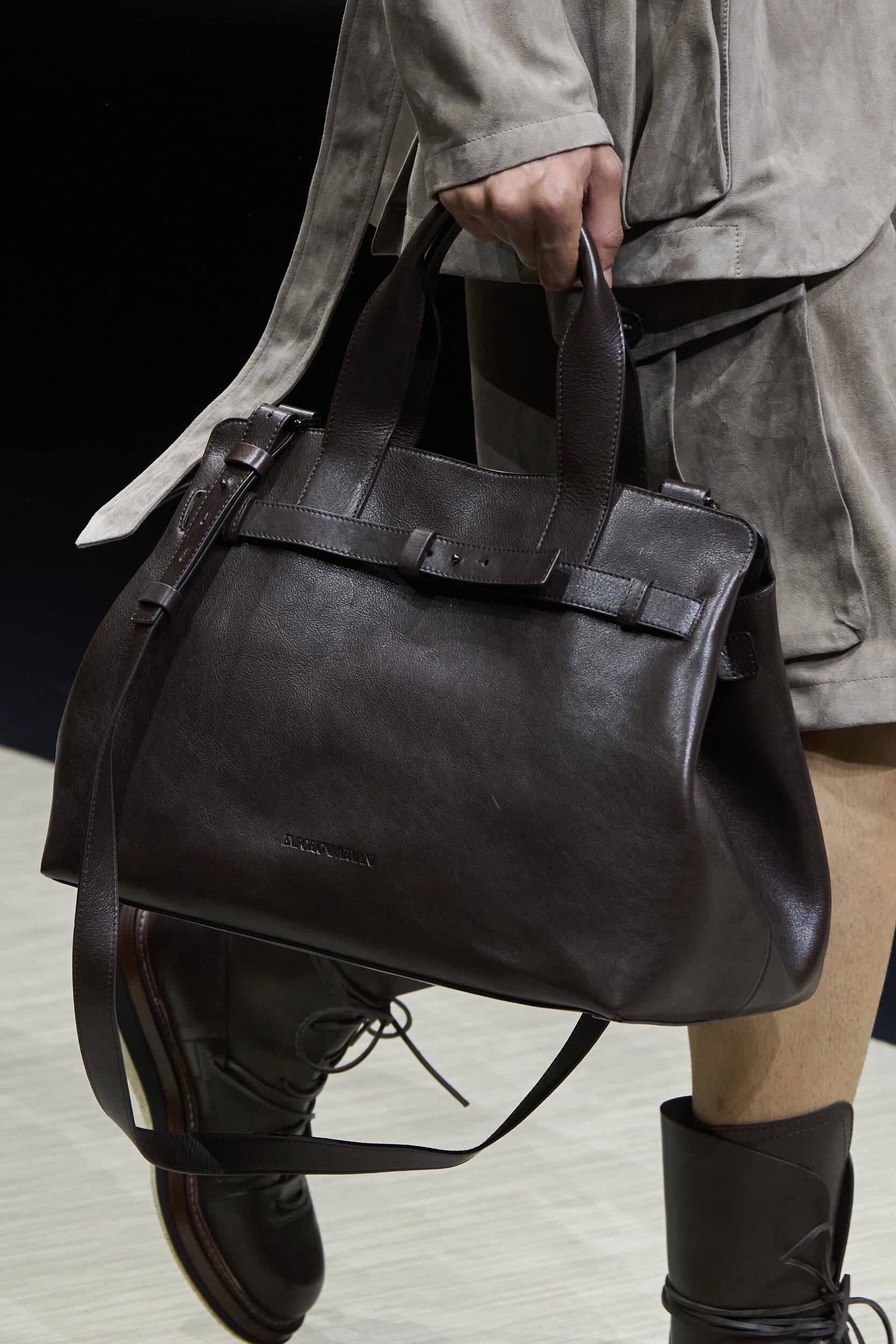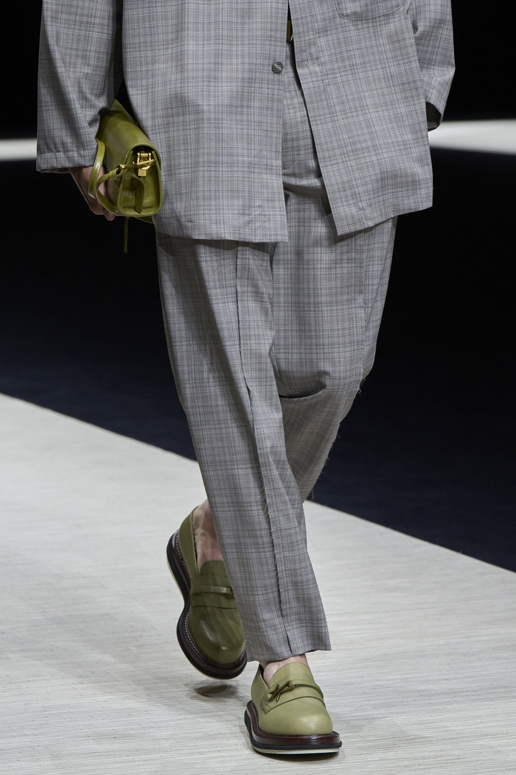 Get an exclusive look at Emporio Armani‘s innovative Spring 2025 men’s fashion show accessories featuring footwear, handbags, eyewear, and more from the runways of Milan Men’s Fashion Week, held in June 2024.