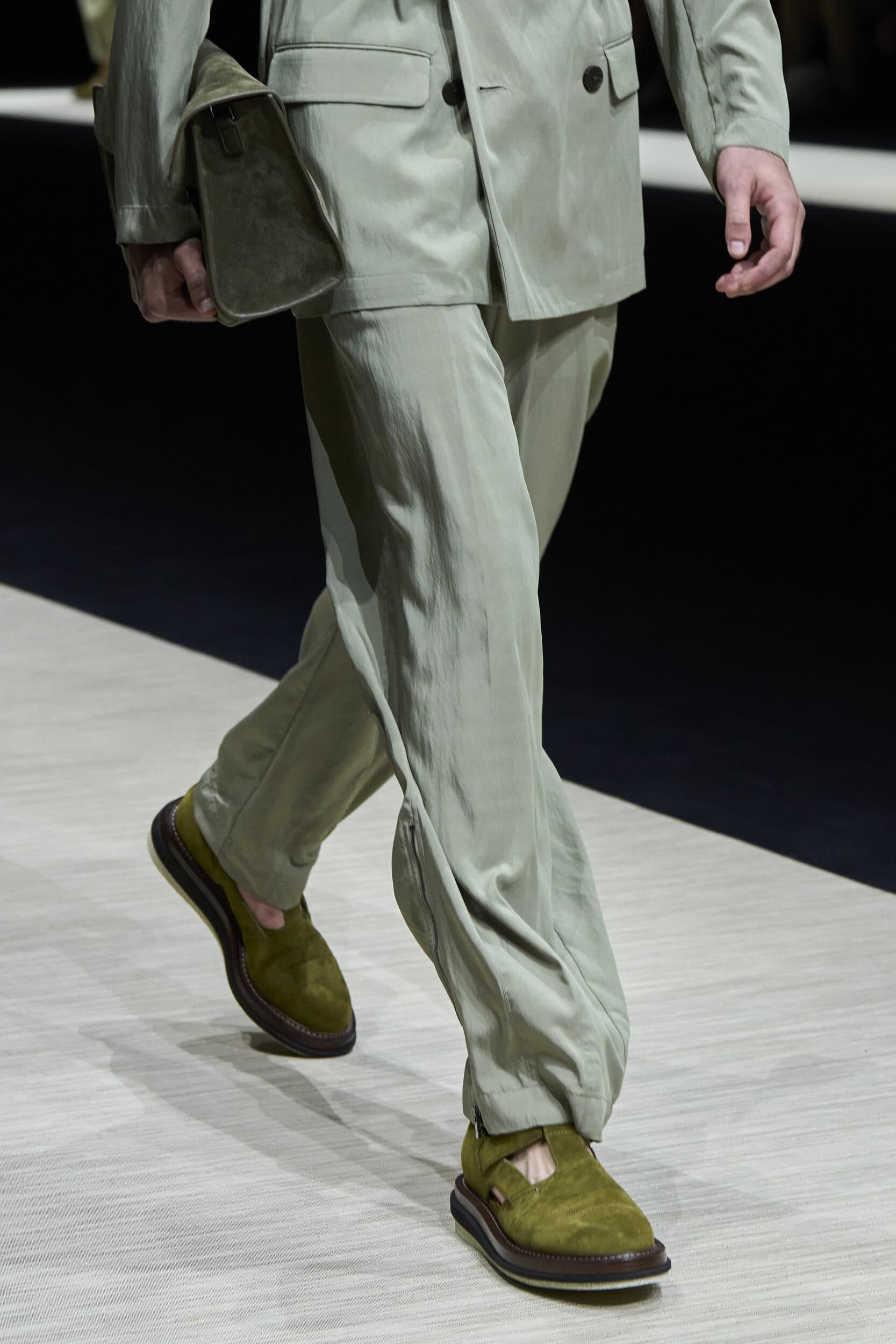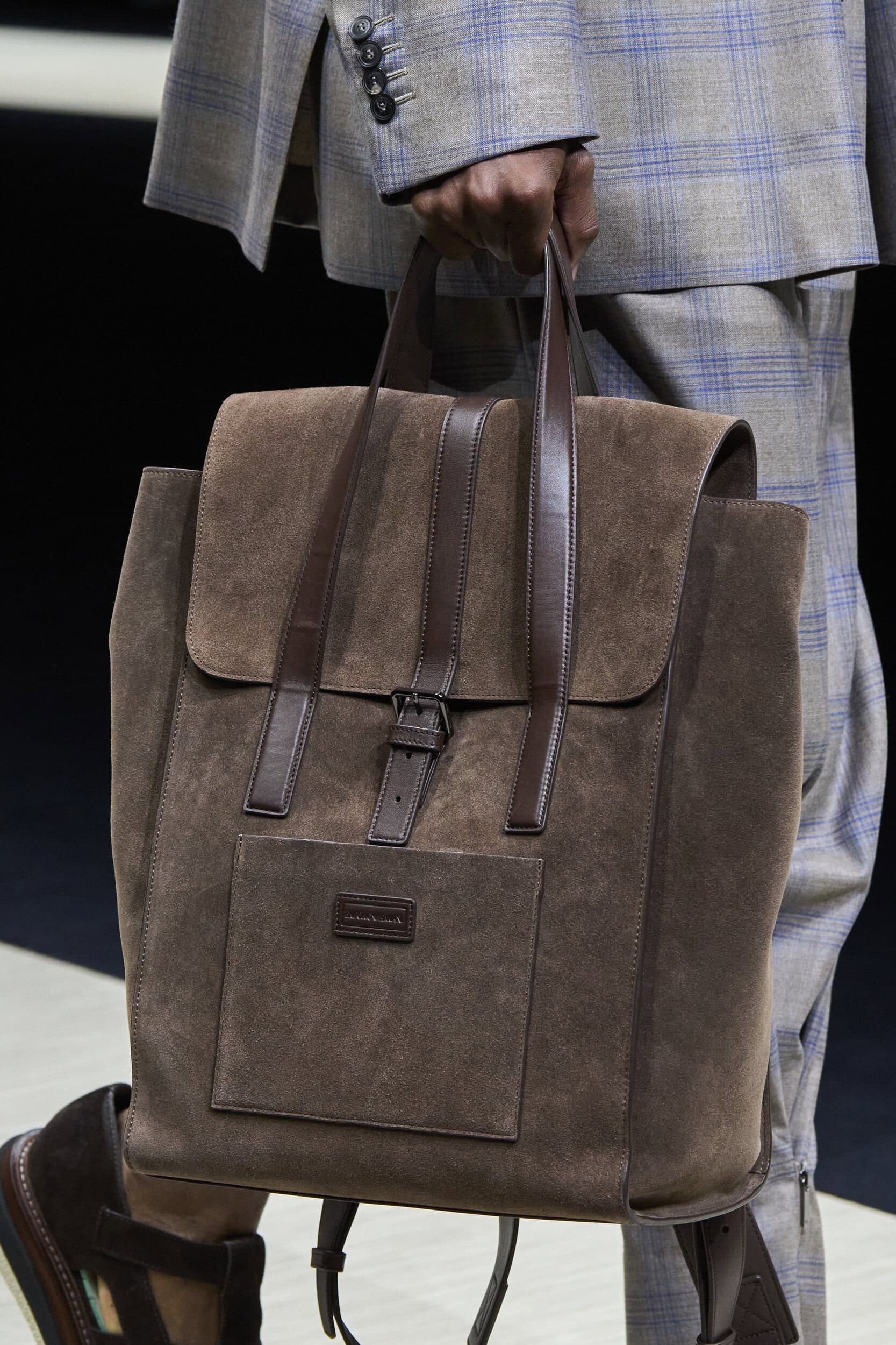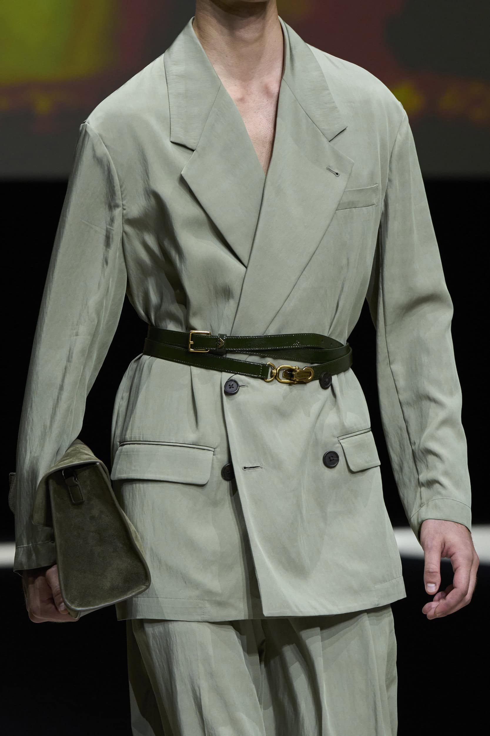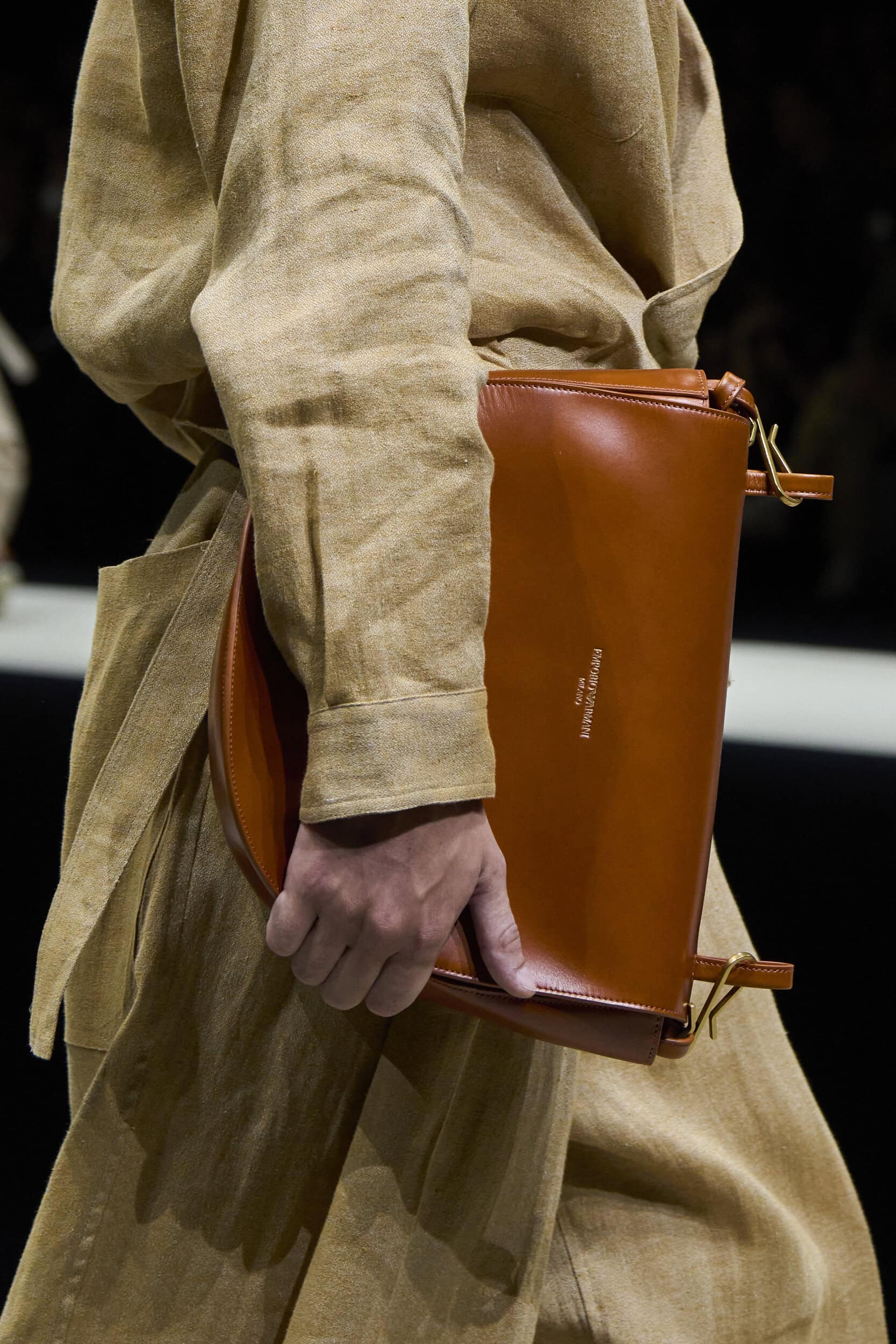 Get an exclusive look at Emporio Armani‘s innovative Spring 2025 men’s fashion show accessories featuring footwear, handbags, eyewear, and more from the runways of Milan Men’s Fashion Week, held in June 2024.