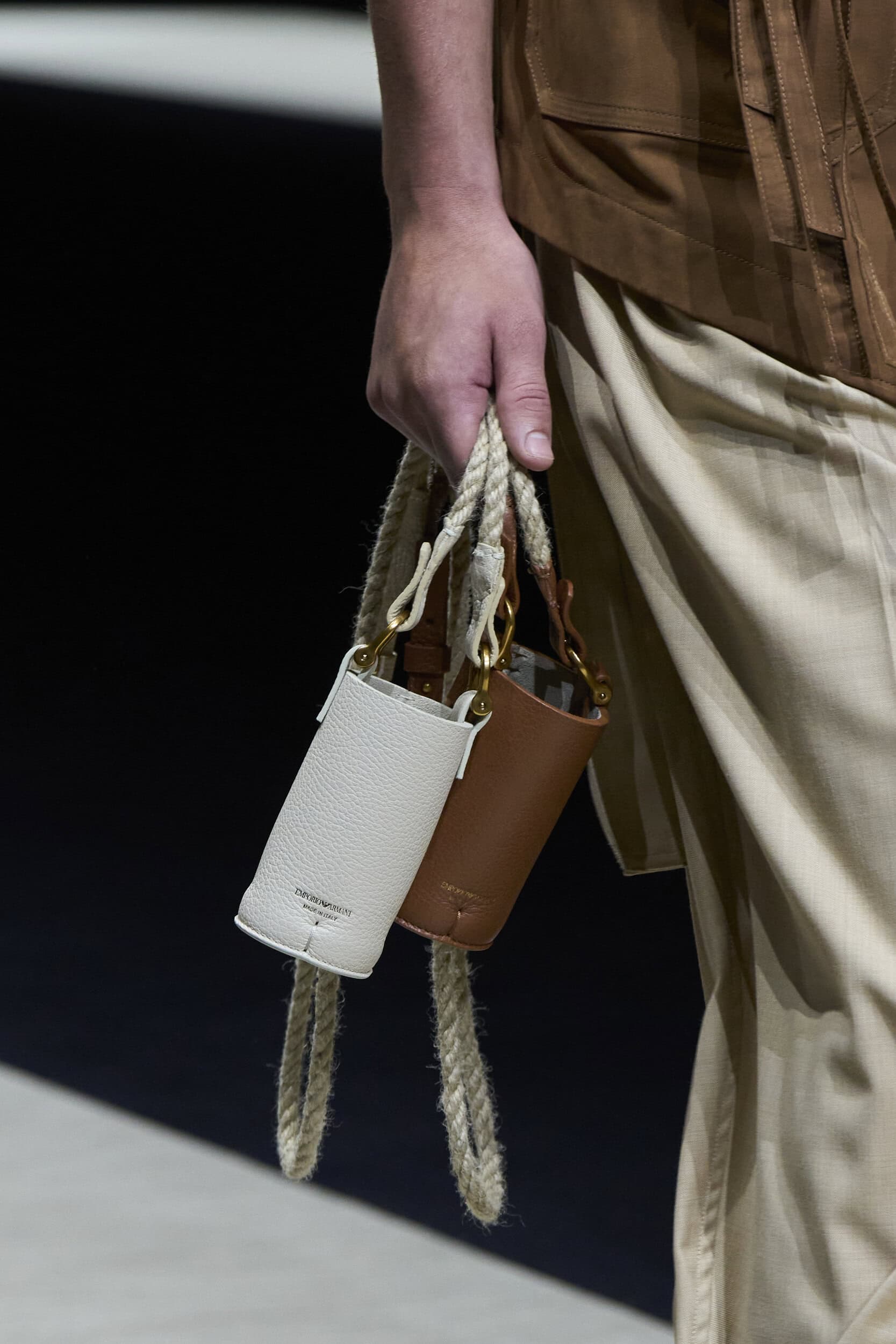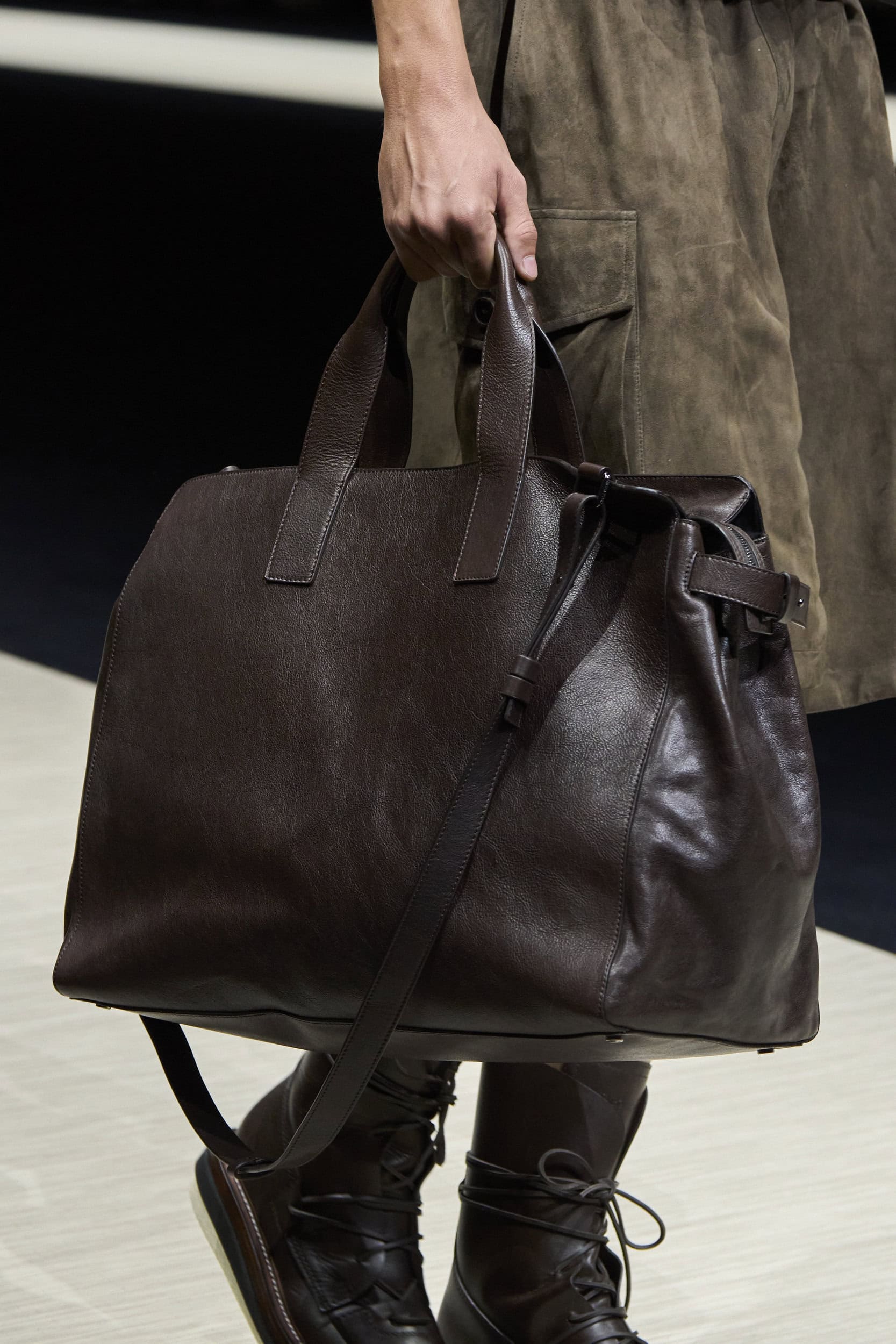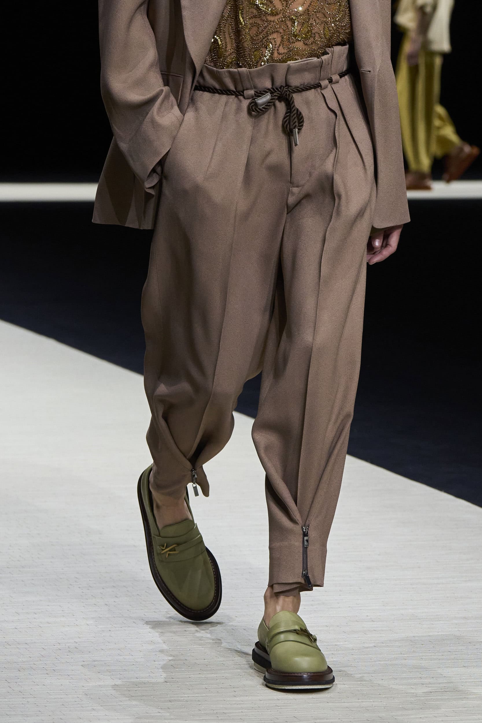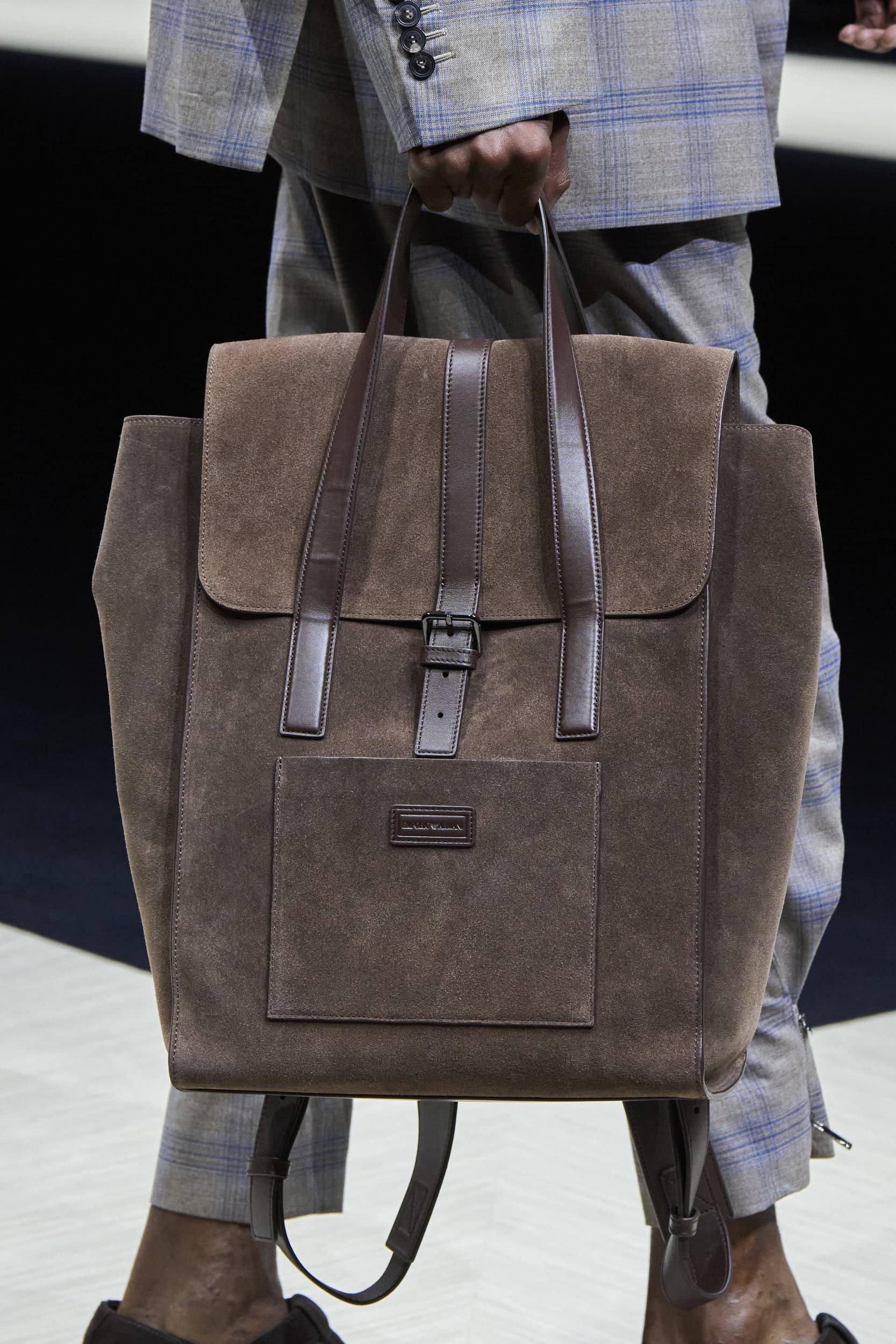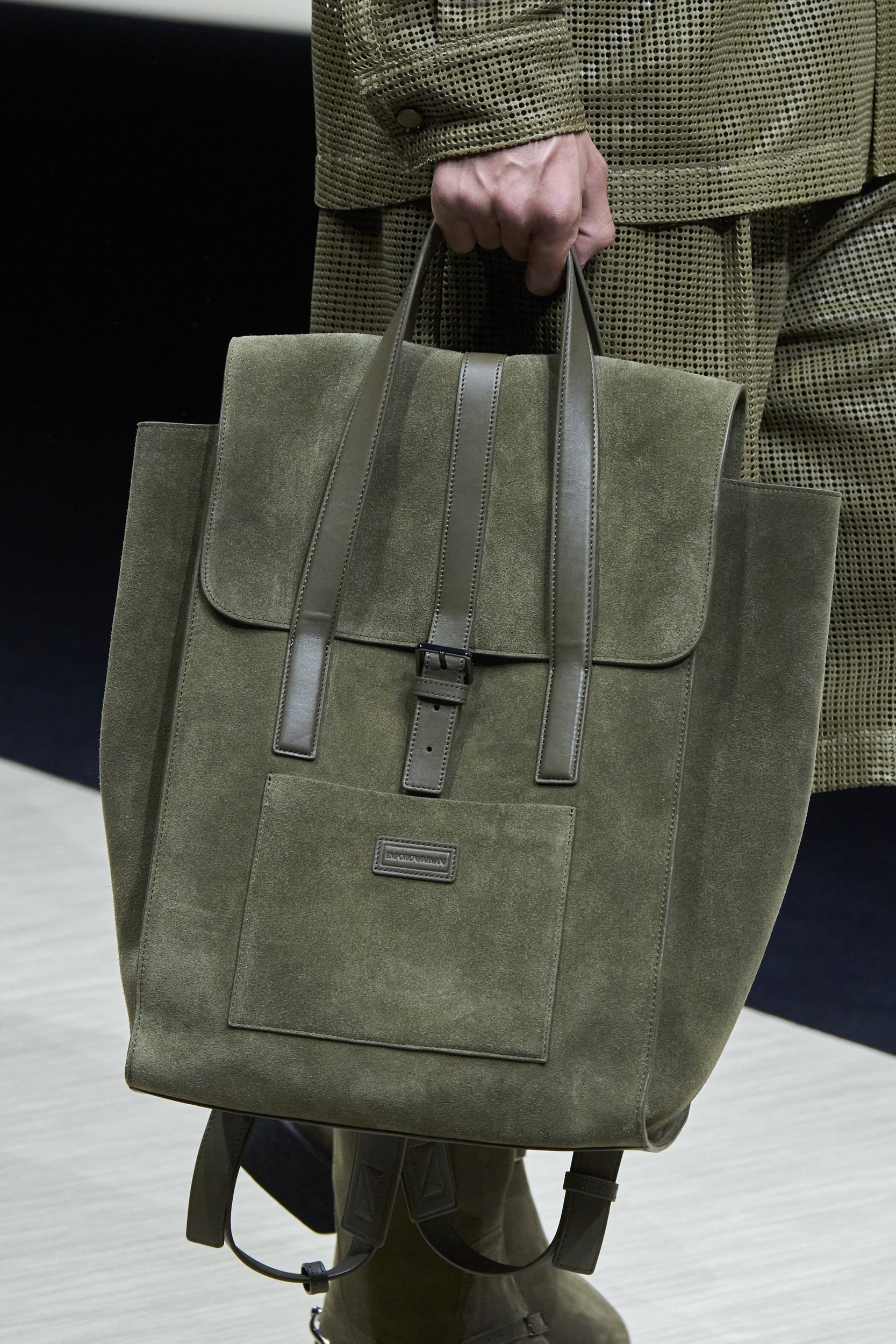 Get an exclusive look at Emporio Armani‘s innovative Spring 2025 men’s fashion show accessories featuring footwear, handbags, eyewear, and more from the runways of Milan Men’s Fashion Week, held in June 2024.