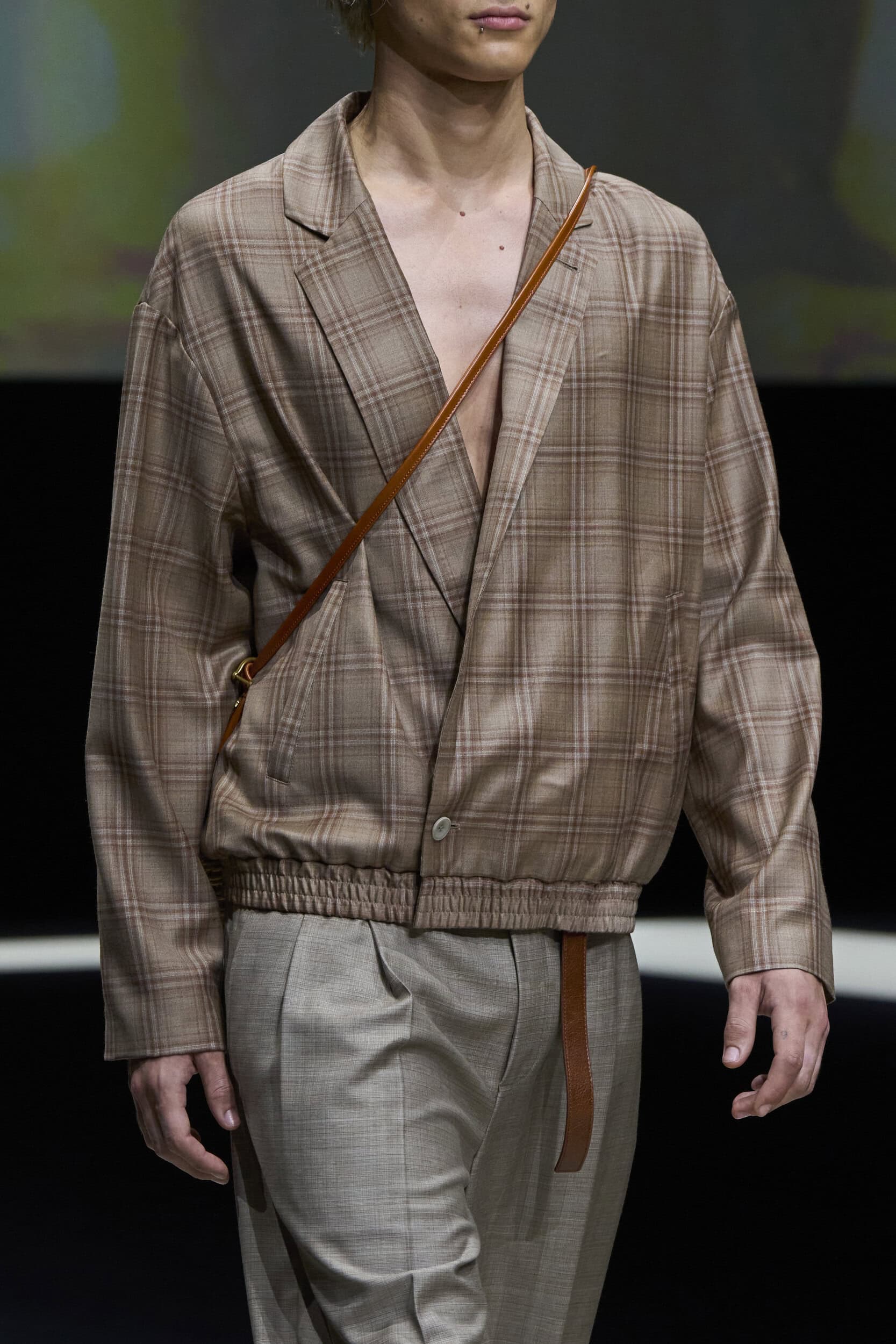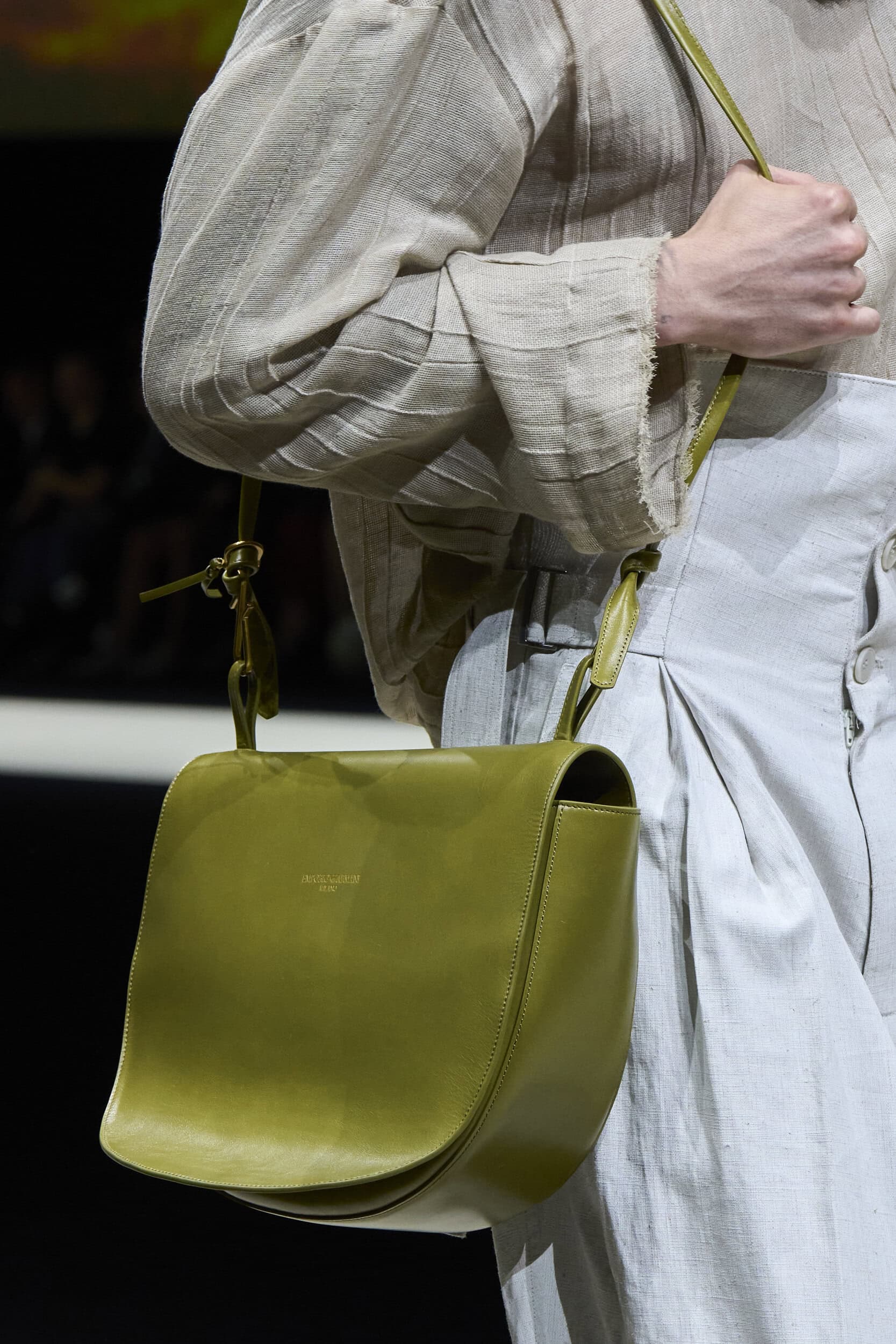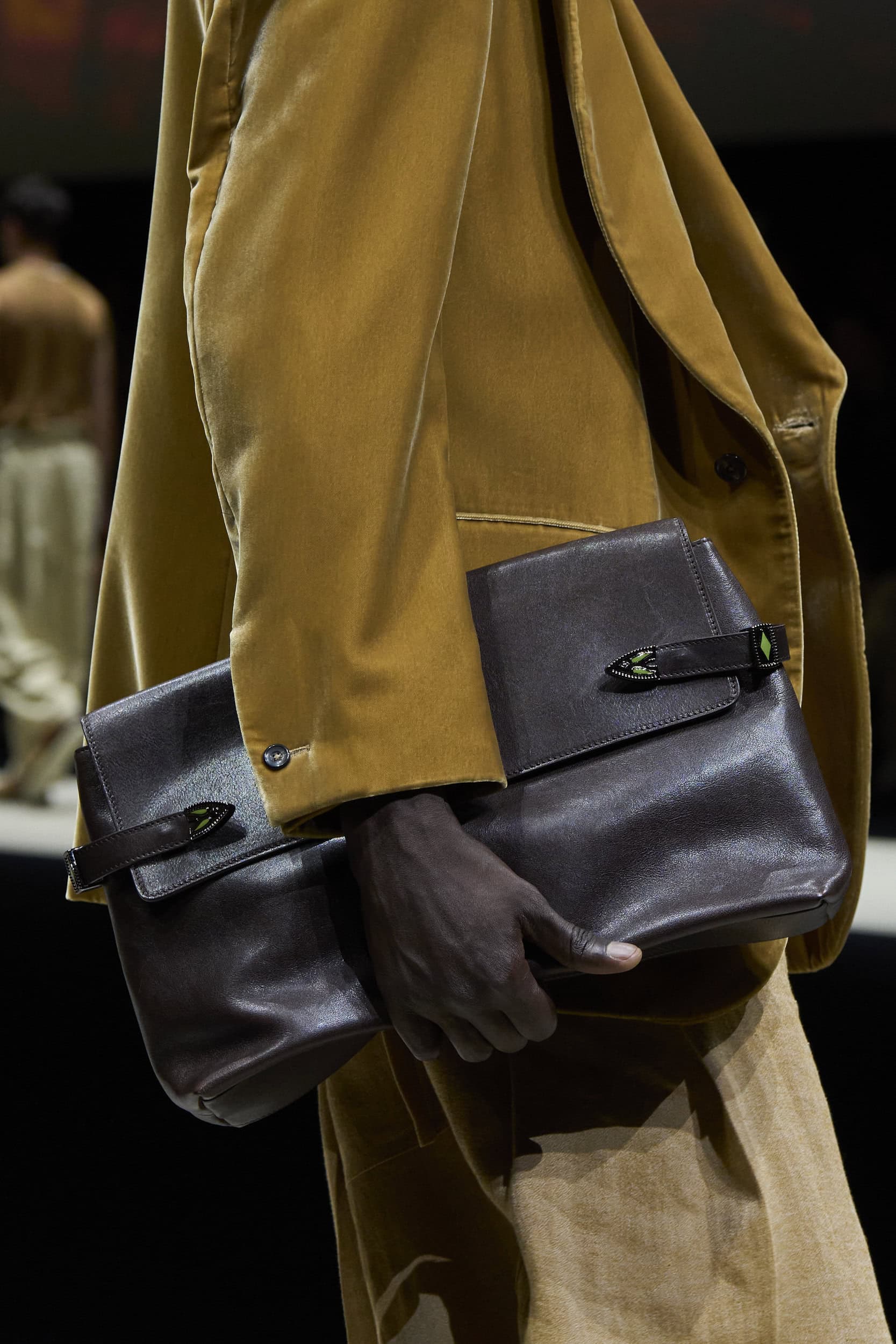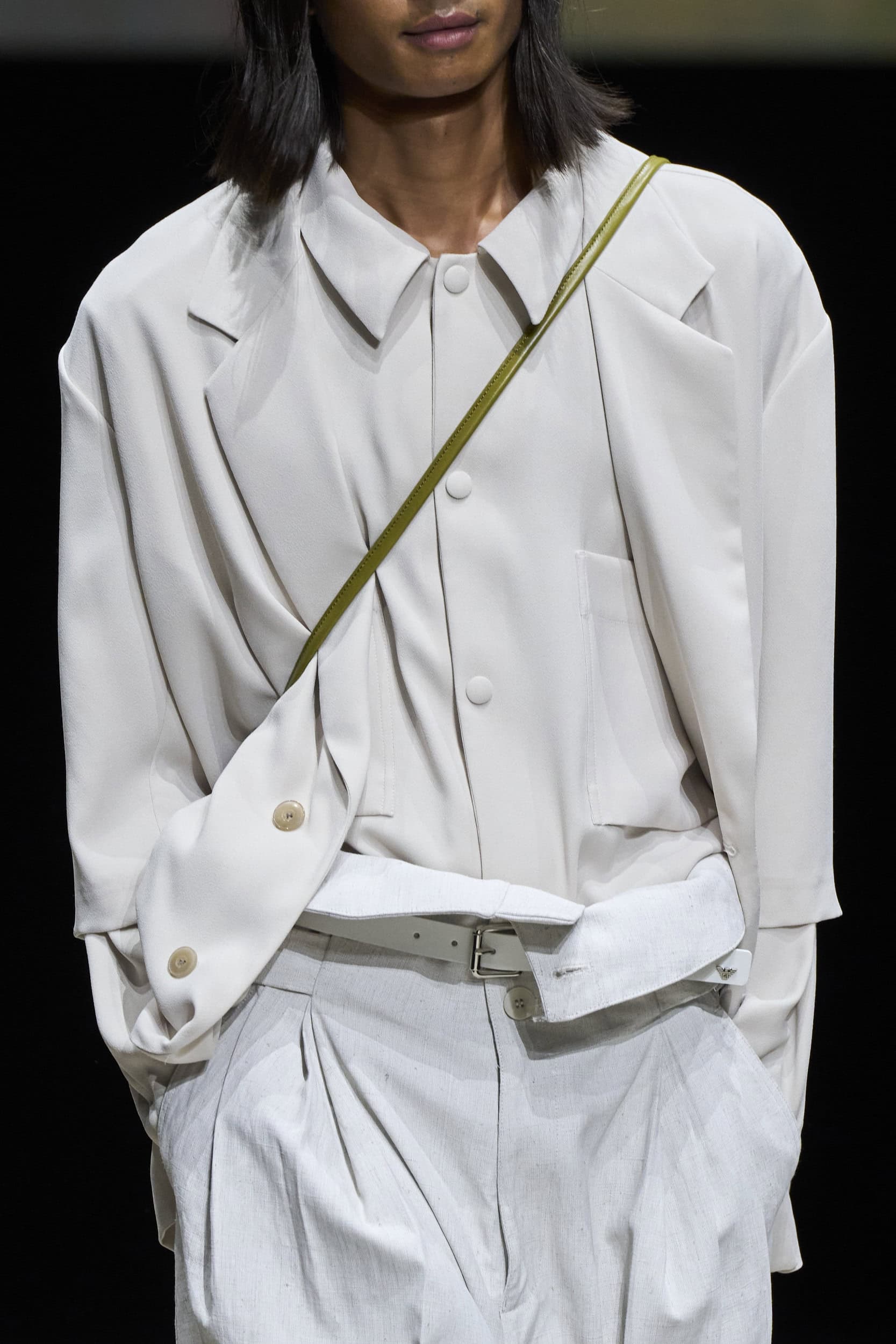 Get an exclusive look at Emporio Armani‘s innovative Spring 2025 men’s fashion show accessories featuring footwear, handbags, eyewear, and more from the runways of Milan Men’s Fashion Week, held in June 2024.