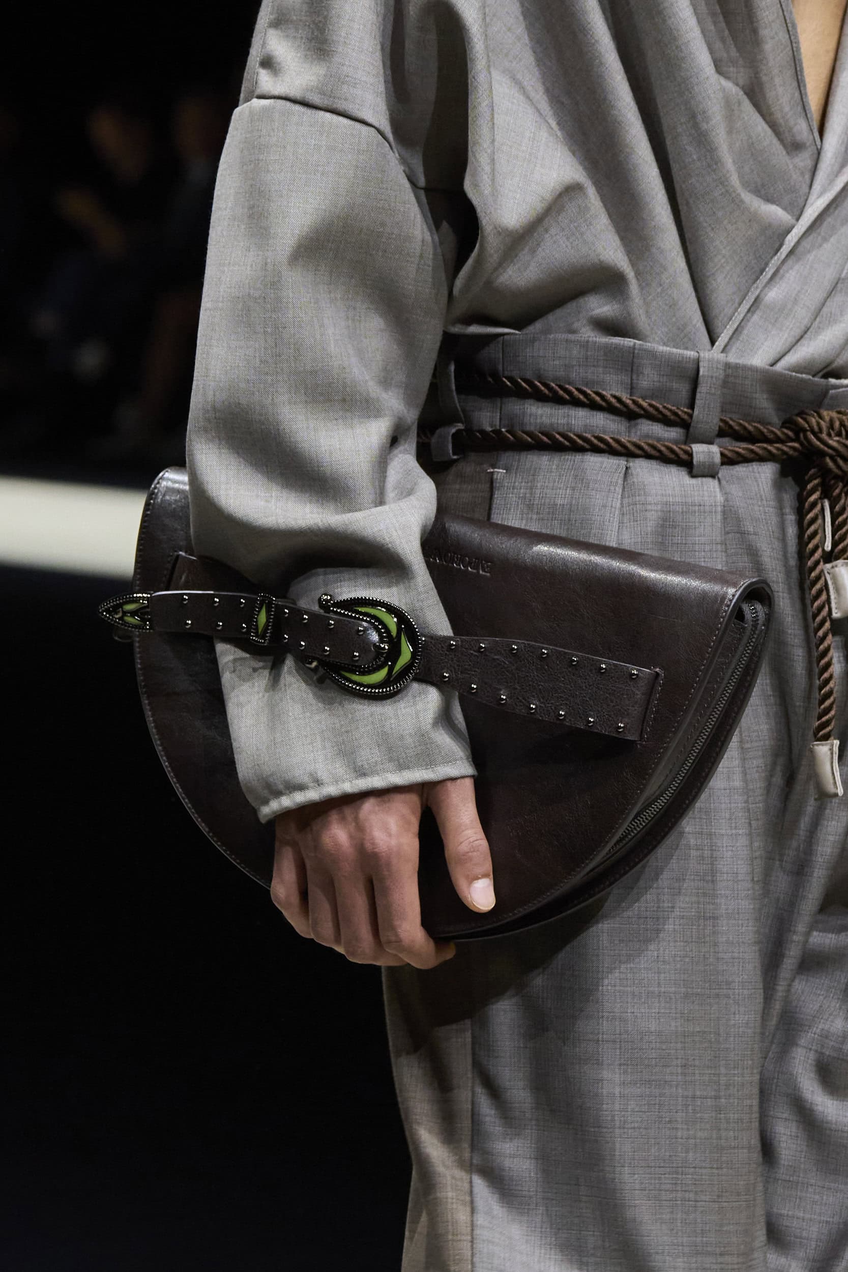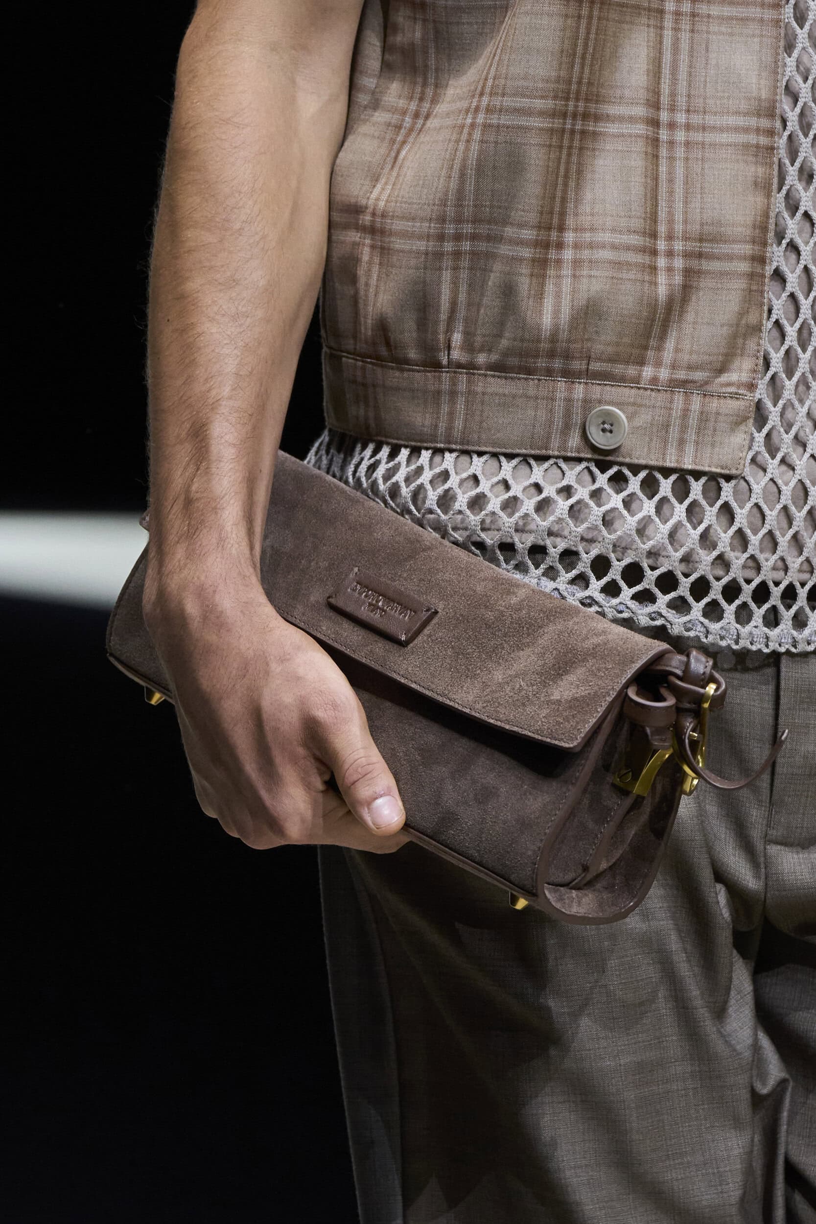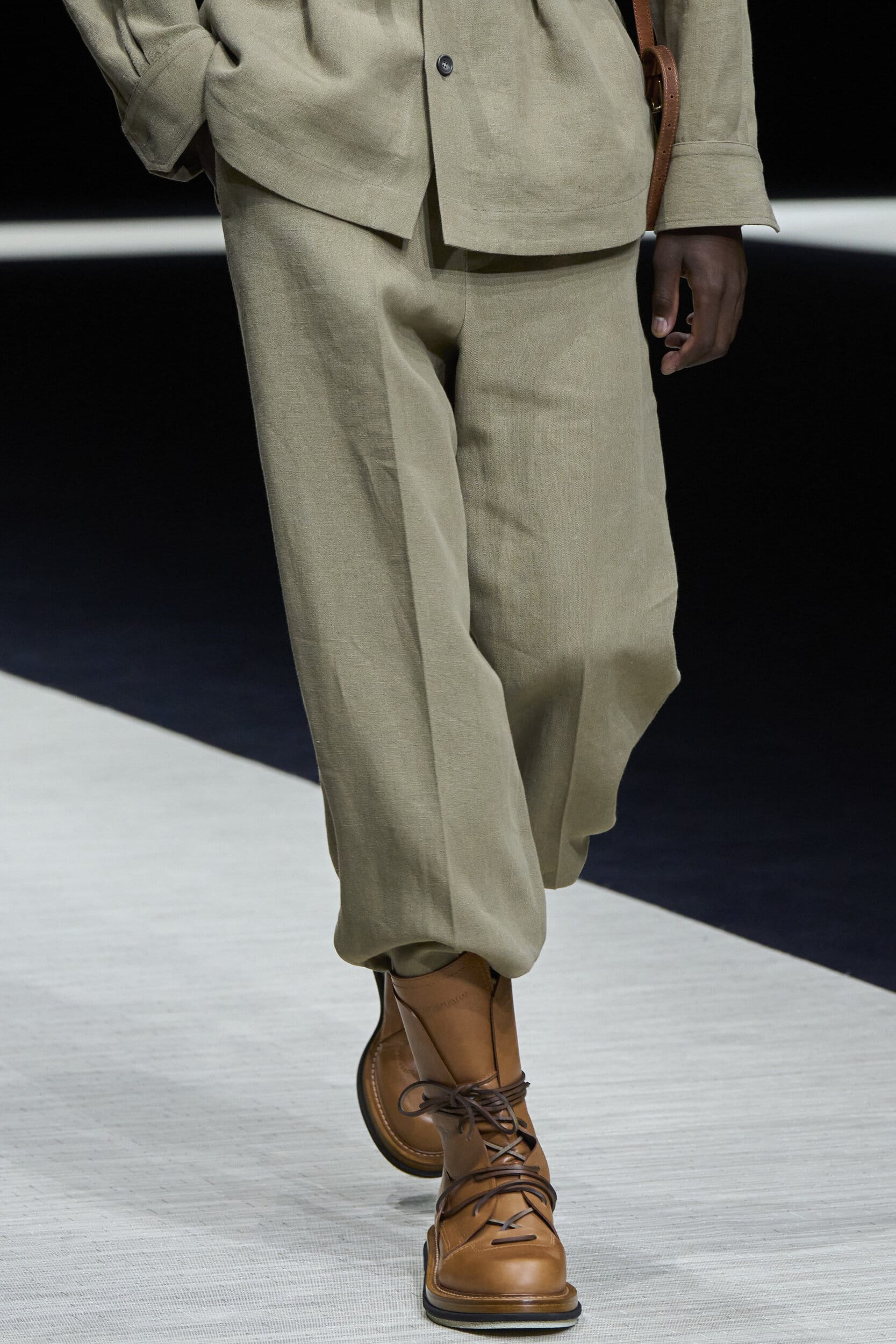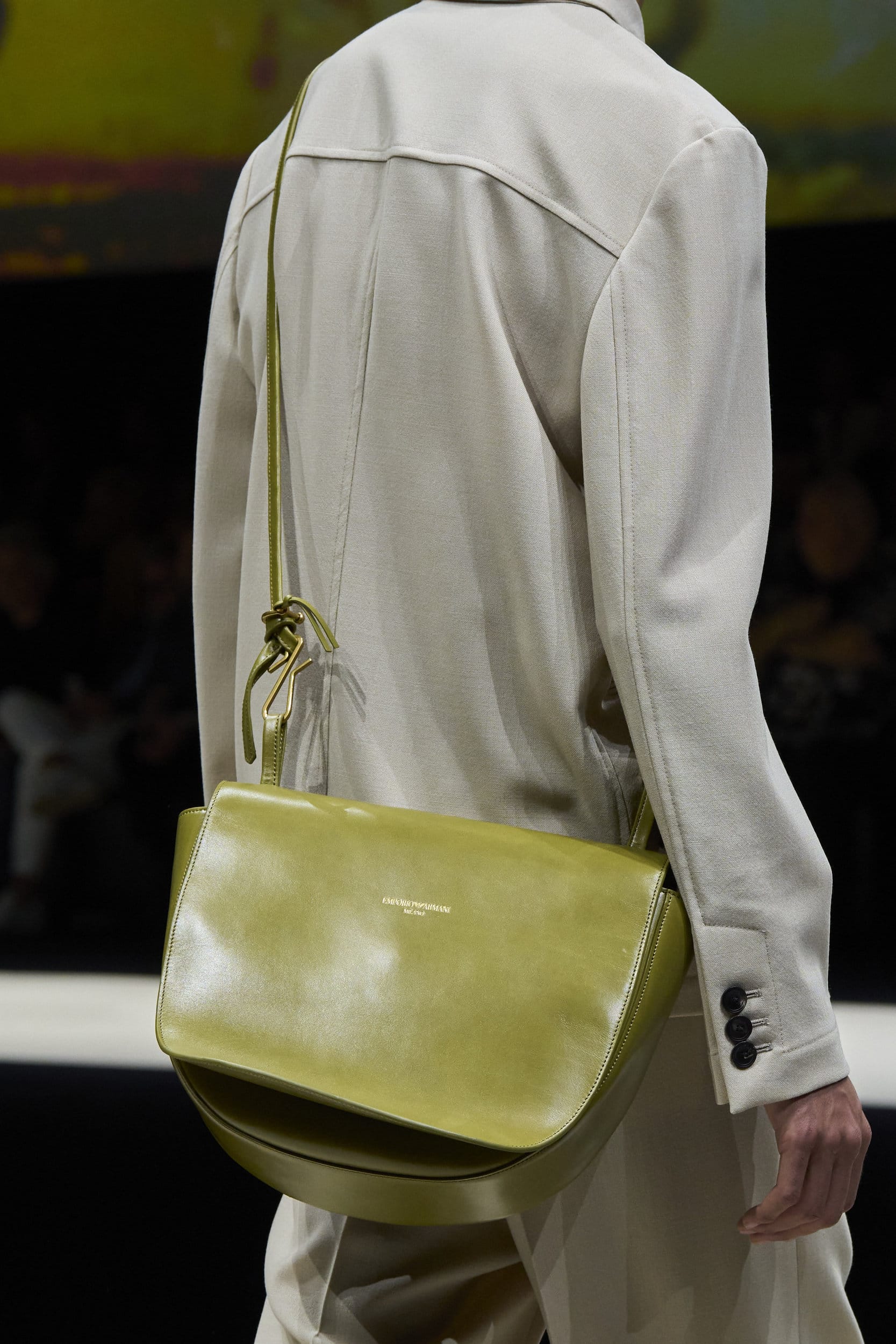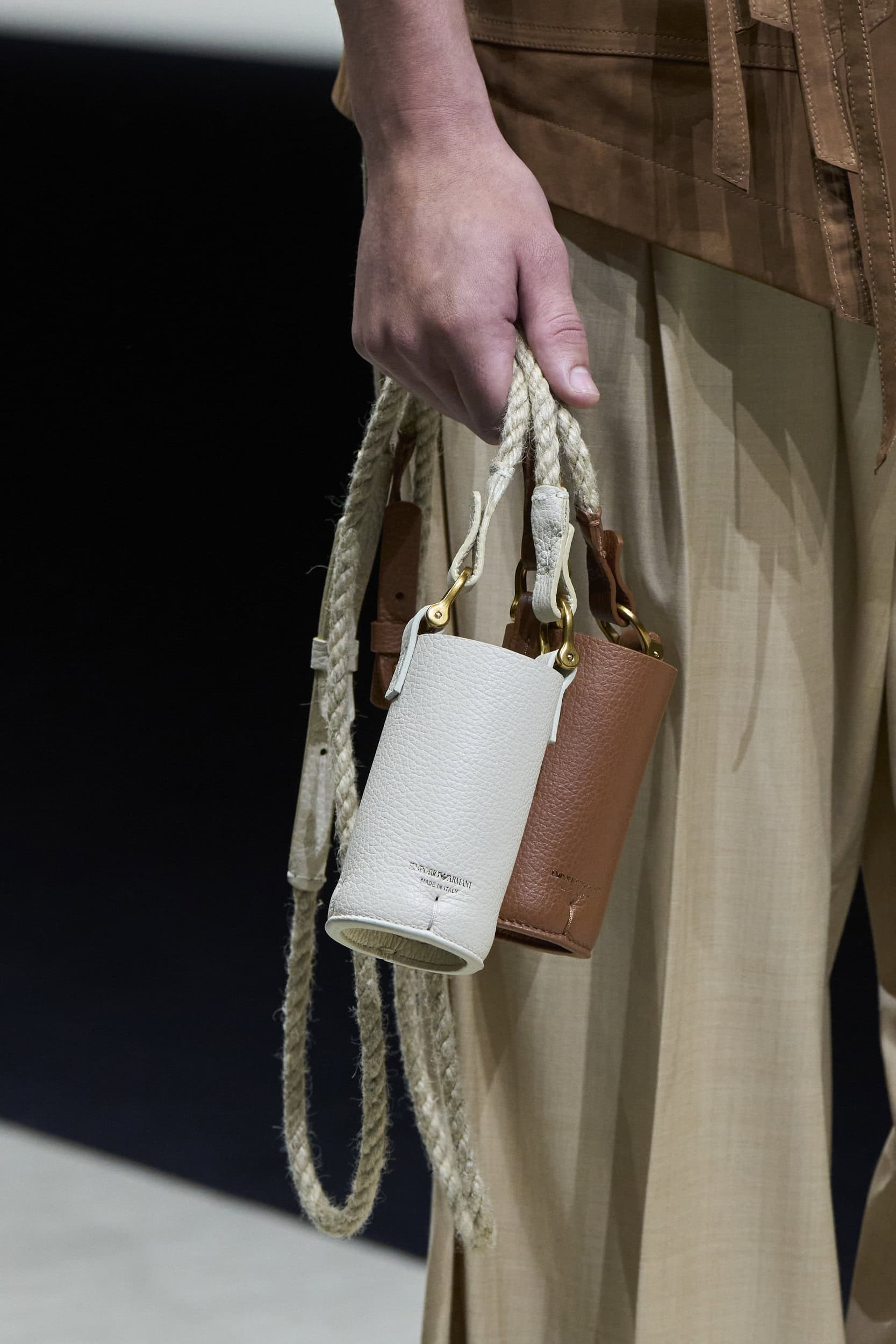 Get an exclusive look at Emporio Armani‘s innovative Spring 2025 men’s fashion show accessories featuring footwear, handbags, eyewear, and more from the runways of Milan Men’s Fashion Week, held in June 2024.