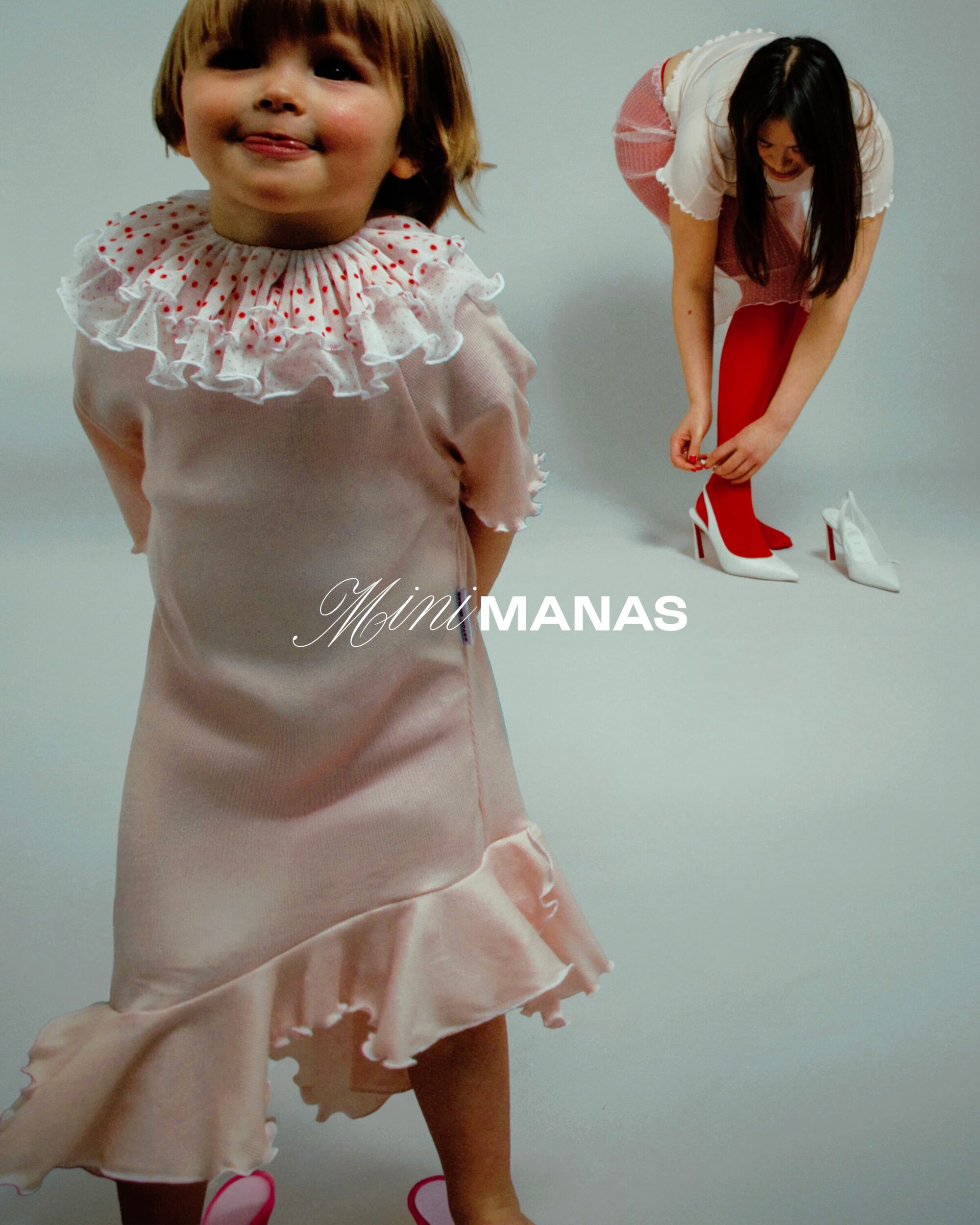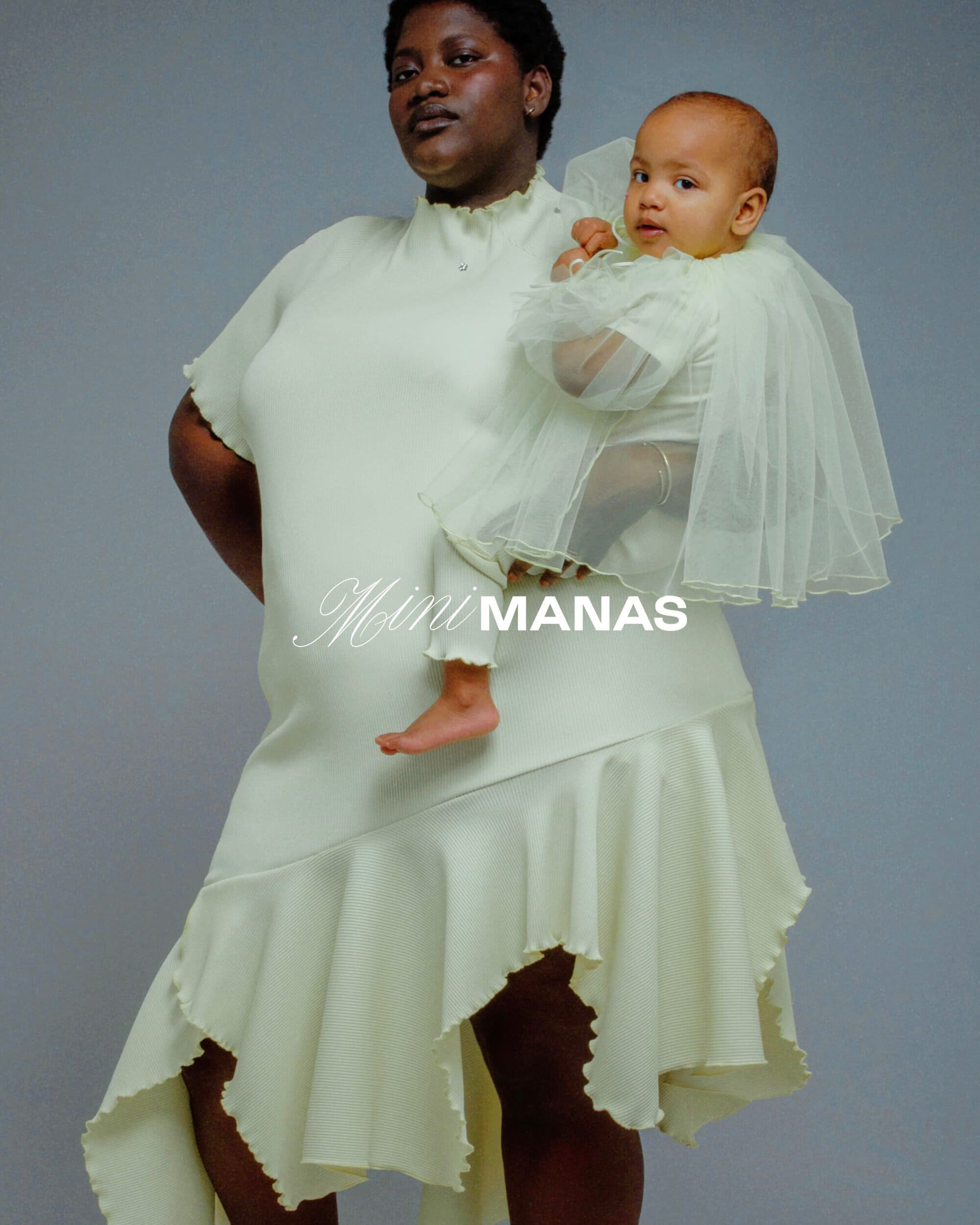 Founded by Ester Manas and Balthazar Delepierre, the label has built recognition for its body-conscious silhouettes, expressive proportions, and inclusive approach to design. Mini Manas adapts those signatures for early childhood, translating tulle, ruffles, smocking, and sculptural volumes into garments focused on comfort, movement, and practicality without losing the brand’s distinct visual identity.
