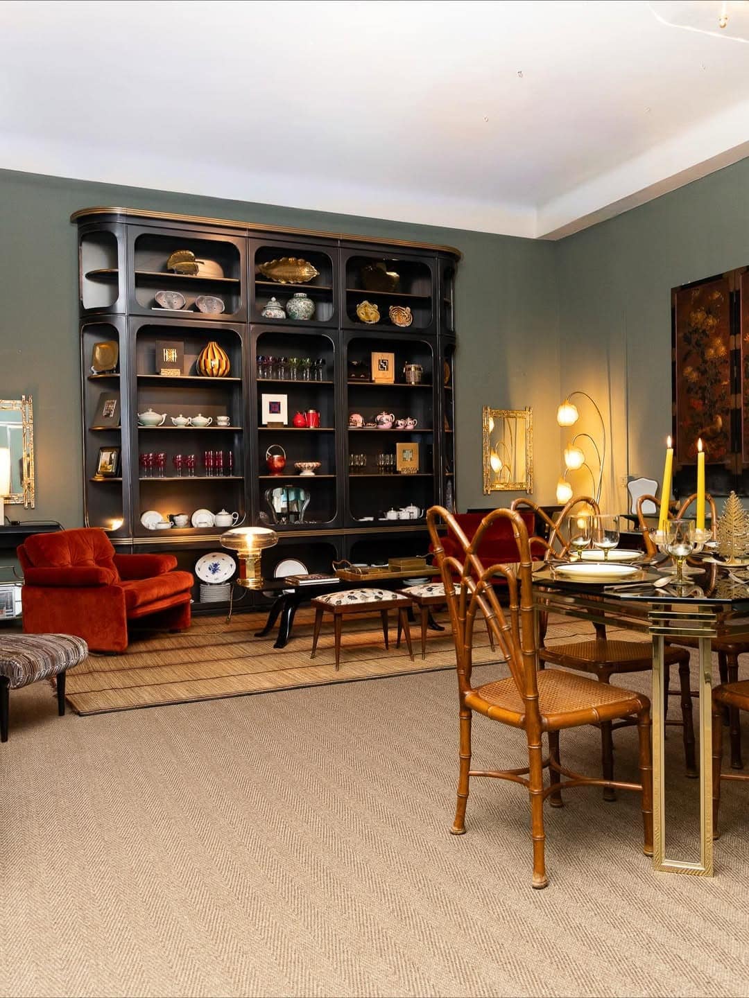 The Milan edit includes highlights like 1970s Coronado armchairs by Tobia and Afra Scarpa, a Gio Ponti chandelier from the 1940s-50s, and a Pietro Chiesa coffee table for Fontana Arte. A lacquered Japanese copper folding screen from the 19th century, unbranded yet museum-worthy, embodies the project’s ethos: value lies in quality and story, not just signature.