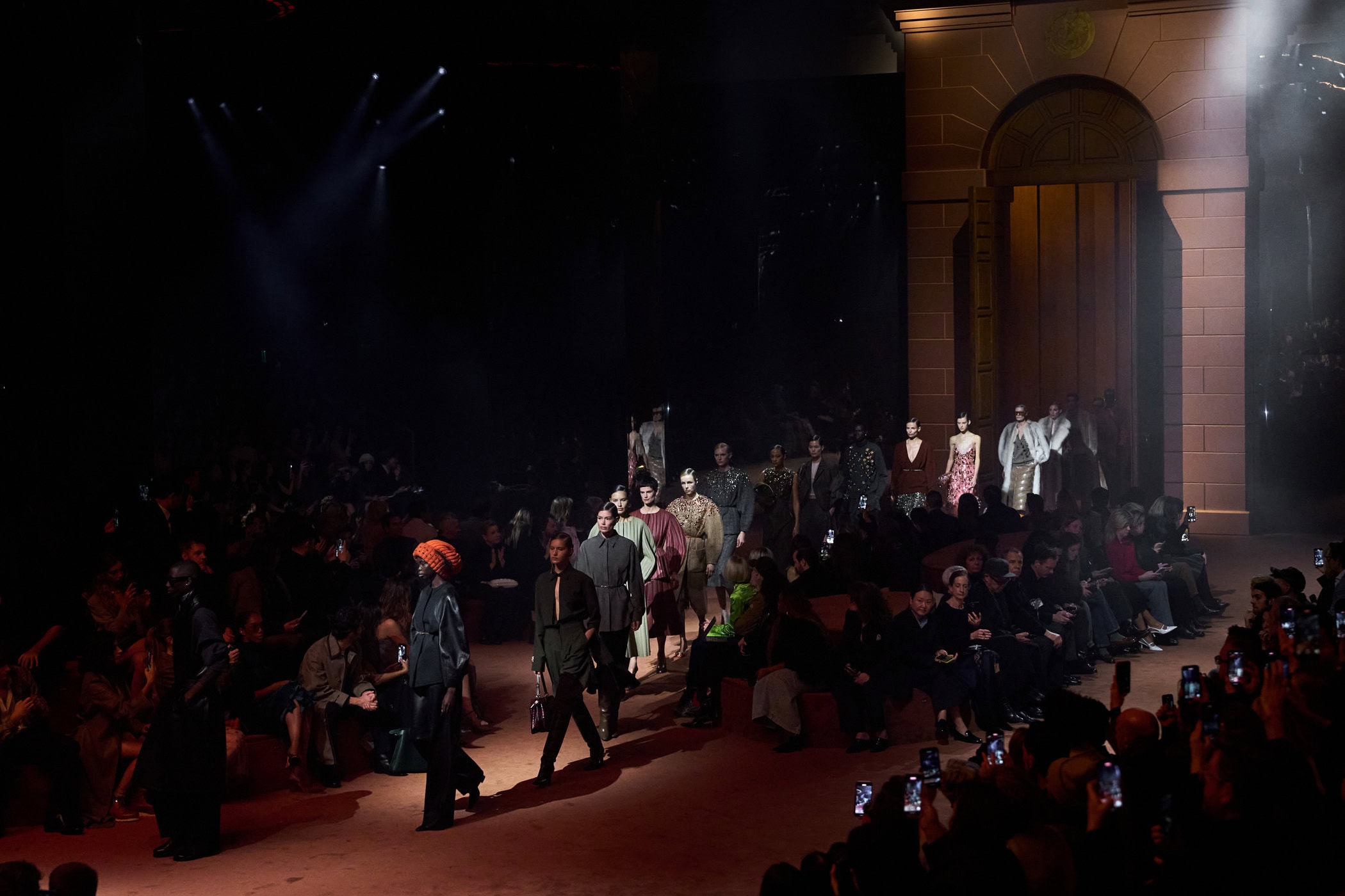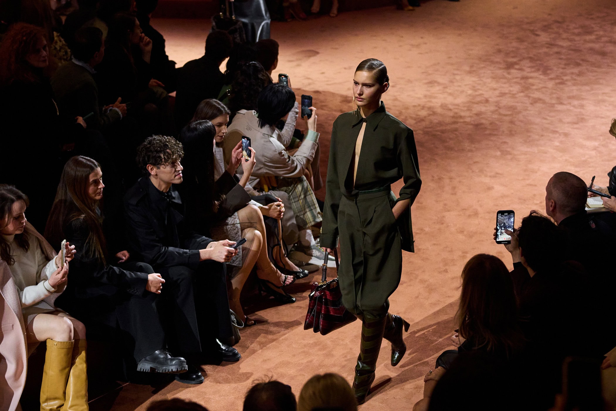 Discover the immersive atmosphere and staging of Fendi‘s Fall 2025 fashion show at Milan Fashion Week.