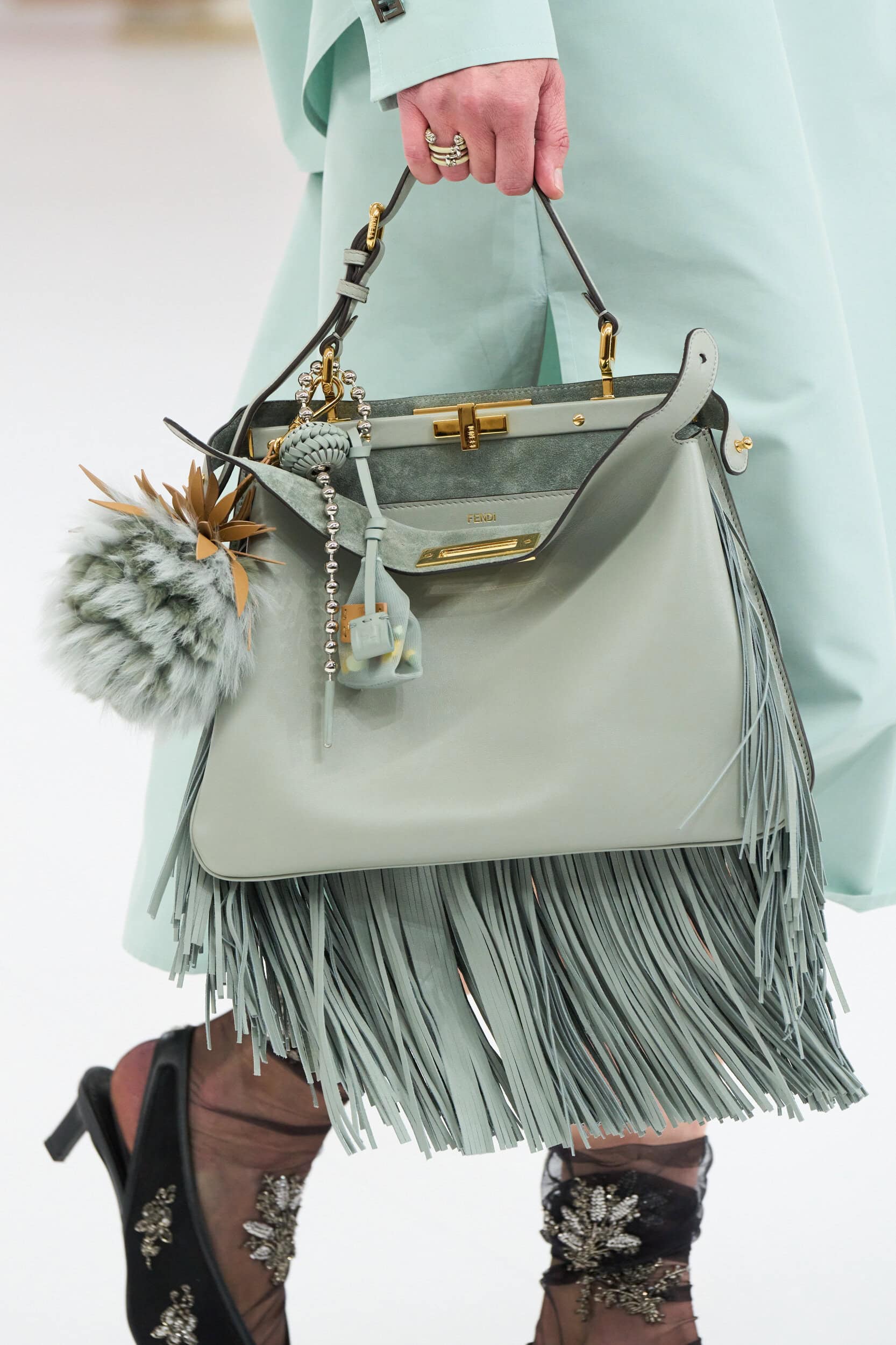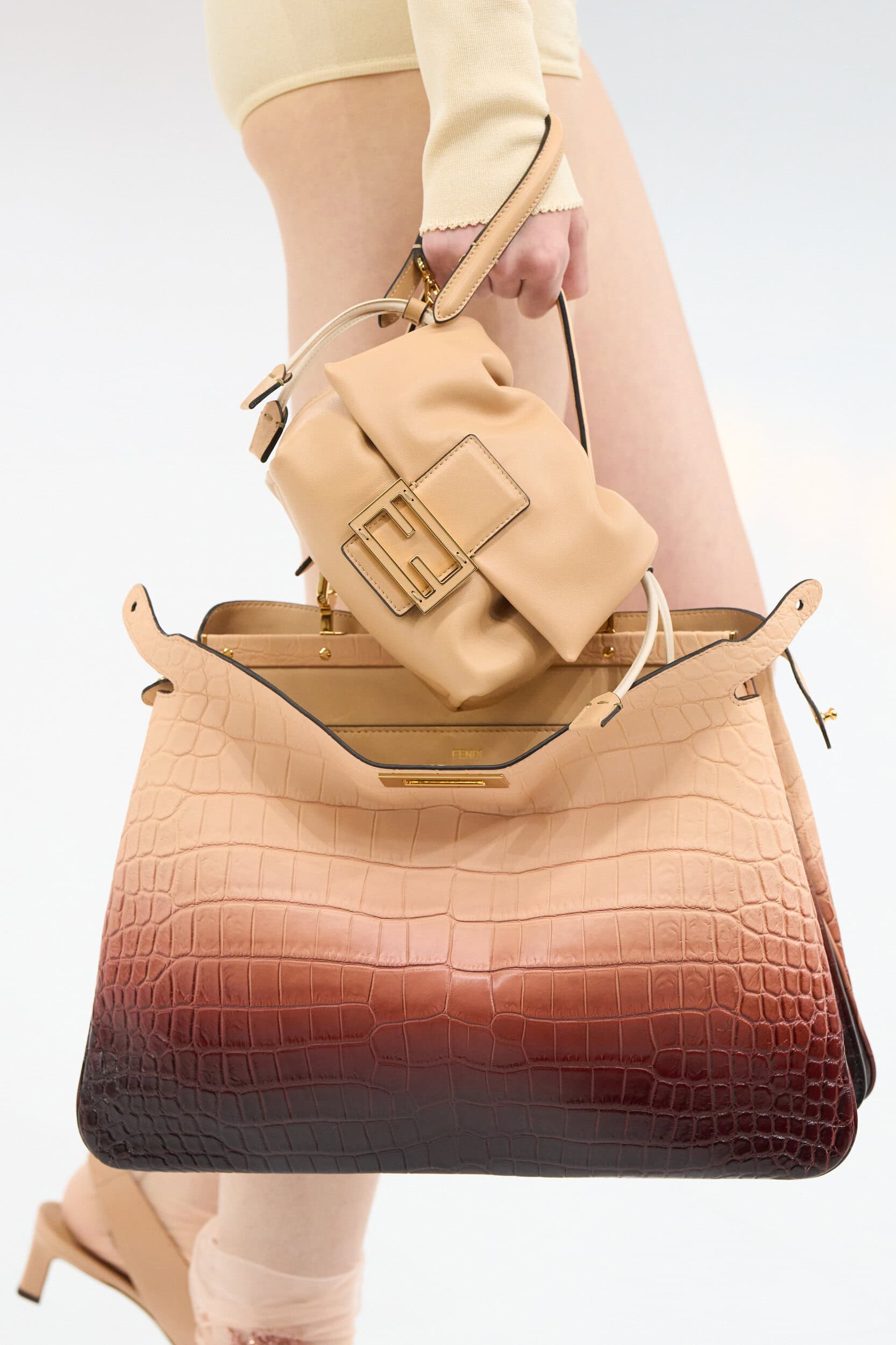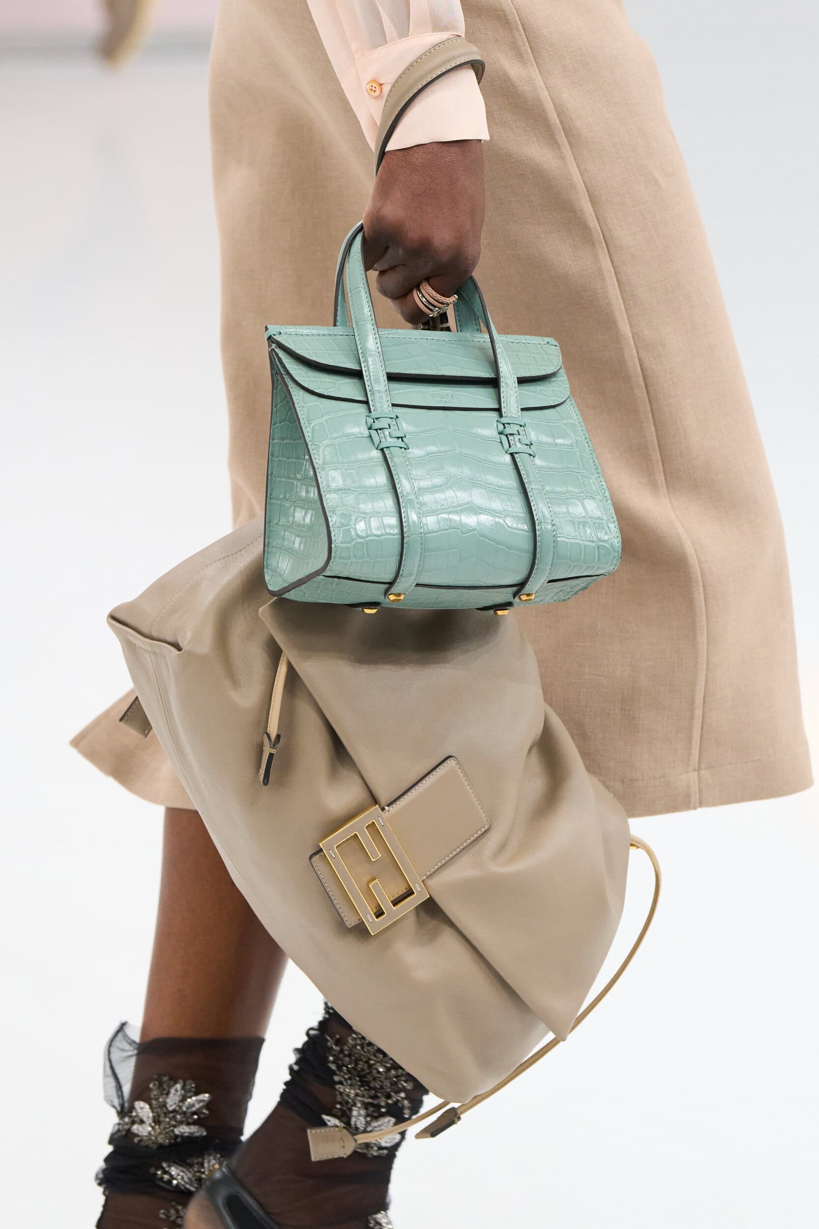 Get an exclusive look at Fendi‘s innovative Spring 2025 fashion show accessories featuring footwear, handbags, eyewear, and more from the runways of Milan Fashion Week.