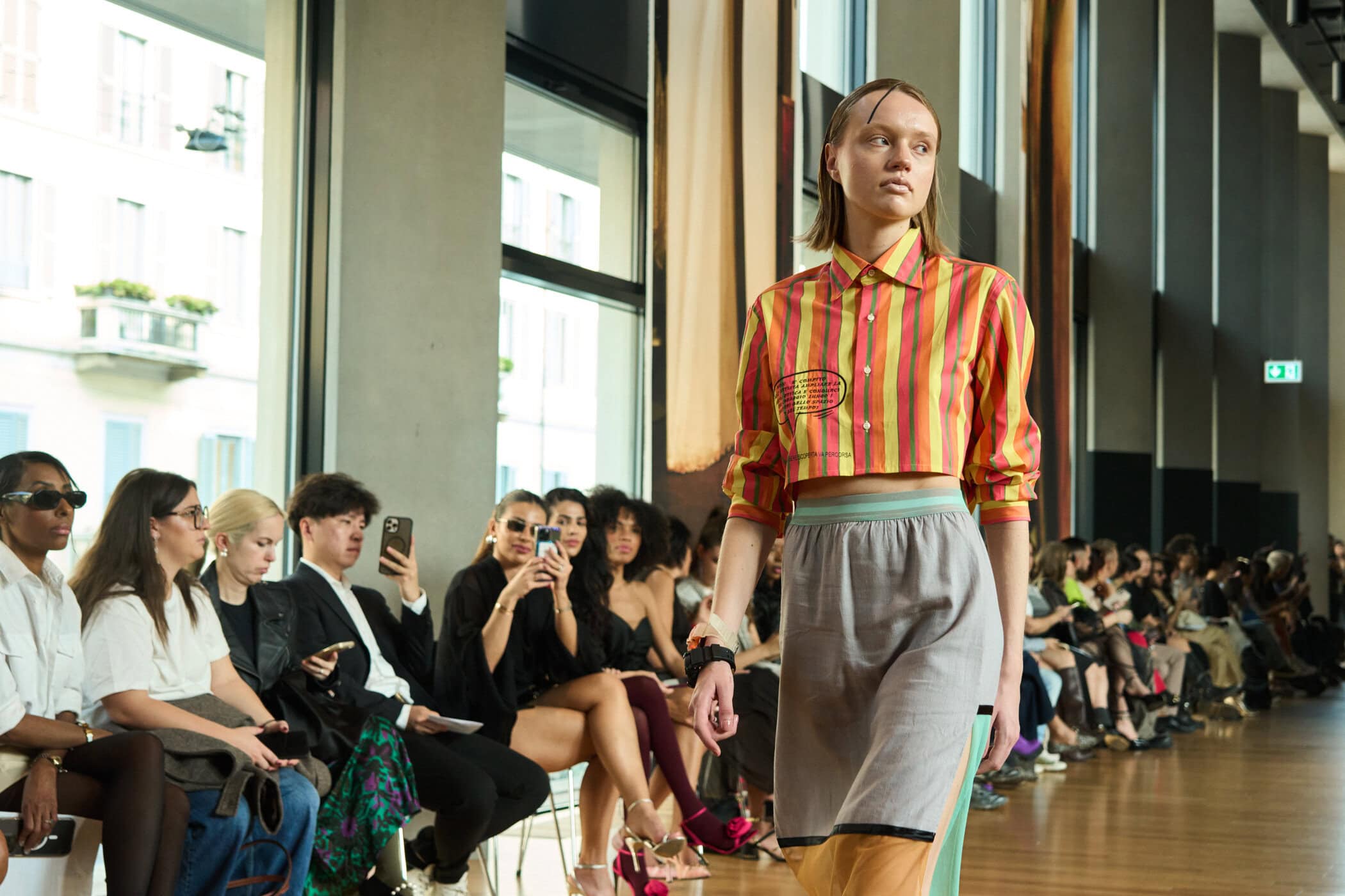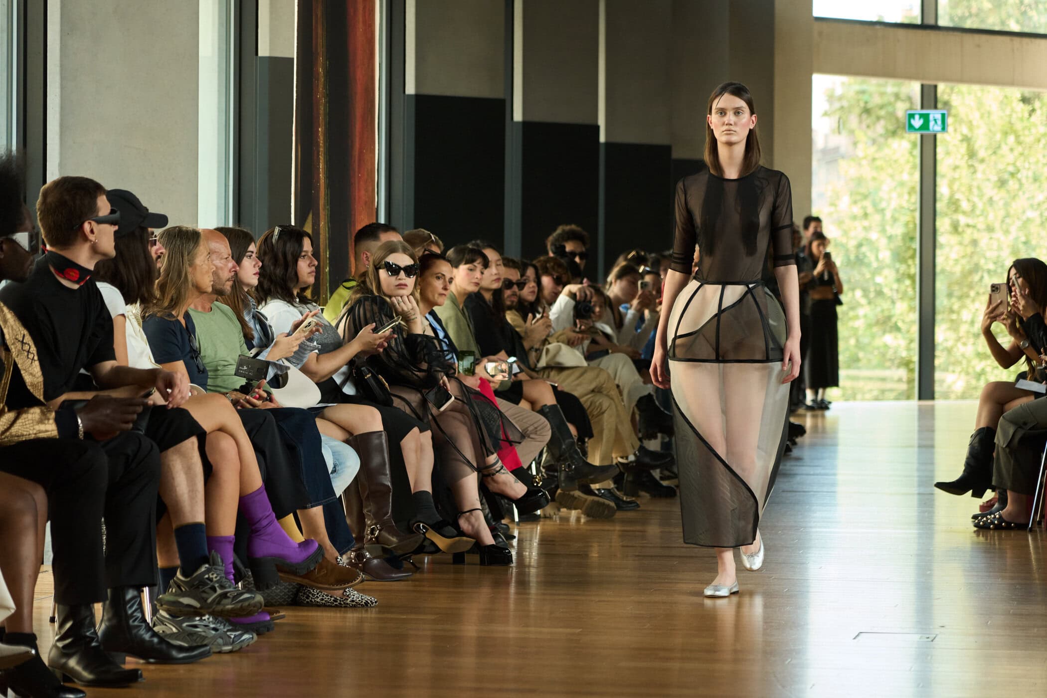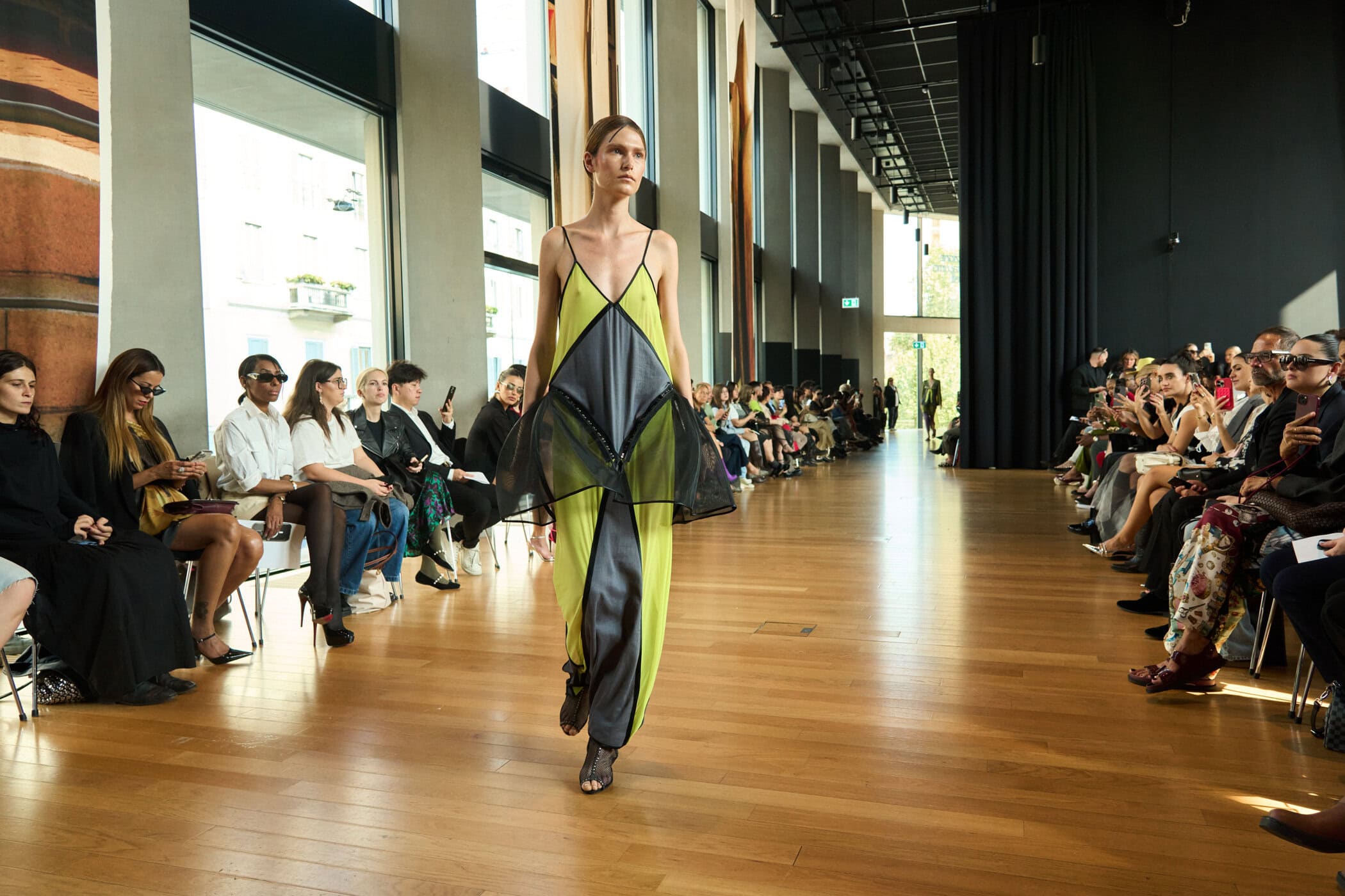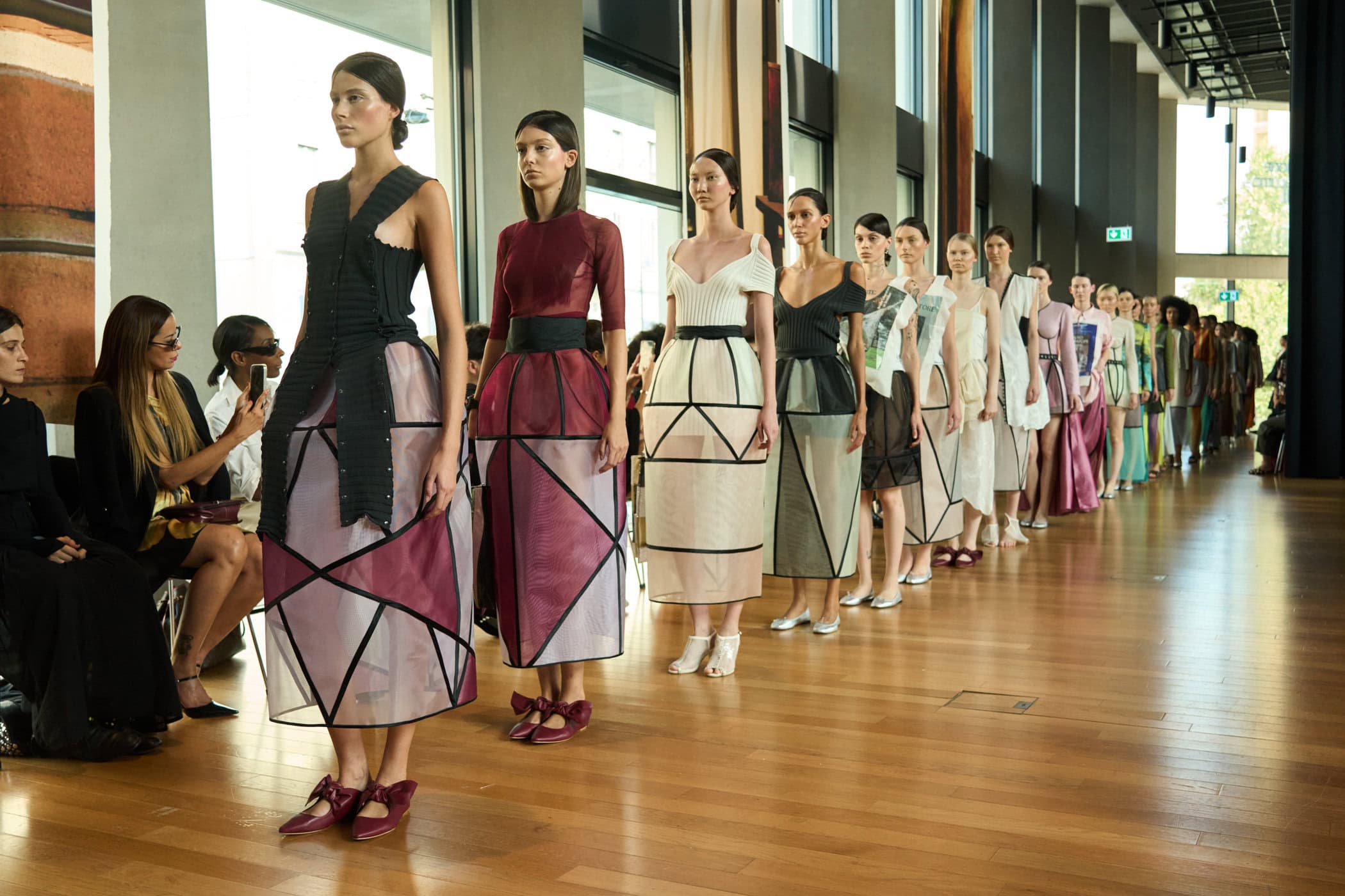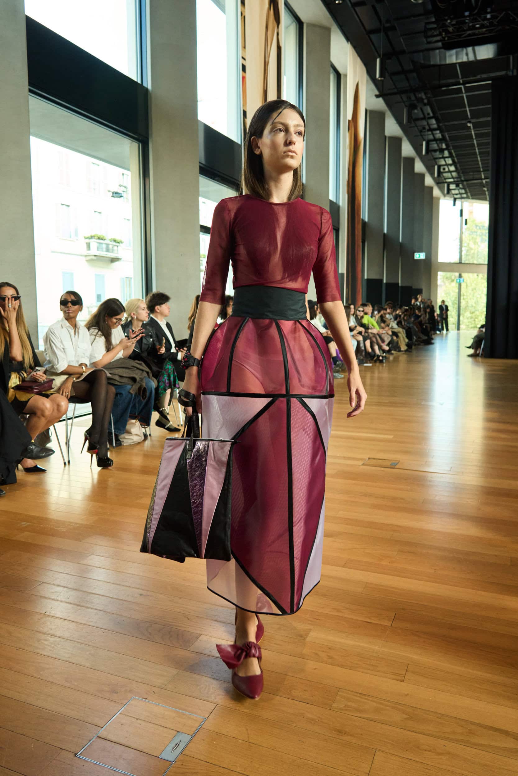 Discover the immersive atmosphere and striking staging of Francesca Liberatore‘s Spring 2025 fashion show at Milan Fashion Week, creating an unforgettable mood this season.