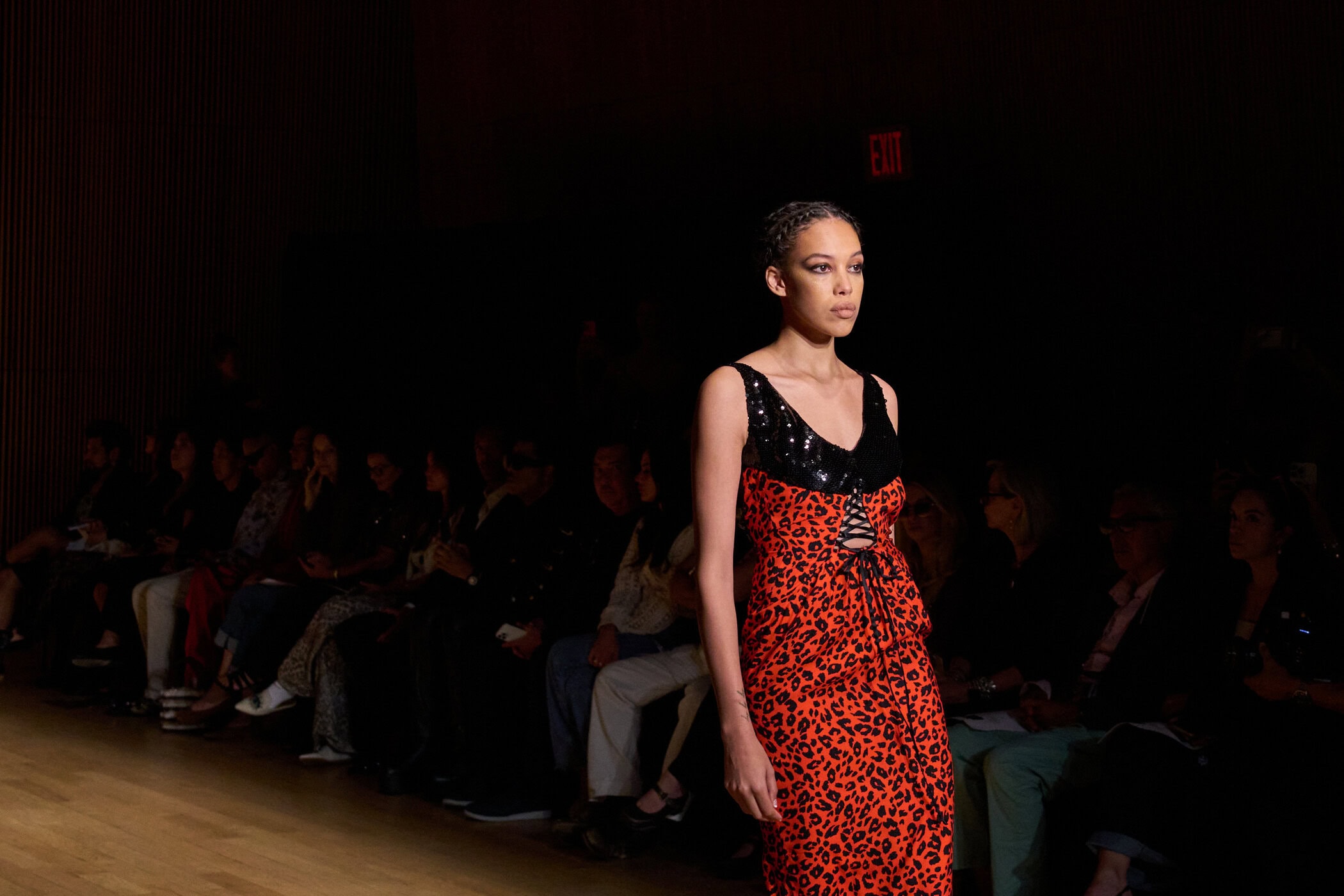 Discover the immersive atmosphere and striking staging of Frederick Anderson‘s Spring 2025 fashion show at New York Fashion Week, creating an unforgettable mood this season.