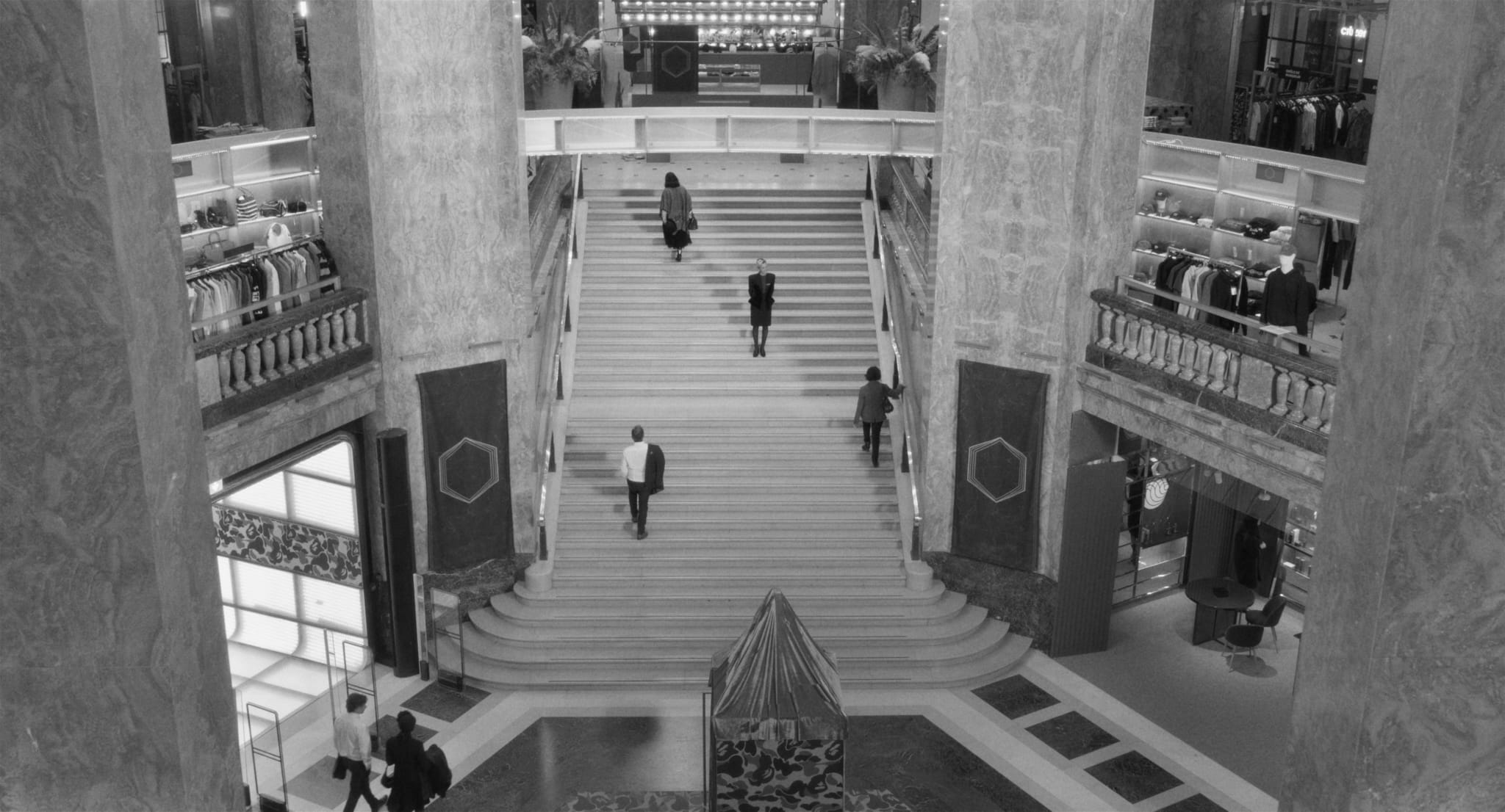 The 36-minute black-and-white film was written and directed by Natalie Musteata and Alexandre Singh. Much of the production was filmed overnight inside Galeries Lafayette Champs-Élysées and in the La Suite apartment at the retailer’s Boulevard Haussmann flagship in Paris.