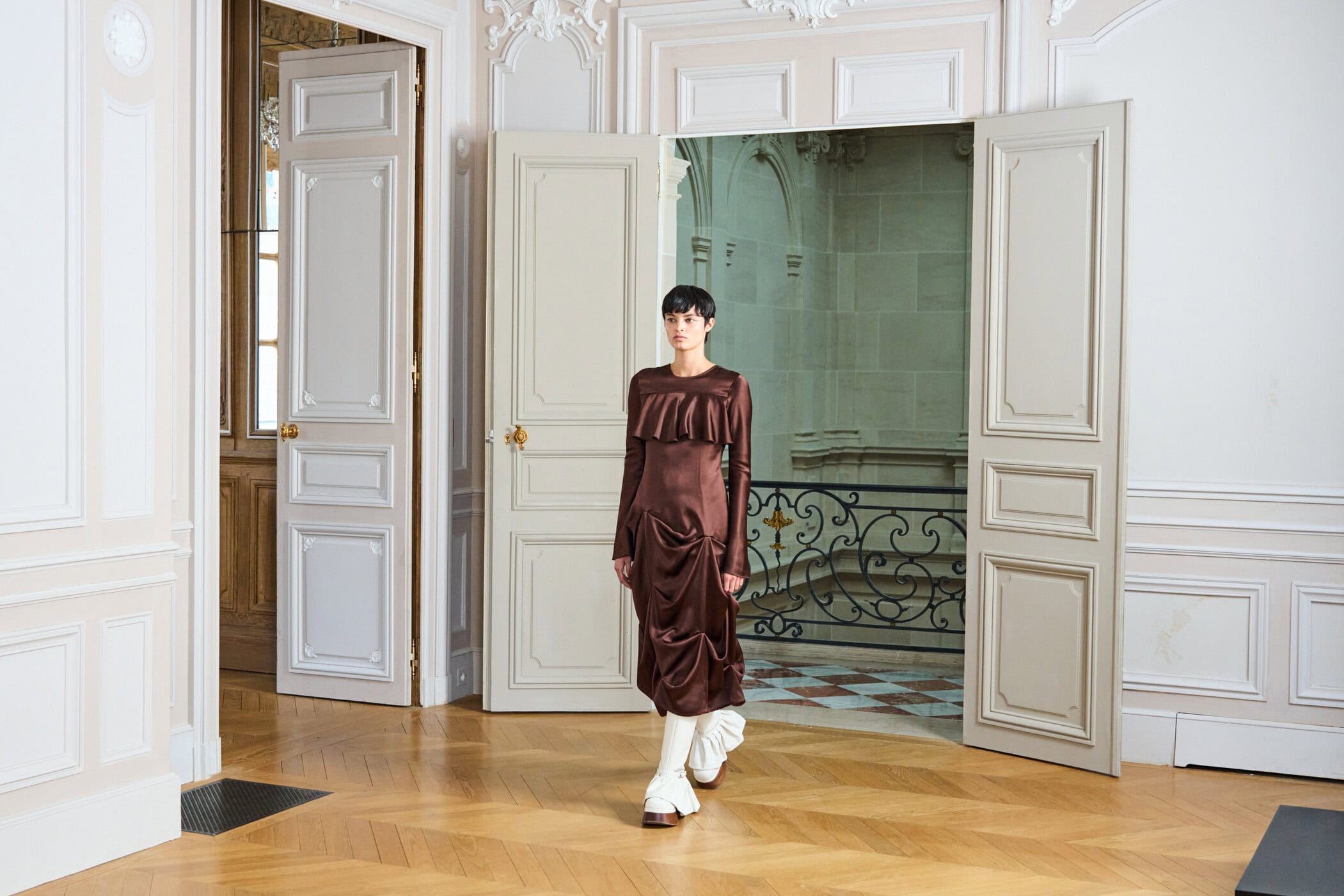 Discover the immersive atmosphere and staging of Ganni‘s Fall 2025 fashion show at Paris Fashion Week.