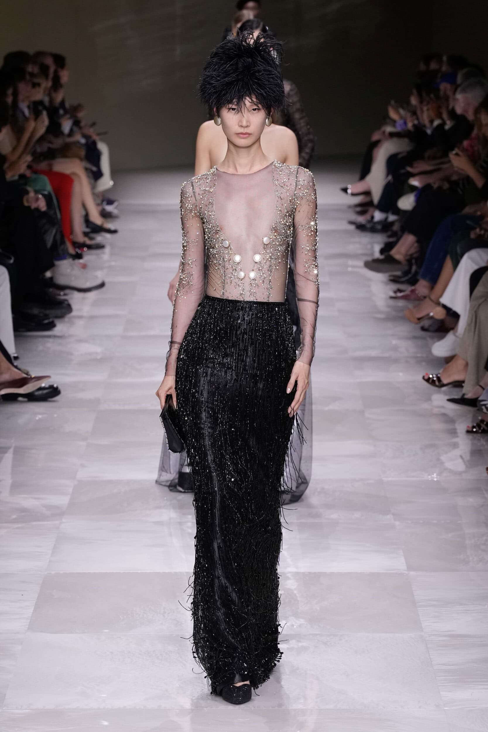Get an exclusive look at Giorgio Armani Prive‘s innovative Fall 2025 couture fashion show from the runways of Paris Couture Fashion Week, held in June 2024.
