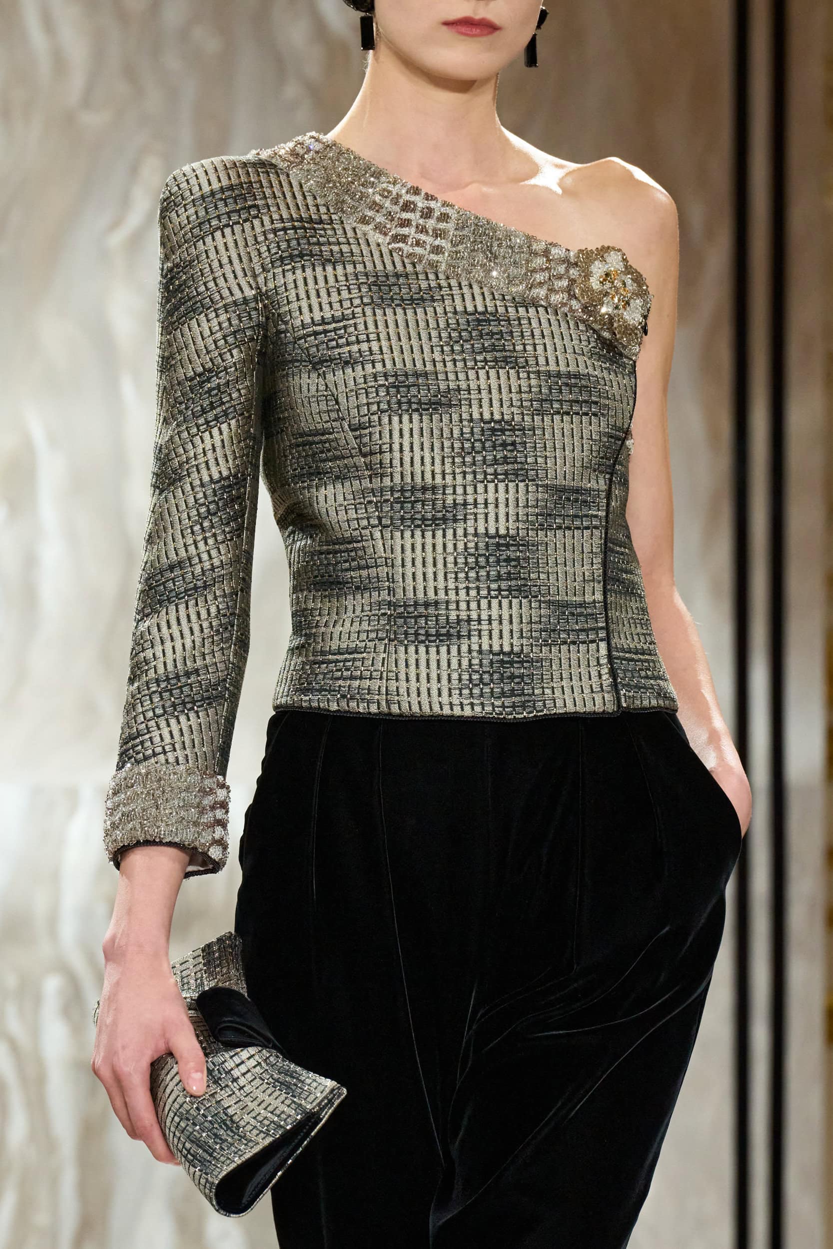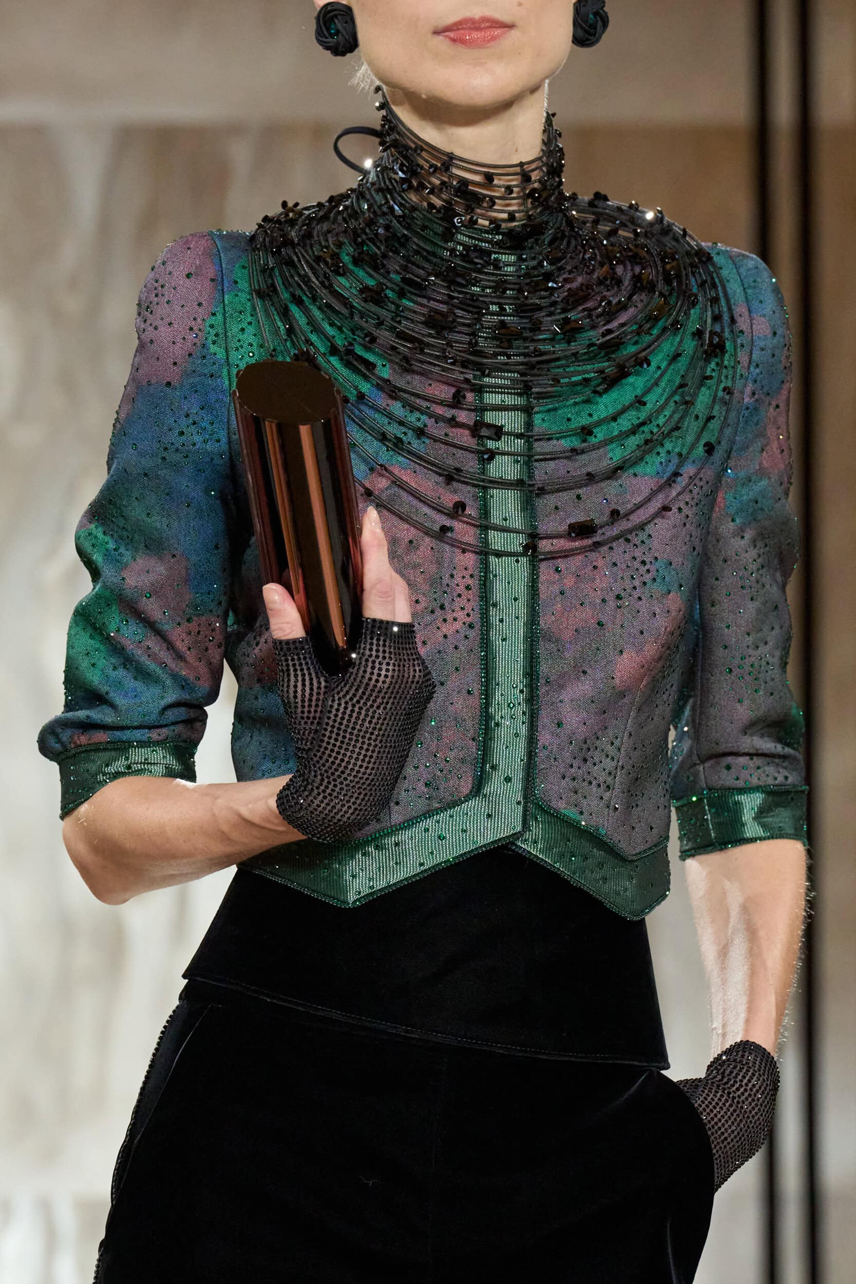 Giorgio Armani Privè‘s Fall 2025 couture fashion show accessories featuring footwear, handbags, eyewear, and more from the runways of Paris Couture Fashion Week, held in July 2025.