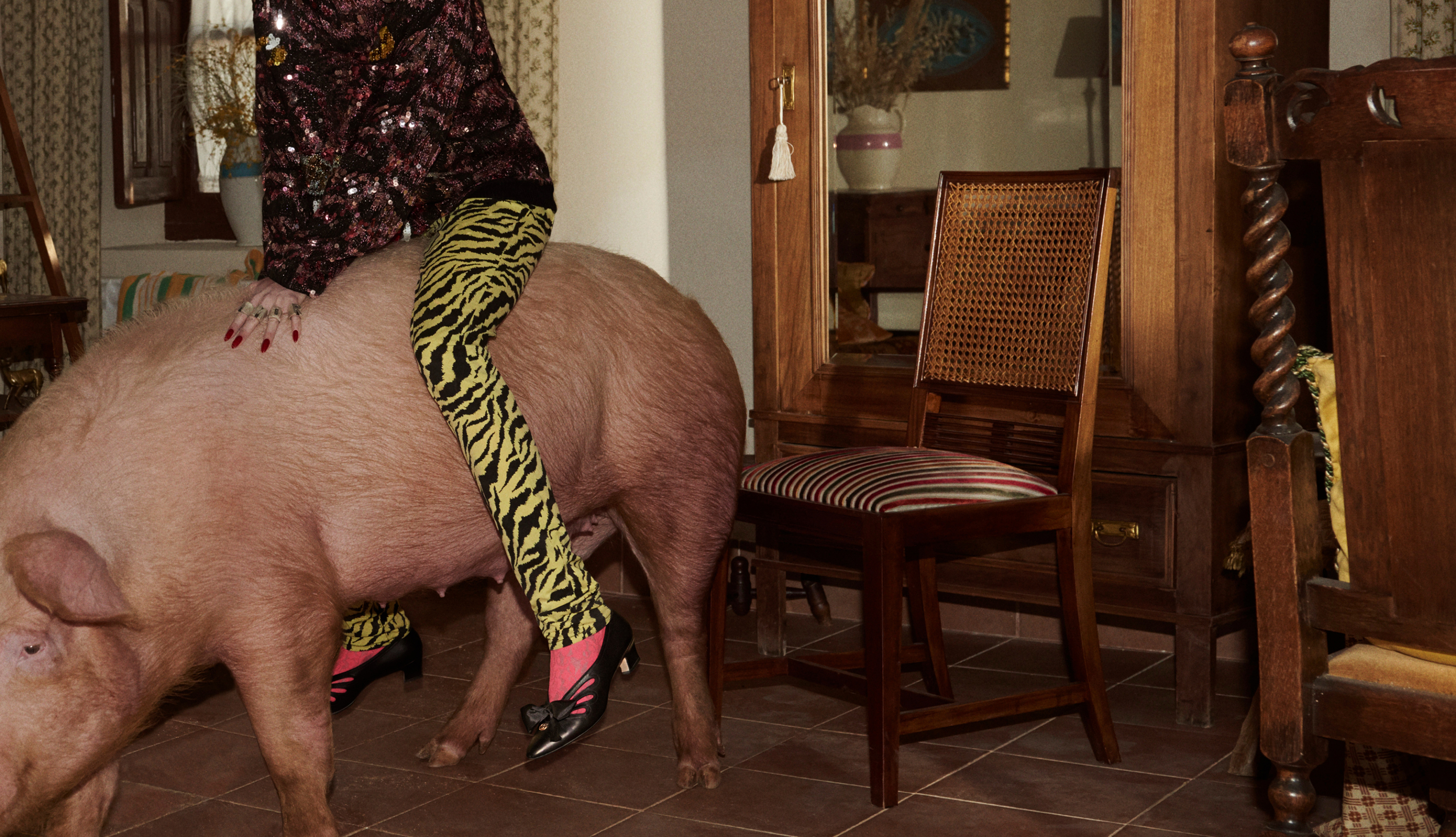 With hours on the clock until Alessandro Michele’s showing of his Gucci Spring 2019 collection in Paris at the Le Palace (watch live here at The Impression), the Gucci team has been quite busy attending to their stable, releasing not only the animal-intensive Cruise campaign, but also the animal-centric Men’s tailoring campaign starring Harry Styles. Obviously, this is a beast of burden, but one the team understands is necessary to maintain premium mindshare in the crowded plains.