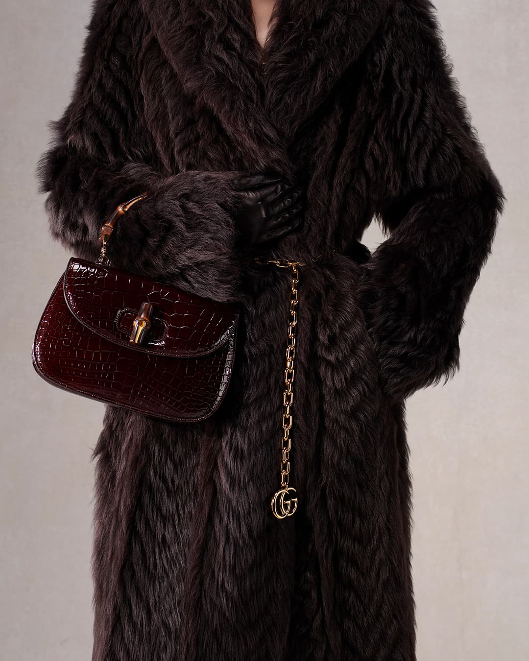 The imagery leans into restraint. Clean backdrops, frontal poses, a studied neutrality that lets clothes and attitude do the work. Each figure reads as a type, styled to signal temperament and status, the red coat with a flare of temperament, the black tailoring anchored by the Bamboo 1947, denim and leather carrying a certain practiced ease. Opie’s lens brings clarity and seriousness, a quiet authority that resists theatrics. It’s handsome, assured, and very controlled.