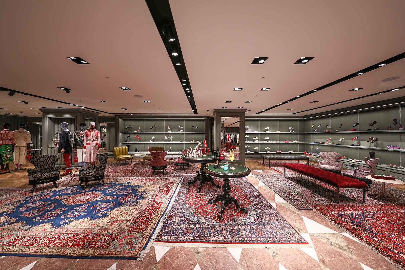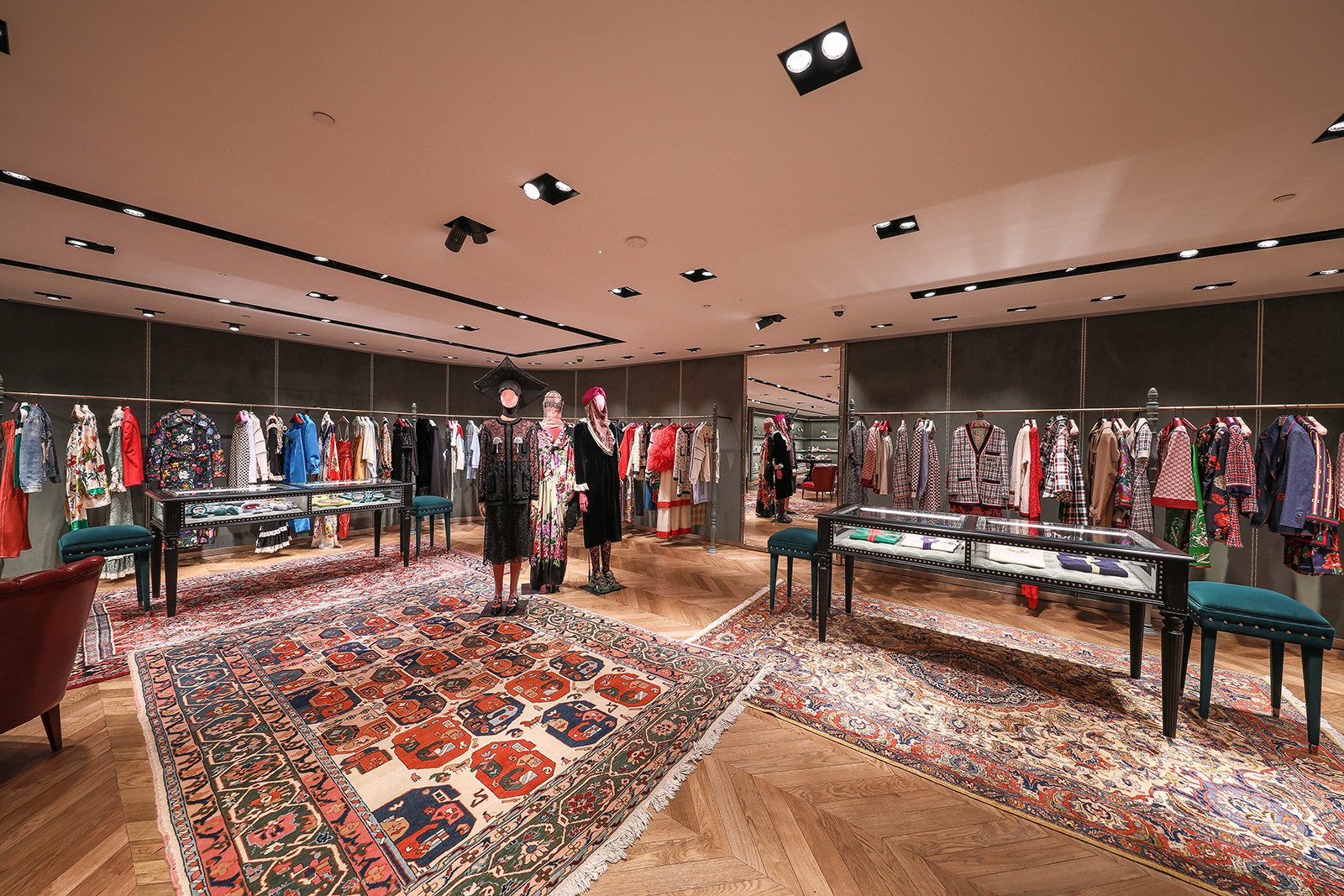 The mix of classic and contemporary provides an interesting backdrop for the many collections featured in the space. Gucci has gone above and beyond with this space, and it will continue to amaze the many customers it attracts every day.