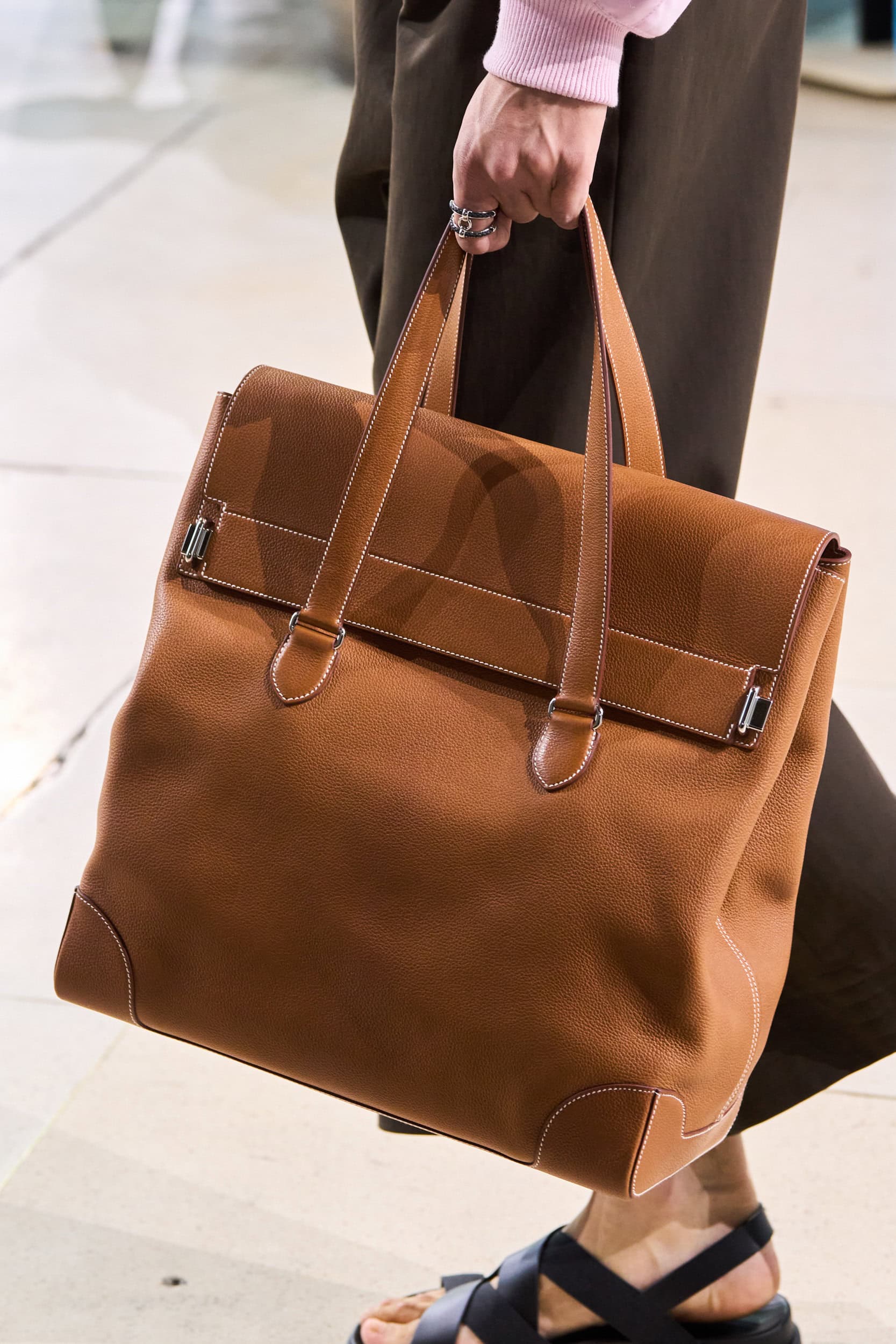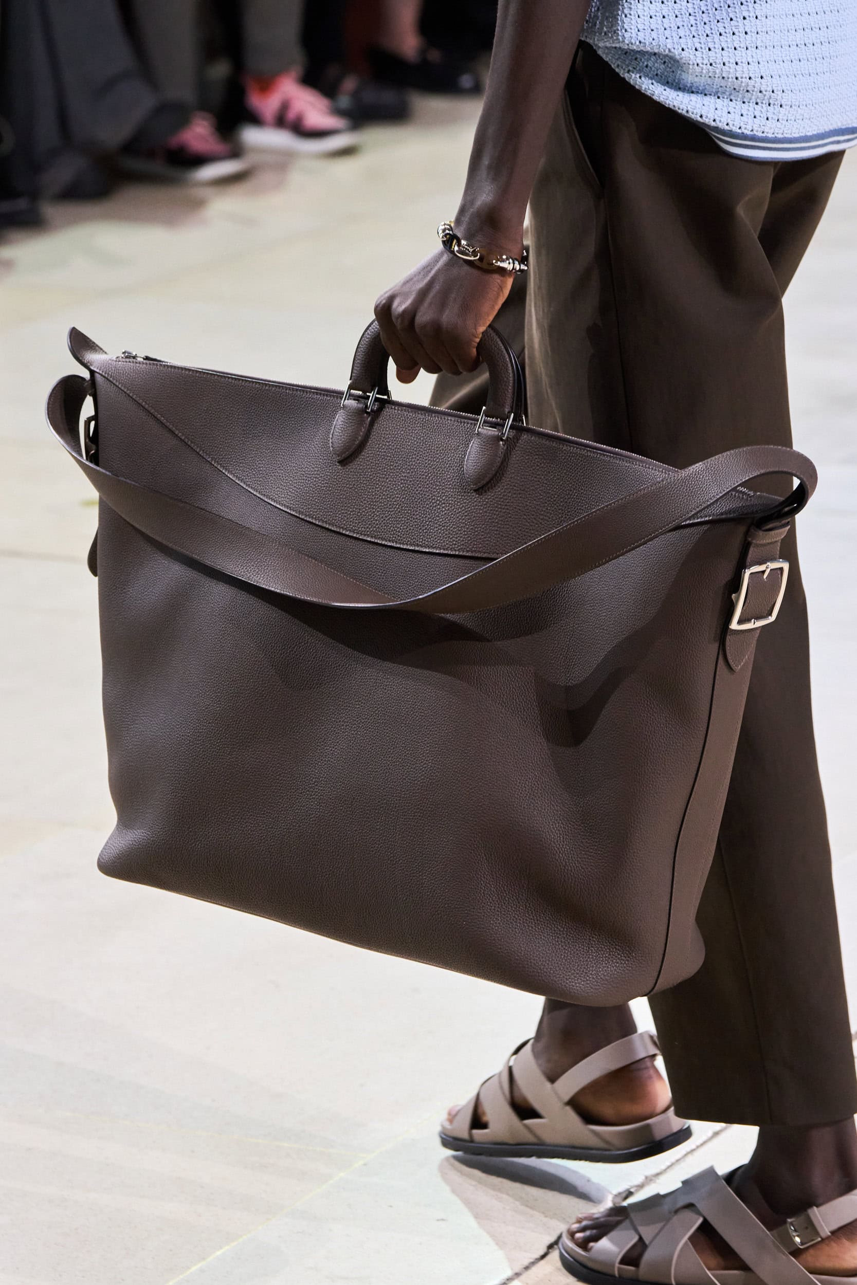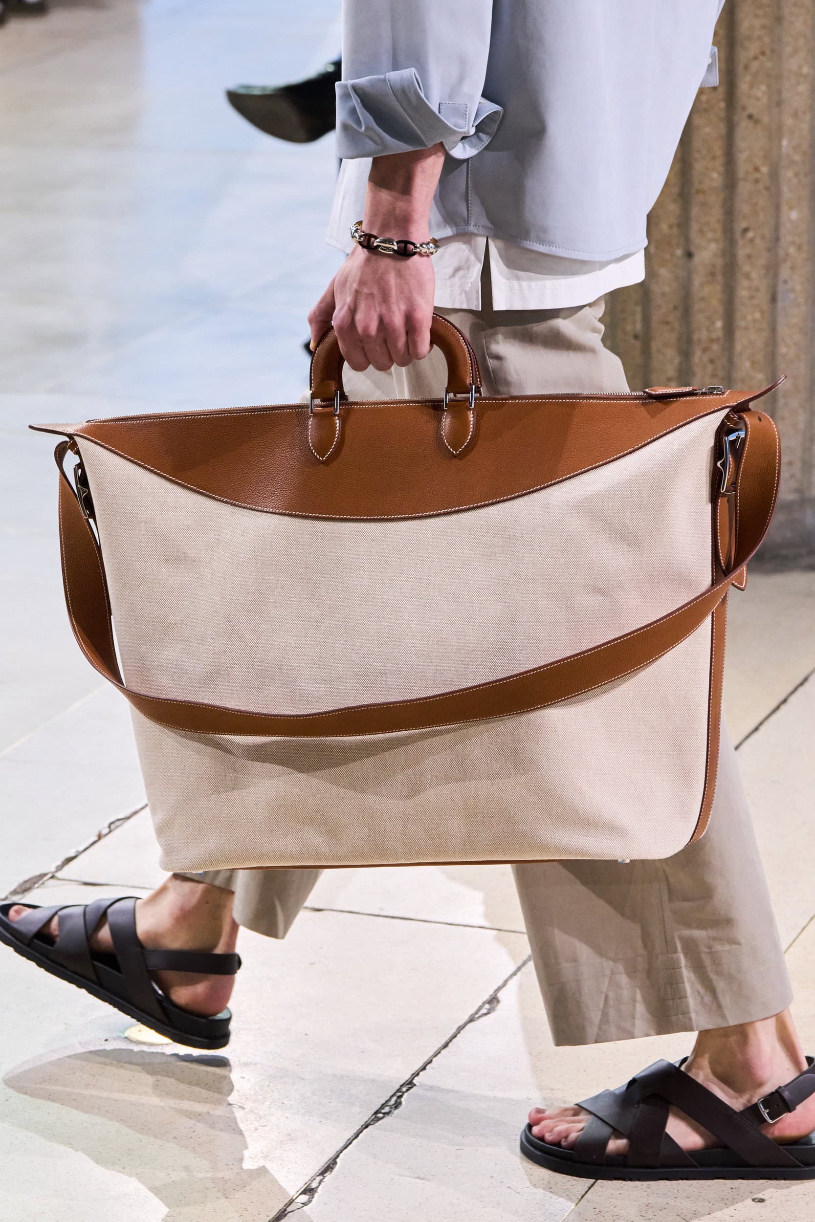 Get an exclusive look at Hermes‘s innovative Spring 2025 men’s fashion show accessories featuring footwear, handbags, eyewear, and more from the runways of Paris Men’s Fashion Week, held in June 2024.