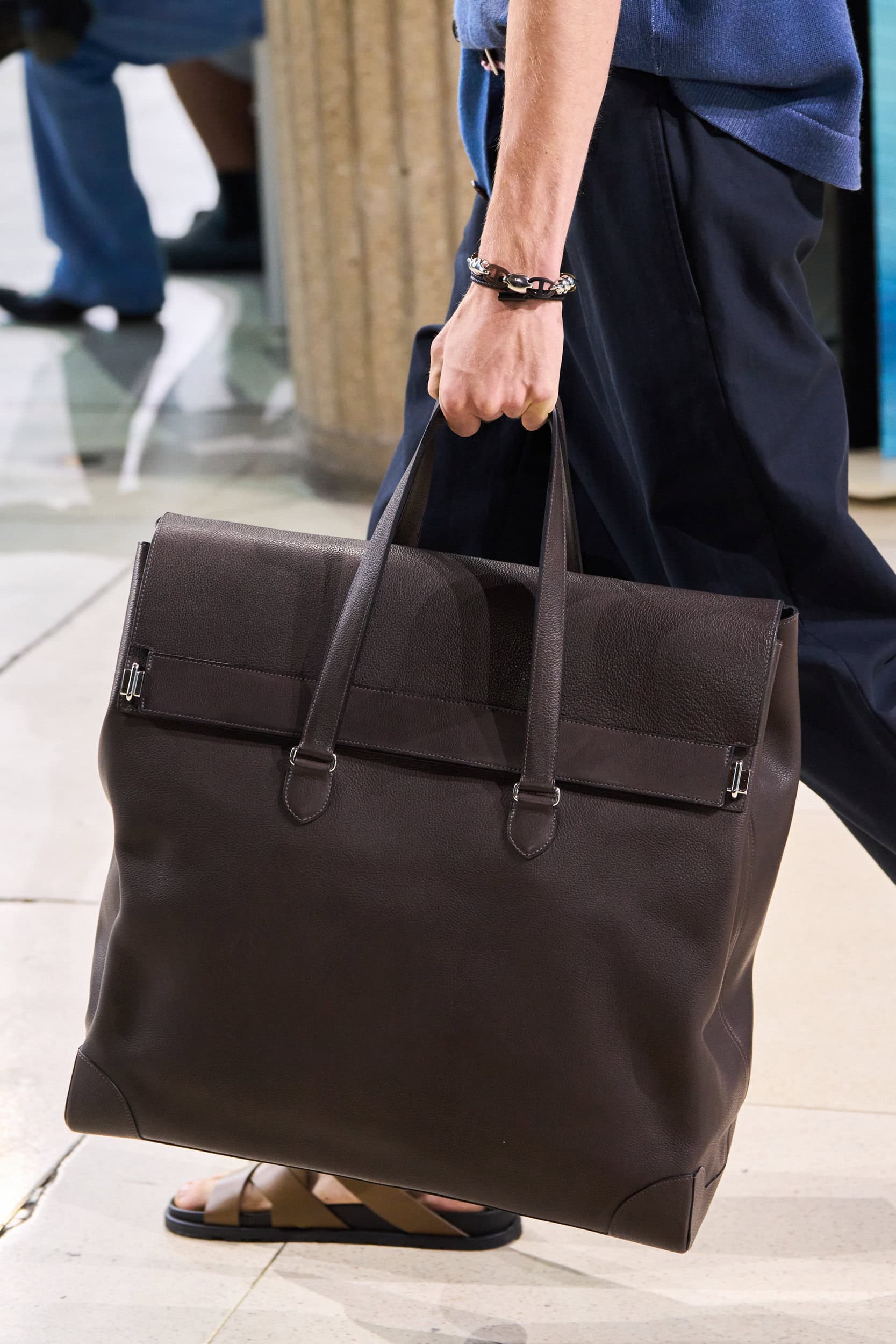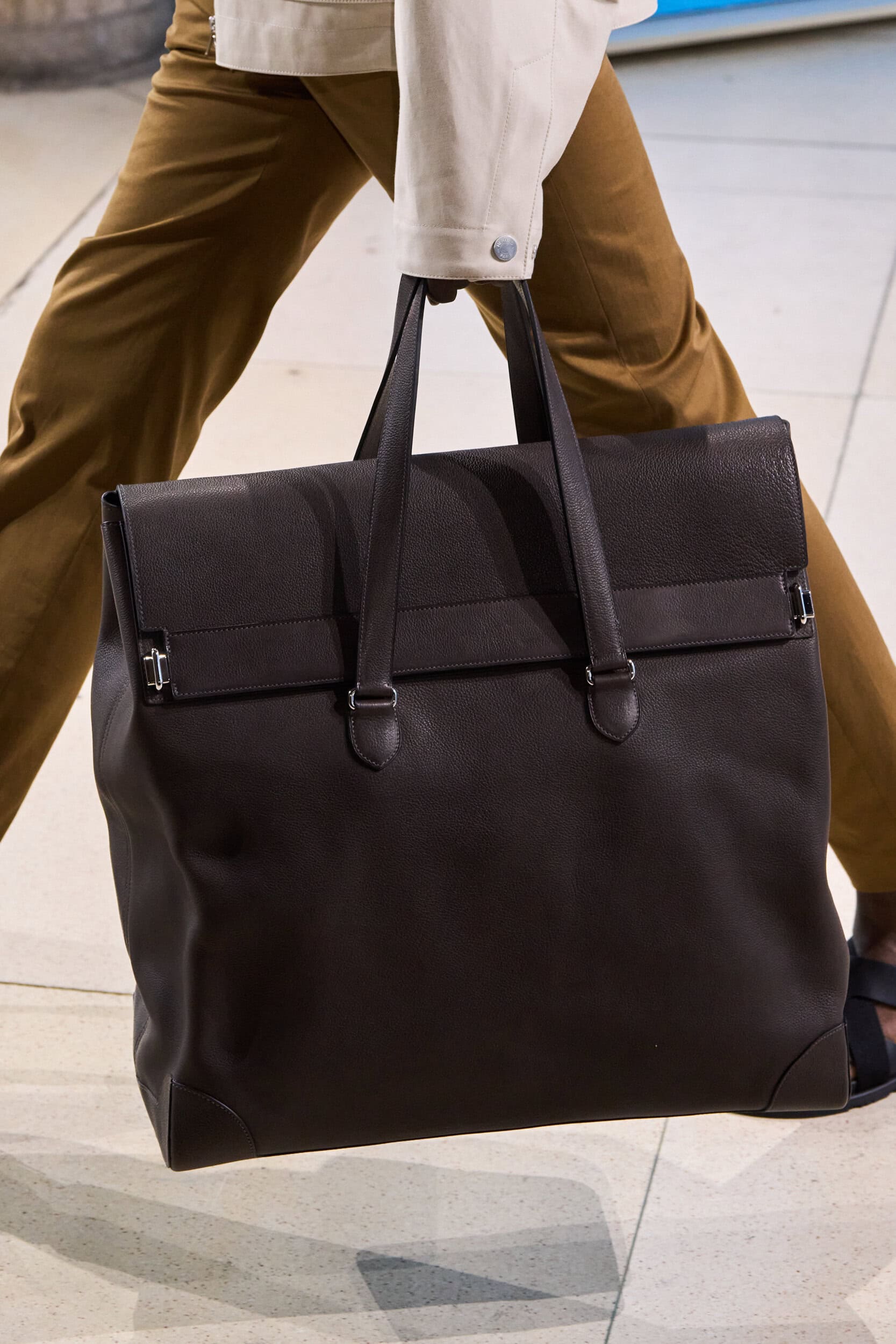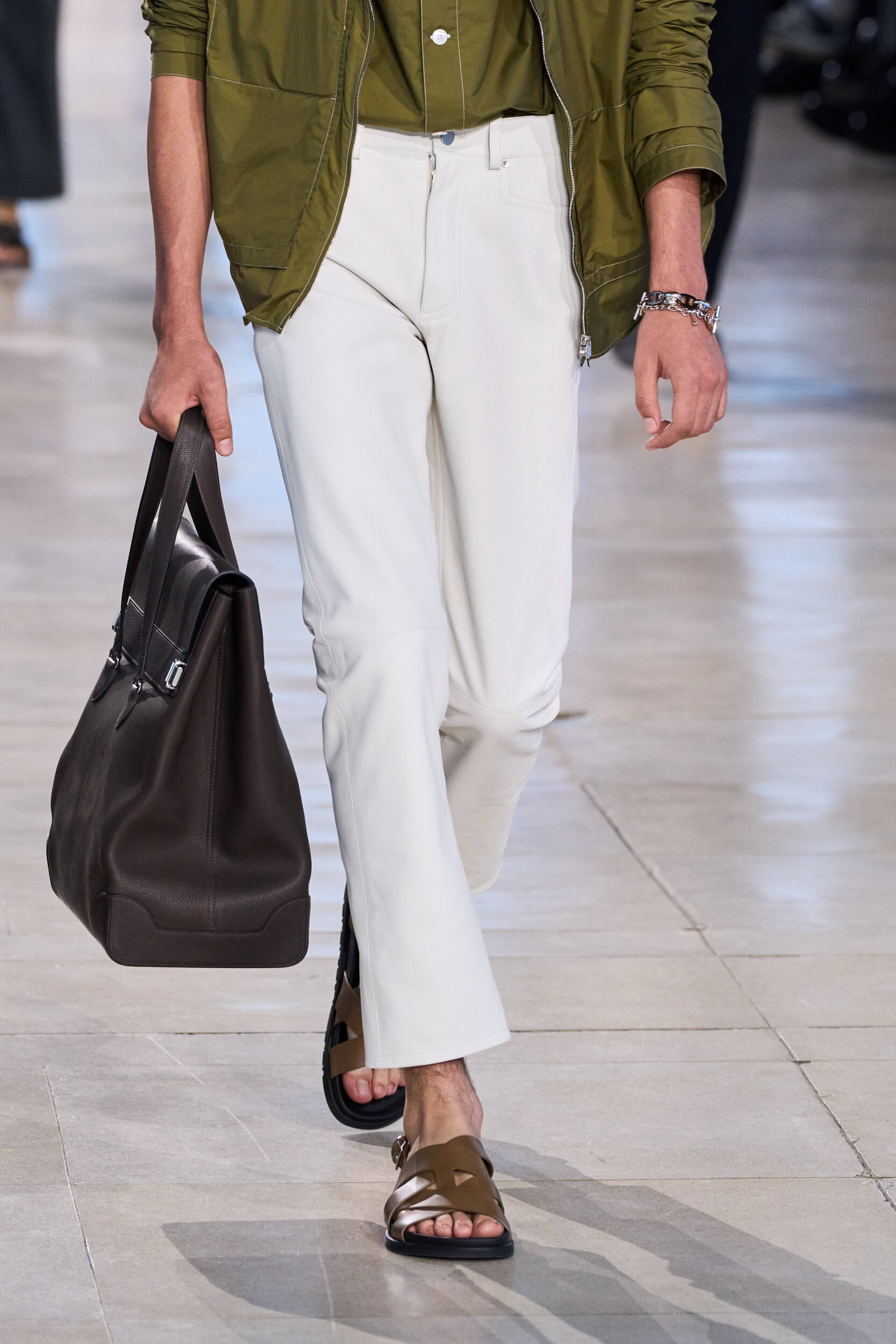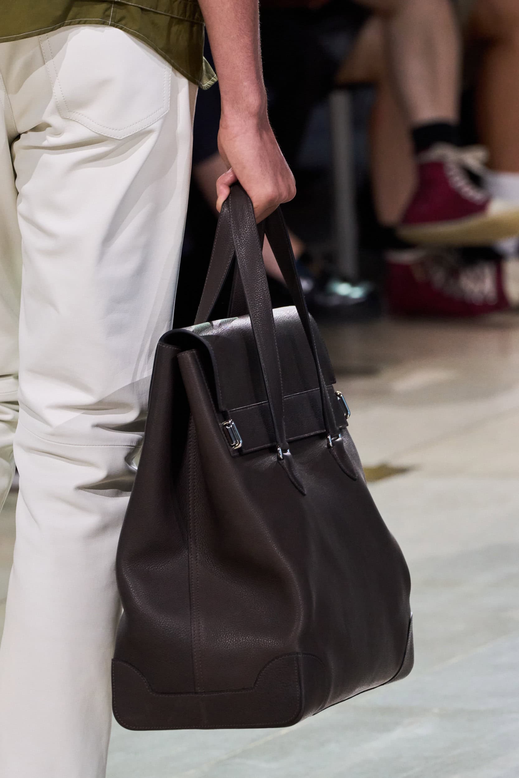 Get an exclusive look at Hermes‘s innovative Spring 2025 men’s fashion show accessories featuring footwear, handbags, eyewear, and more from the runways of Paris Men’s Fashion Week, held in June 2024.