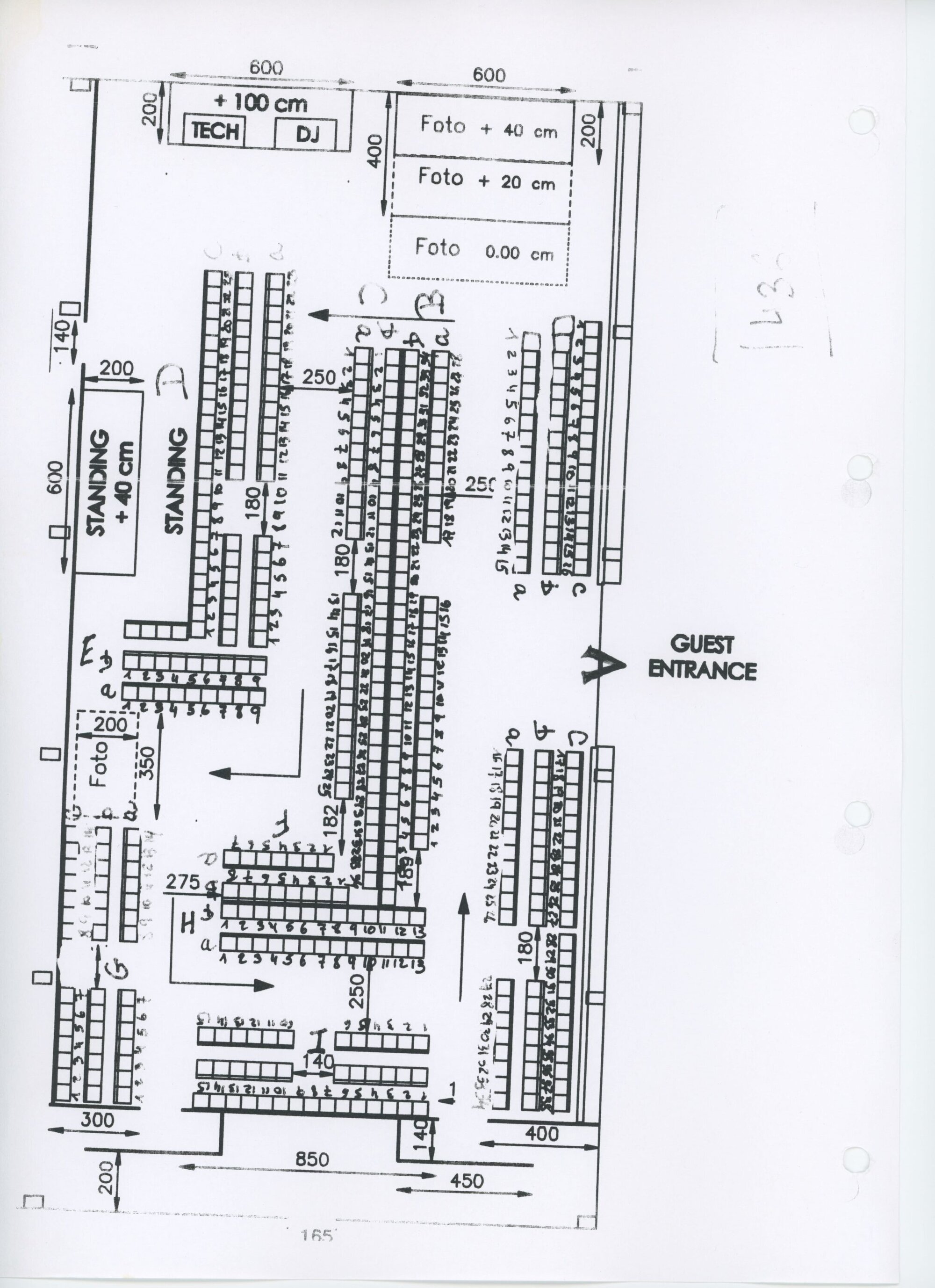 If the retail space is Lang’s theater, MAK’s centerpiece is his backstage brain. The exhibition’s Séance de Travail section turns process into spectacle with one move that feels almost indecently brilliant: a blown-up seating plan printed onto the floor. You stand on it like you’re standing inside the machinery of power—front row as literal architecture. “What you can see here is on the ground. Seating chart,” Steinhäuber said. “We were… fact checking with him… and what [the curator] decided… was to have this floor plan here.”
