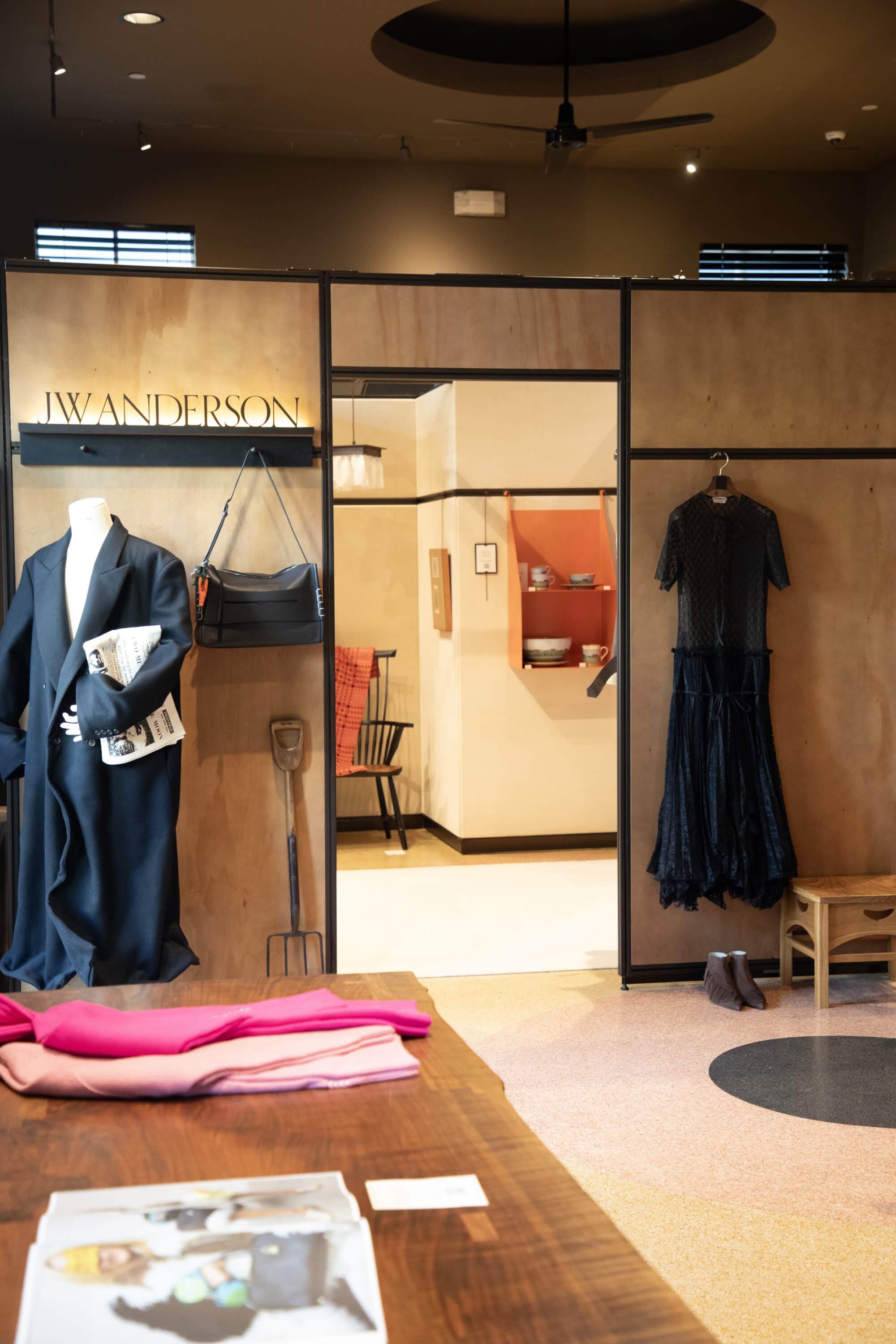Inside the space—developed with architects Sanchez Benton—attendees explored a curated selection that foregrounded provenance and meticulous making. Knitwear spun from fine yarns, Japanese denim crafted with specialist partners, and tailored pieces in Donegal tweed and Locharron tartan stood alongside artist-led objects and archival re-editions. The mix broadened into ceramics by Akiko Hirai, Murano glassware, Welsh blankets, Lucie Rie mugs, and even hand-forged nails and estate-produced honey, each chosen to extend the brand’s language of contemporary heritage.