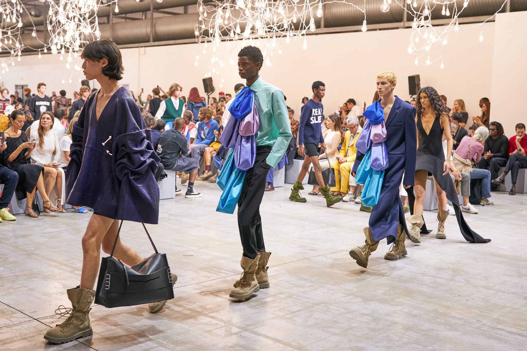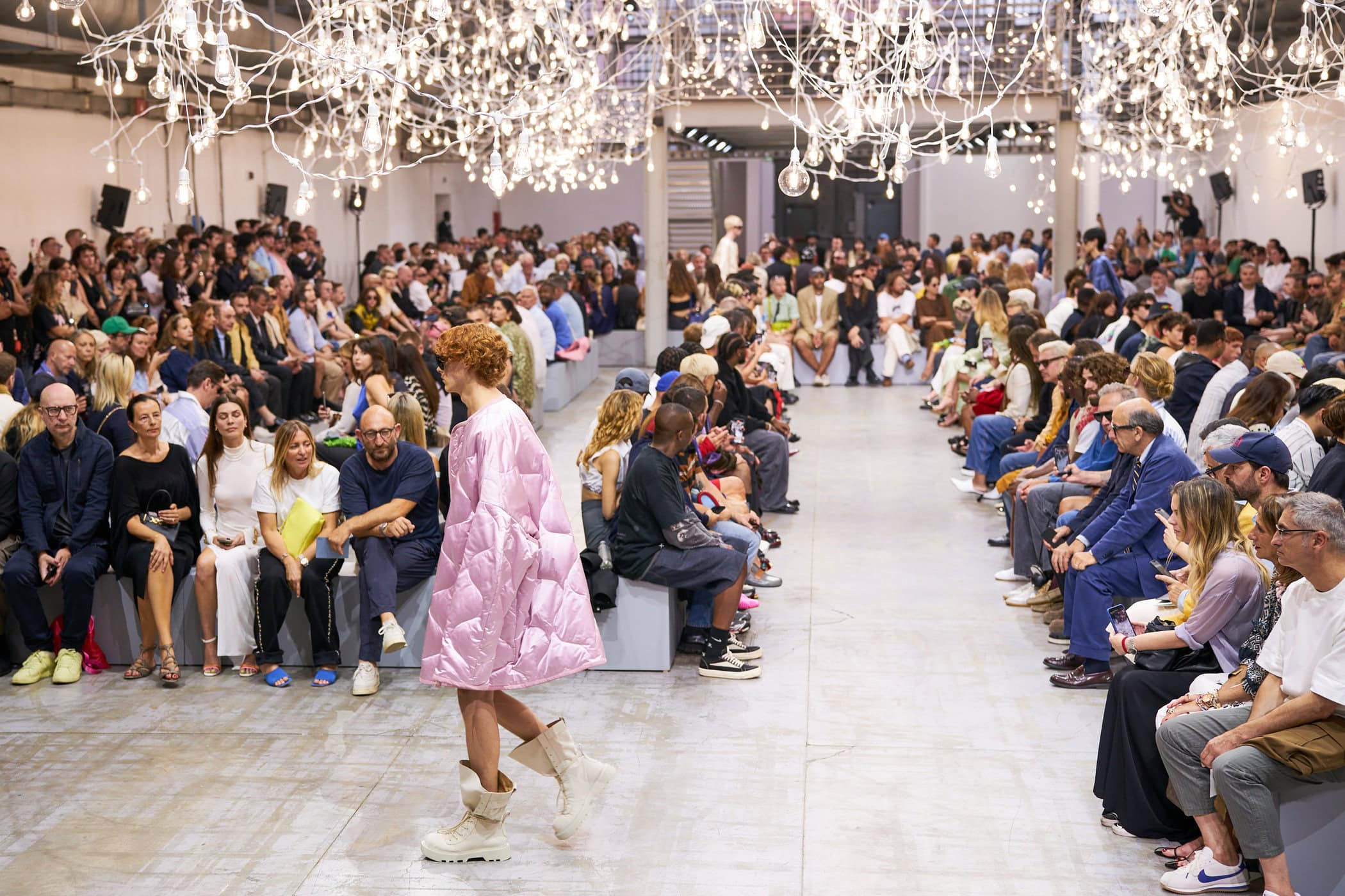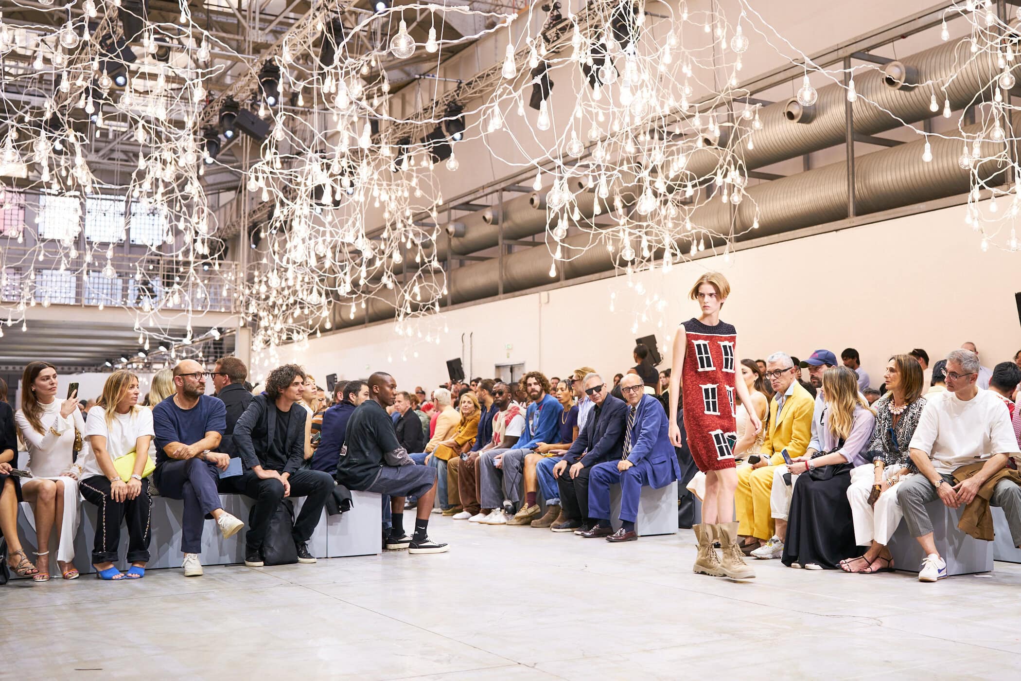 Discover the immersive atmosphere and striking staging of Jw Anderson‘s Spring 2025 men’s fashion show at Milan Men’s Fashion Week, creating an unforgettable mood this June.
