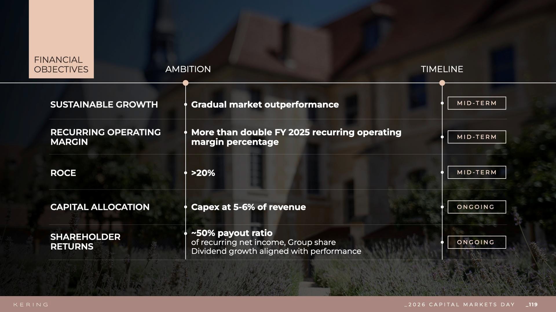 The financial ambitions reflect the scale of the reset. The Group is targeting a more than doubling of its operating margin over the mid-term, alongside improved capital efficiency and more selective investment. These targets are not about incremental improvement. They require a meaningful change in how the business performs.