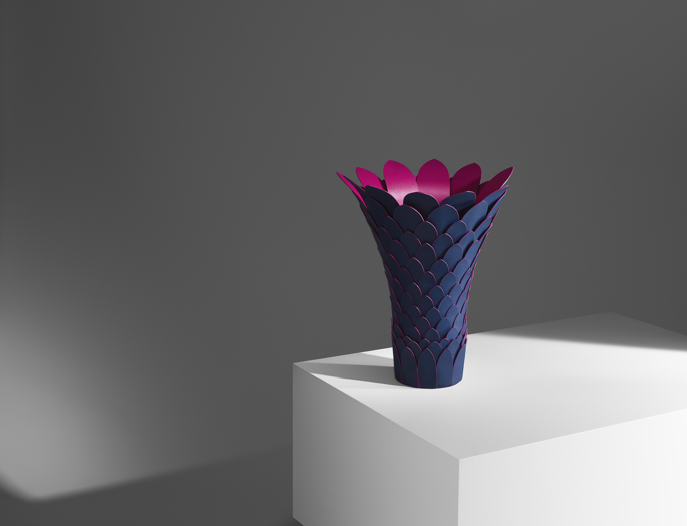The decorative objects home collection was created for the house by some of the world’s most renowned designers, including Humberto & Fernando Campana, Atelier Oï, Patricia Urquiola and Marcel Wanders. Highlights of the collection include the Tropicalist Vase by Humberto & Fernando Campana constructed of 176 two-tone, leather-covered metal “petals”, inspired by South American quesnalia and bromeliad flowers, and Patricia Urquiola’s Overlay Bowl is made of just four cleverly assembled sheets of smooth but hardwearing Louis Vuitton leather.