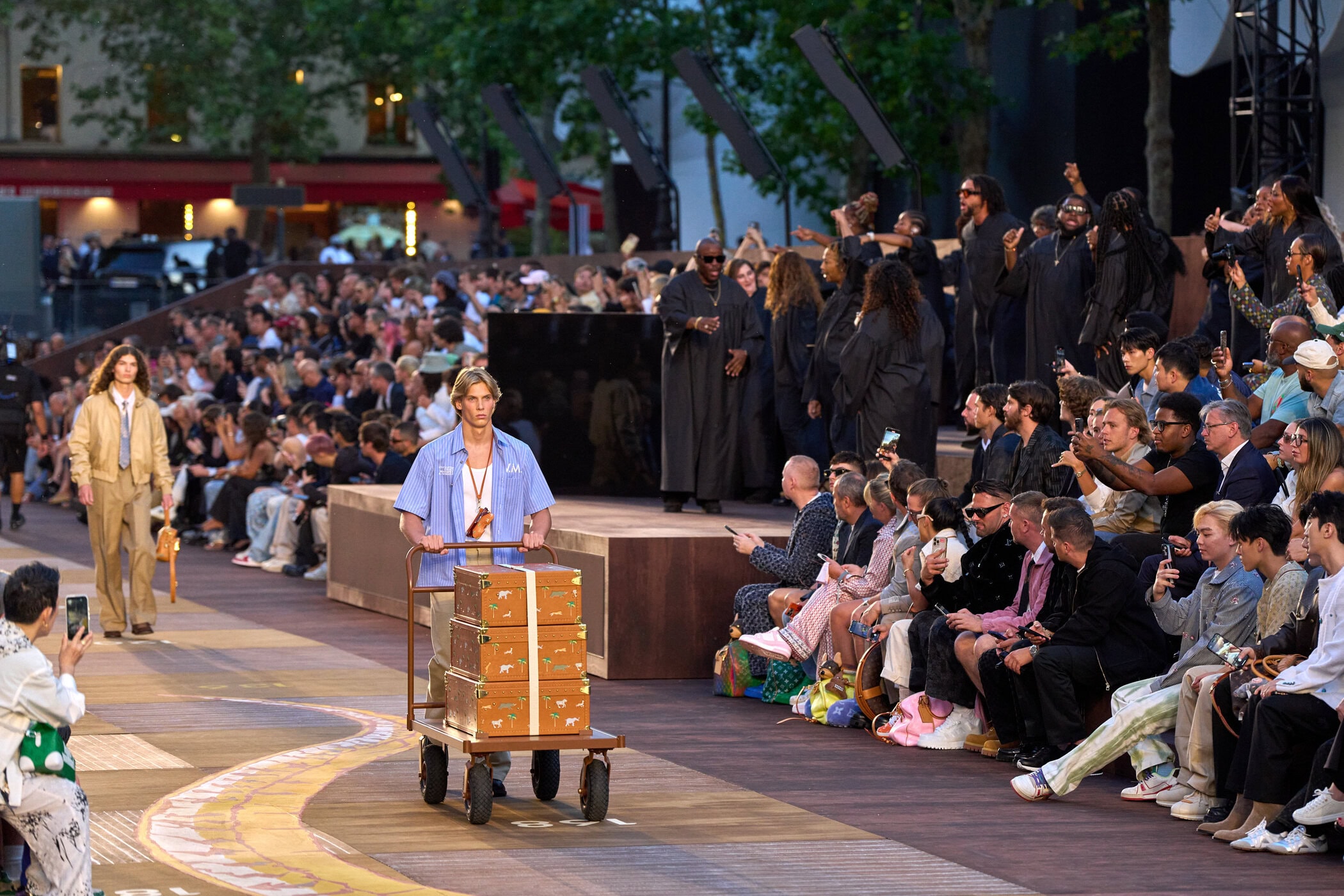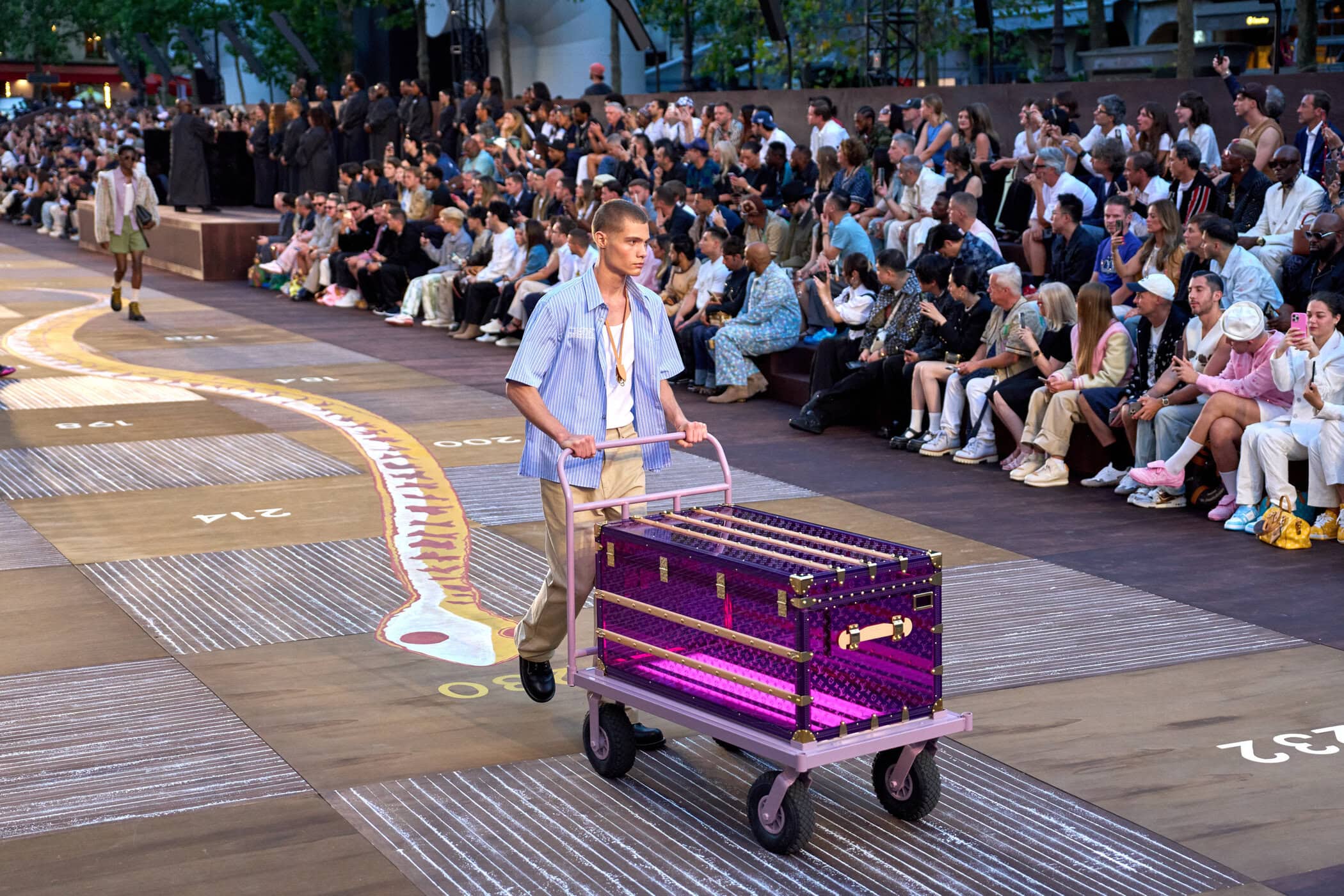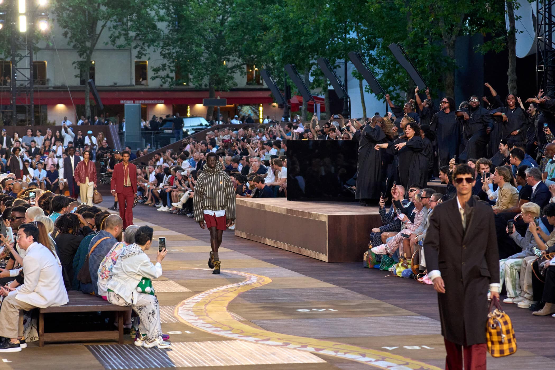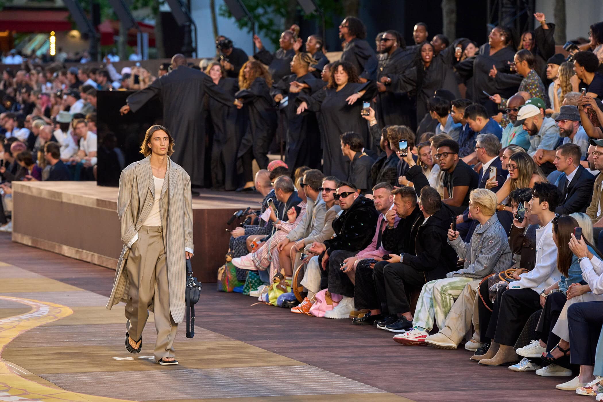 Discover the immersive atmosphere and striking staging of Louis Vuitton‘s Spring 2026 men’s fashion show at Paris Men’s Fashion Week, creating an unforgettable mood this June.