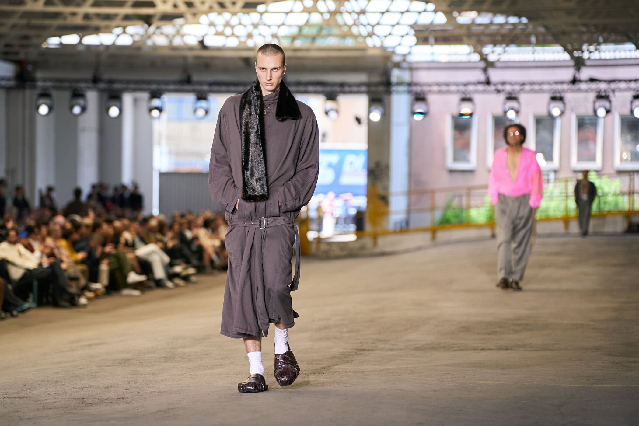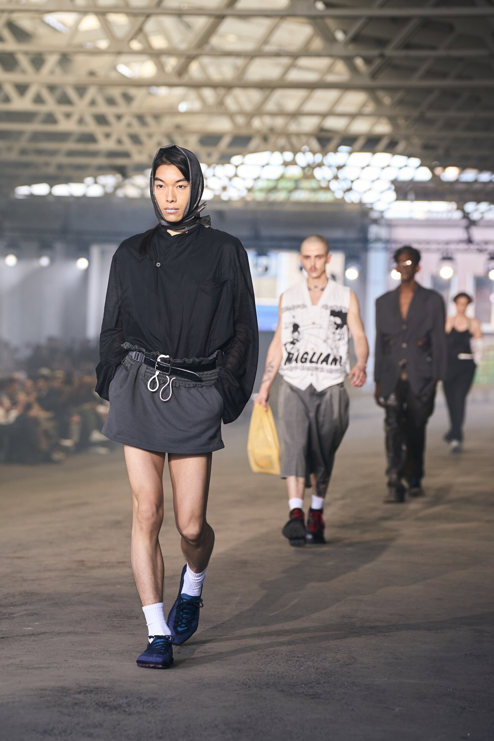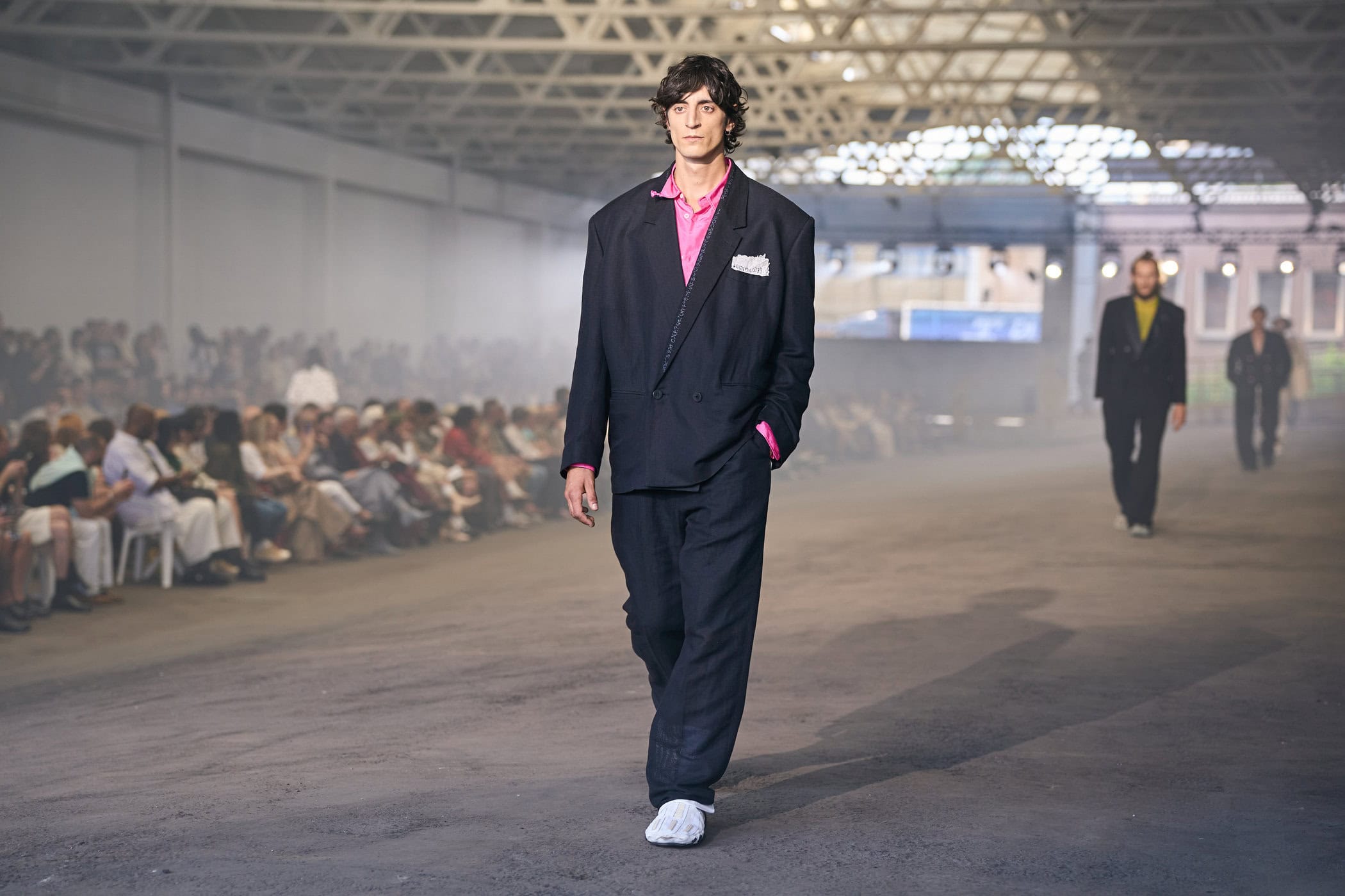 Discover the immersive atmosphere and striking staging of Magliano‘s Spring 2025 men’s fashion show at Milan Men’s Fashion Week, creating an unforgettable mood this June.