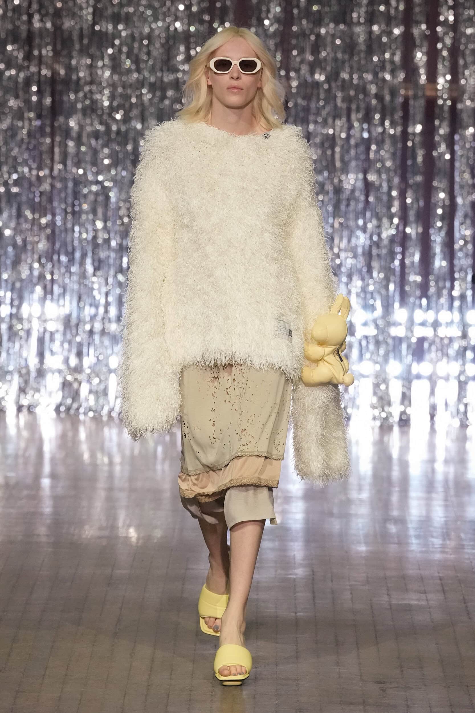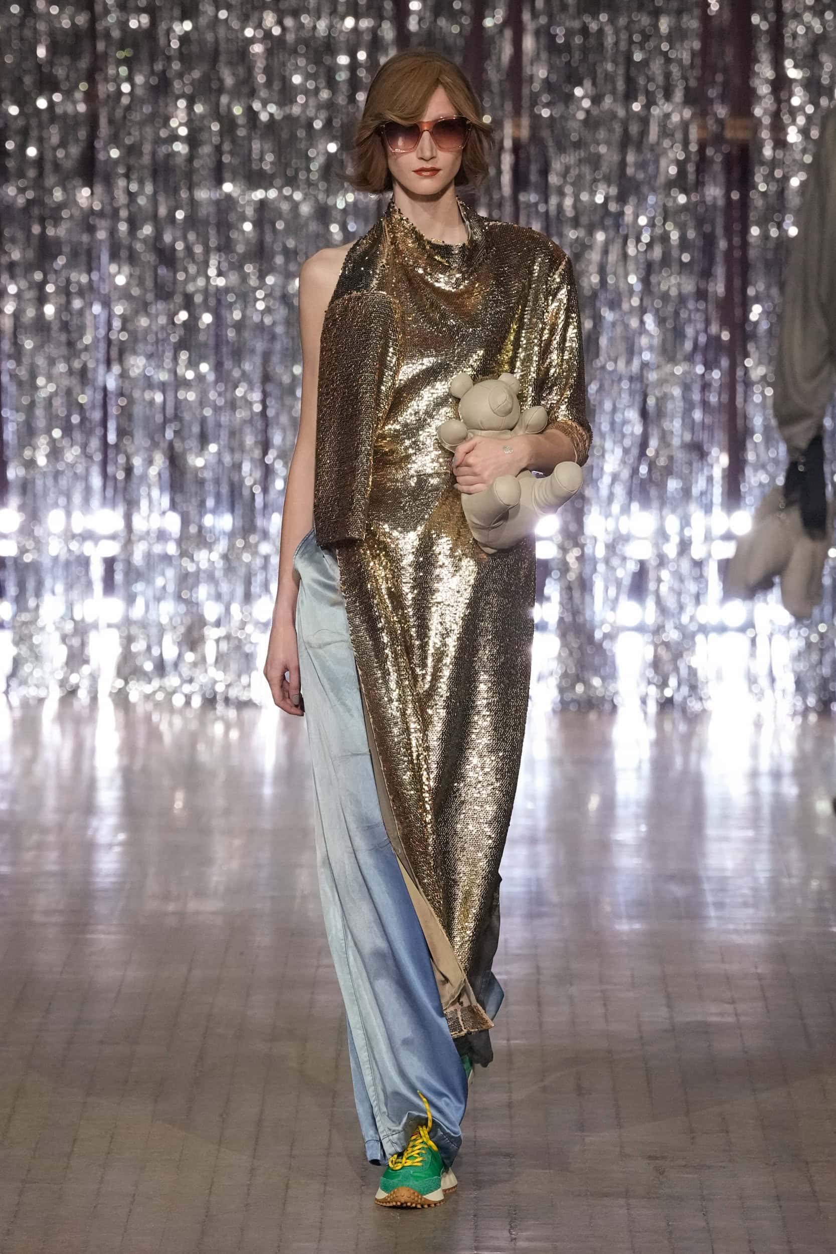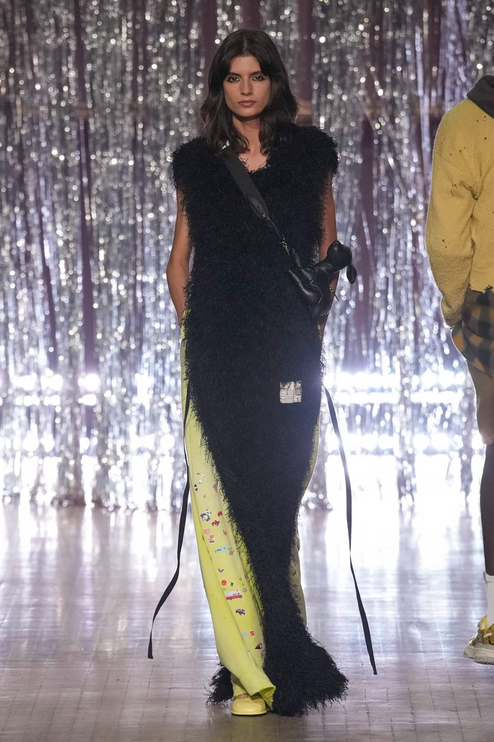 Yasuhiro’s signature stuffed toys appeared as crossbody bags or playful accessories. The presentation was as lively as the designs, with audience members spontaneously breaking into karaoke as the show unfolded, leaving guests laughing.