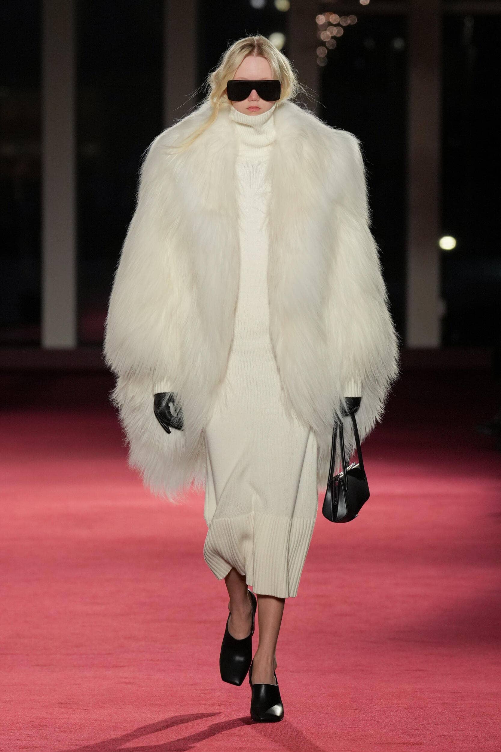 But the collection retained its range. For every grounded classic, there was also a more elevated outerwear moment – a plush, fur-like white coat that brought glamour back into the frame – and the balance continued throughout: where we got evening wear, we also got work-ready tailoring, street-smart ease, and layering that felt designed for a full life, not a single type of night. The casting also supported that multigenerational idea in a way that felt natural, not forced – honoring the house’s history while making room for the next chapter.